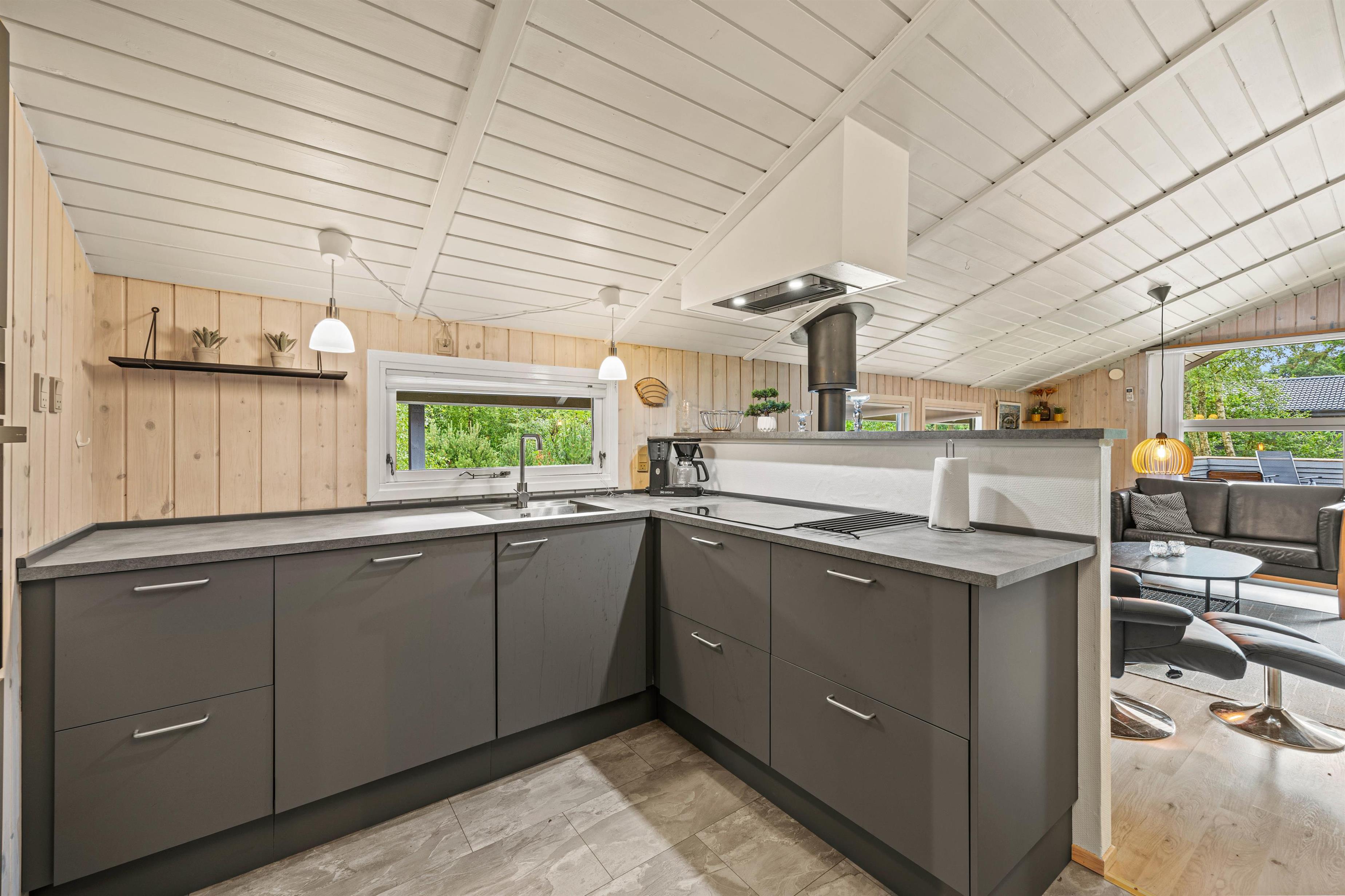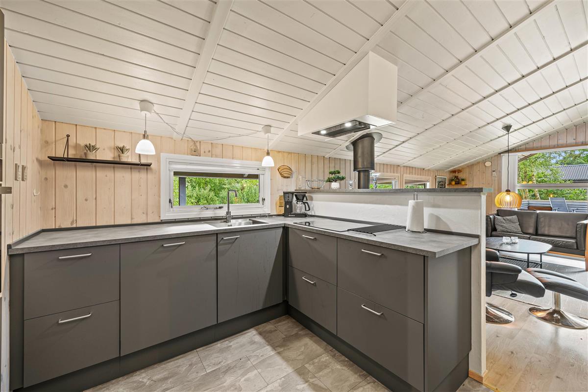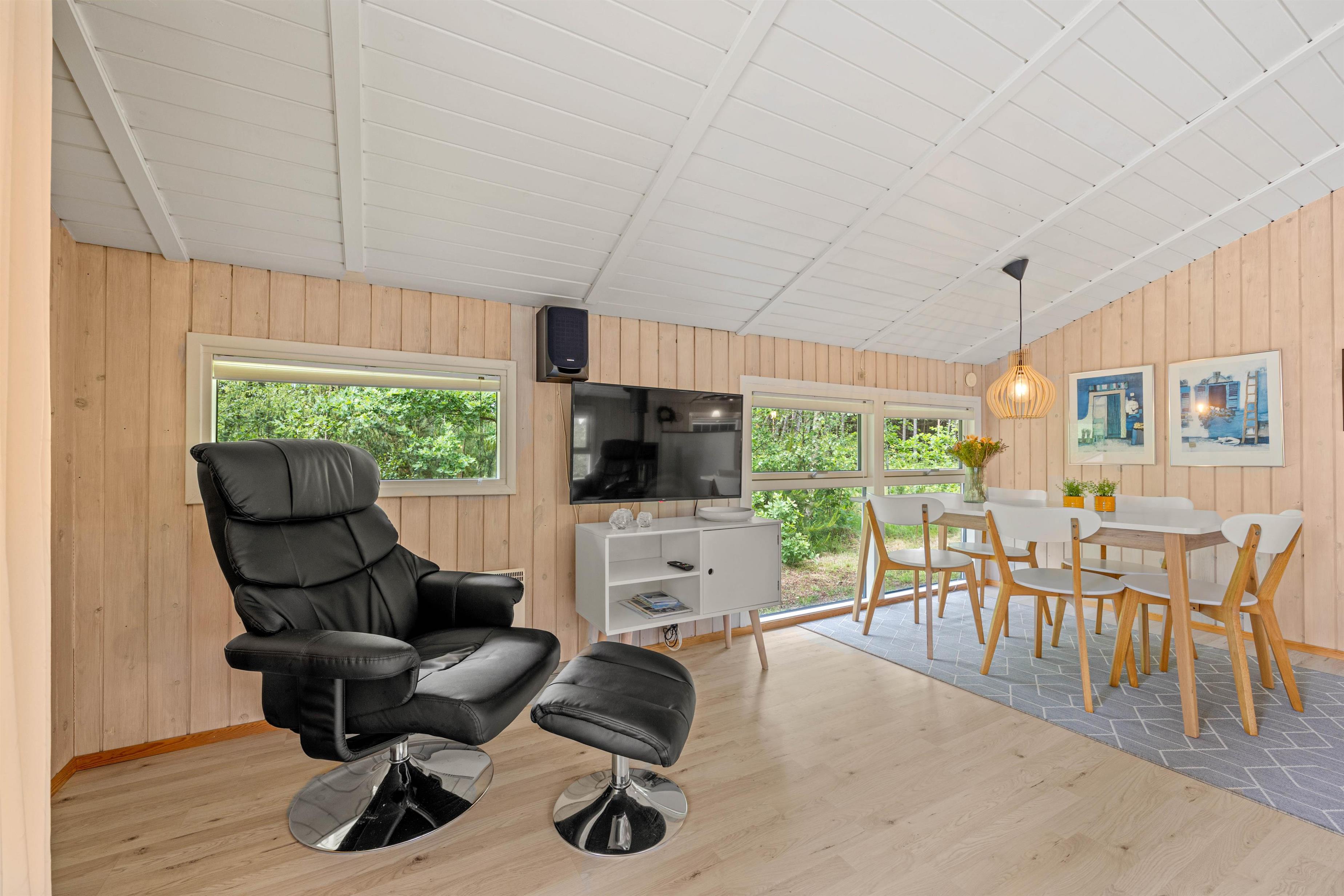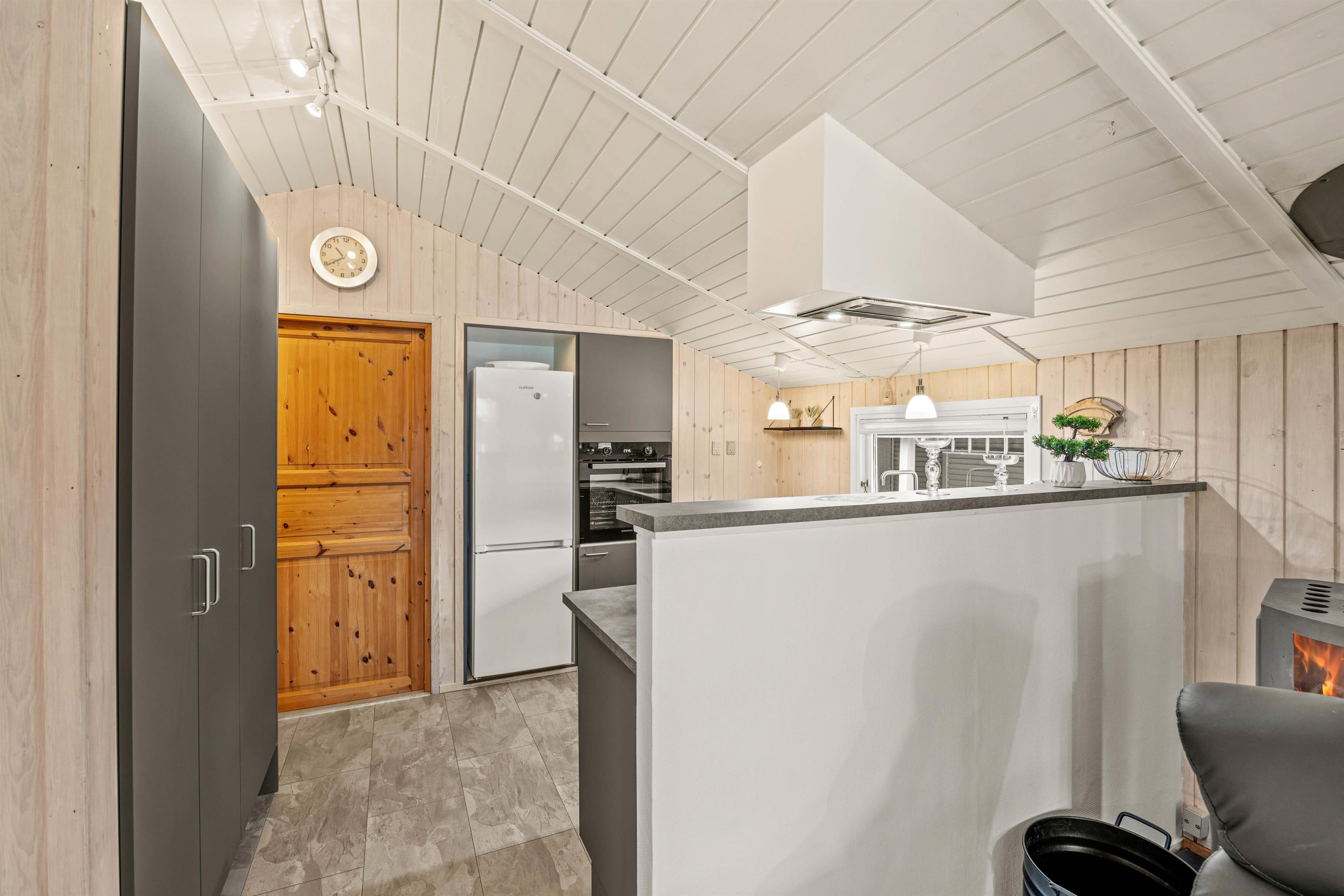 Imagine returning to your holiday home after a day of outdoor adventures, relaxing in front of a crackling wood-burning stove. This holiday home offers not only a warm and welcoming ambiance through its central wood-burning stove but also features a heat pump ensuring comfortable temperatures year-round. Enjoy the soothing warmth and harmonious atmosphere that makes the living area the perfect gathering space.