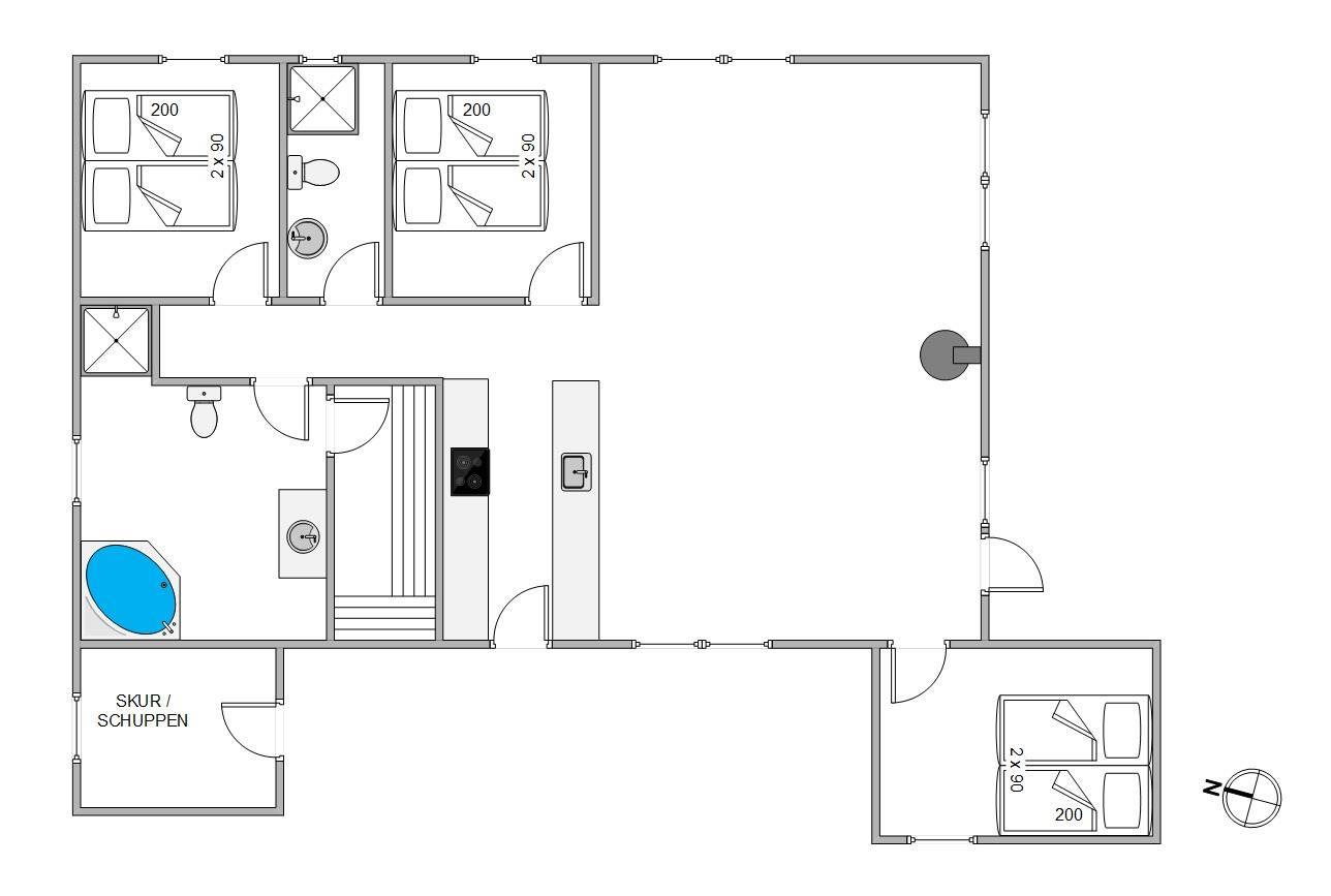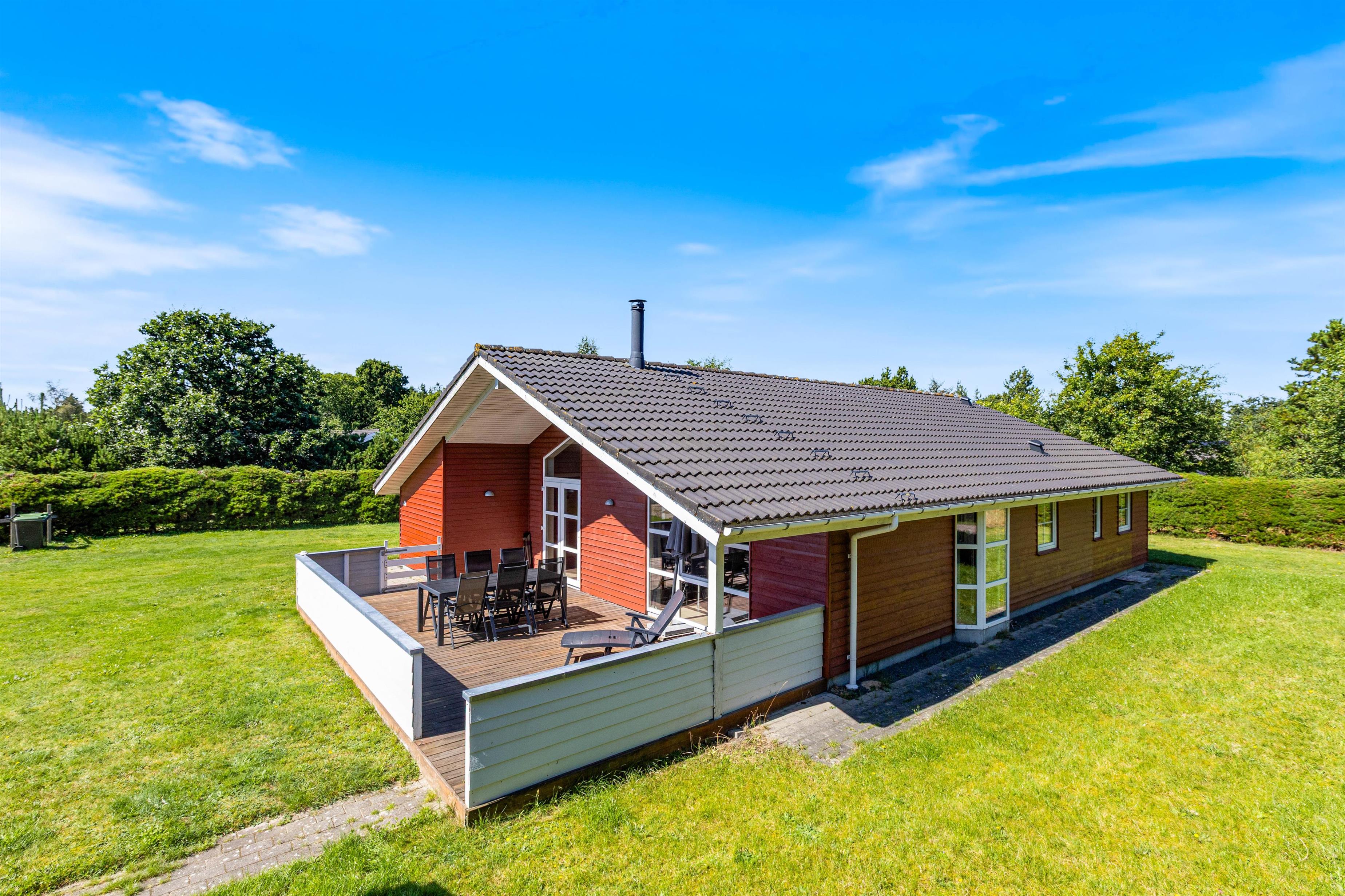 This comfortable holiday home is situated in the natural setting of Houstrup and offers everything you could wish for. You'll be welcomed by bright, modern furnishings, made even more attractive by the numerous windows that let in plenty of natural sunlight.