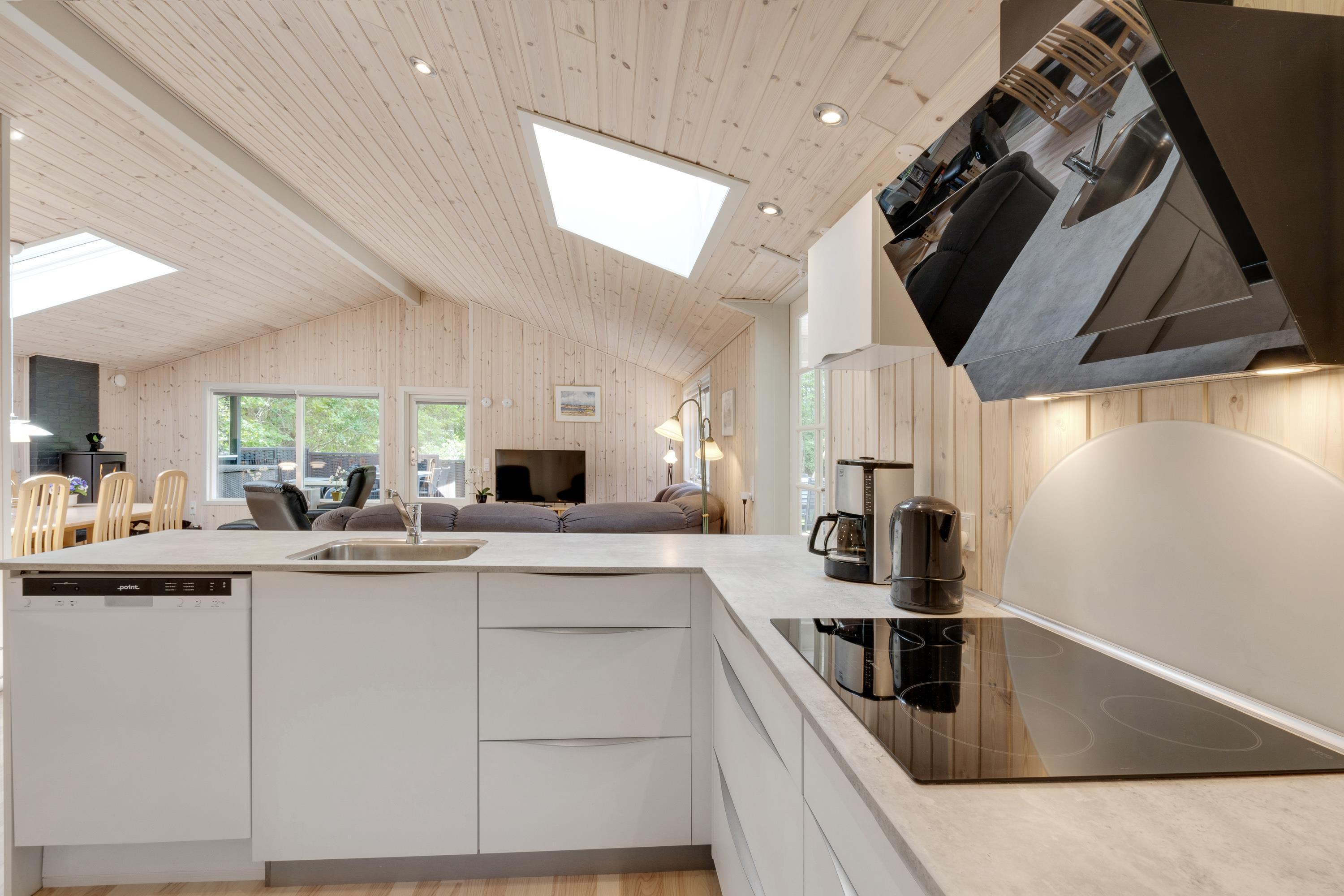 Light the wood-burning stove and enjoy spending time cooking together in a holiday home featuring a new, modern kitchen and bright living room - perfect for family board games at the dining table or watching a film on the sofa.