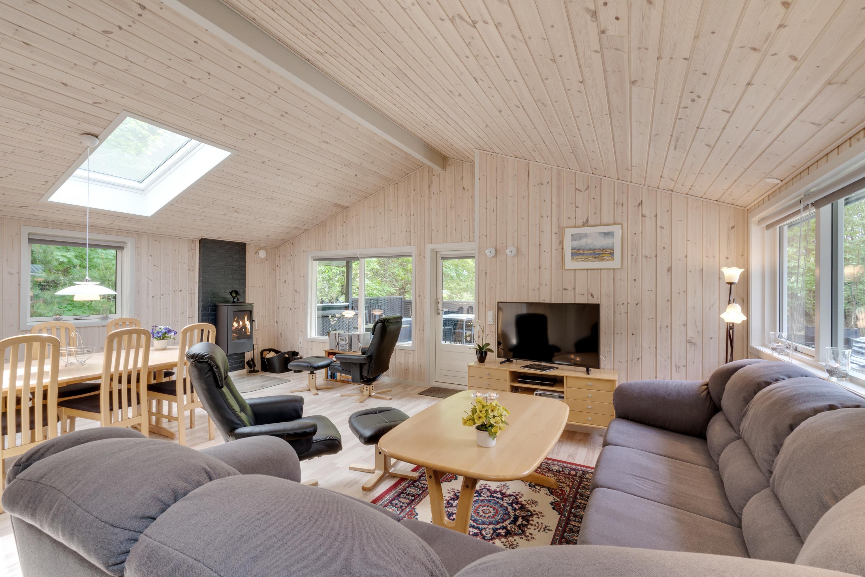 The holiday home at Skovvang 68 is ideal for holidays throughout the year. It features an energy-efficient heat pump and underfloor heating in the bathroom, plus a sauna for true relaxation. The conservatory provides a peaceful retreat where you can unwind with a book on rainy days or cool spring afternoons, enjoying the surrounding nature. With both washing machine and dishwasher, the holiday home is well-equipped for extended stays.