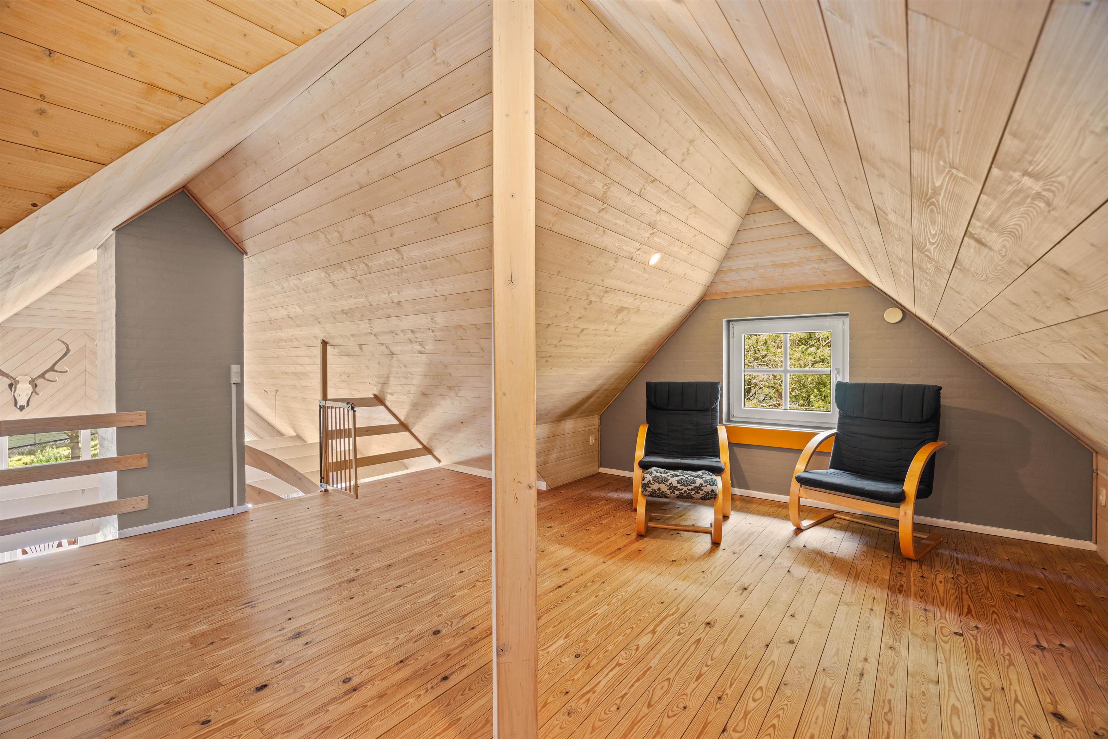 Schnappt euch euer Lieblingsbuch oder lasst den Blick nach draußen schweifen, durch die große Glasfront, die auch für viel natürliches Licht im Wohnbereich sorgt. Die energieeffiziente Wärmepumpe trägt zur angenehmen Raumtemperatur bei, wenn ihr den Kamin einmal nicht nutzen wollt.