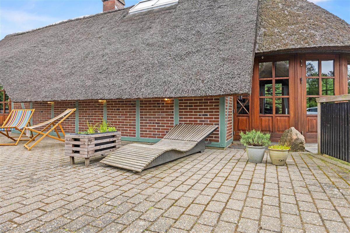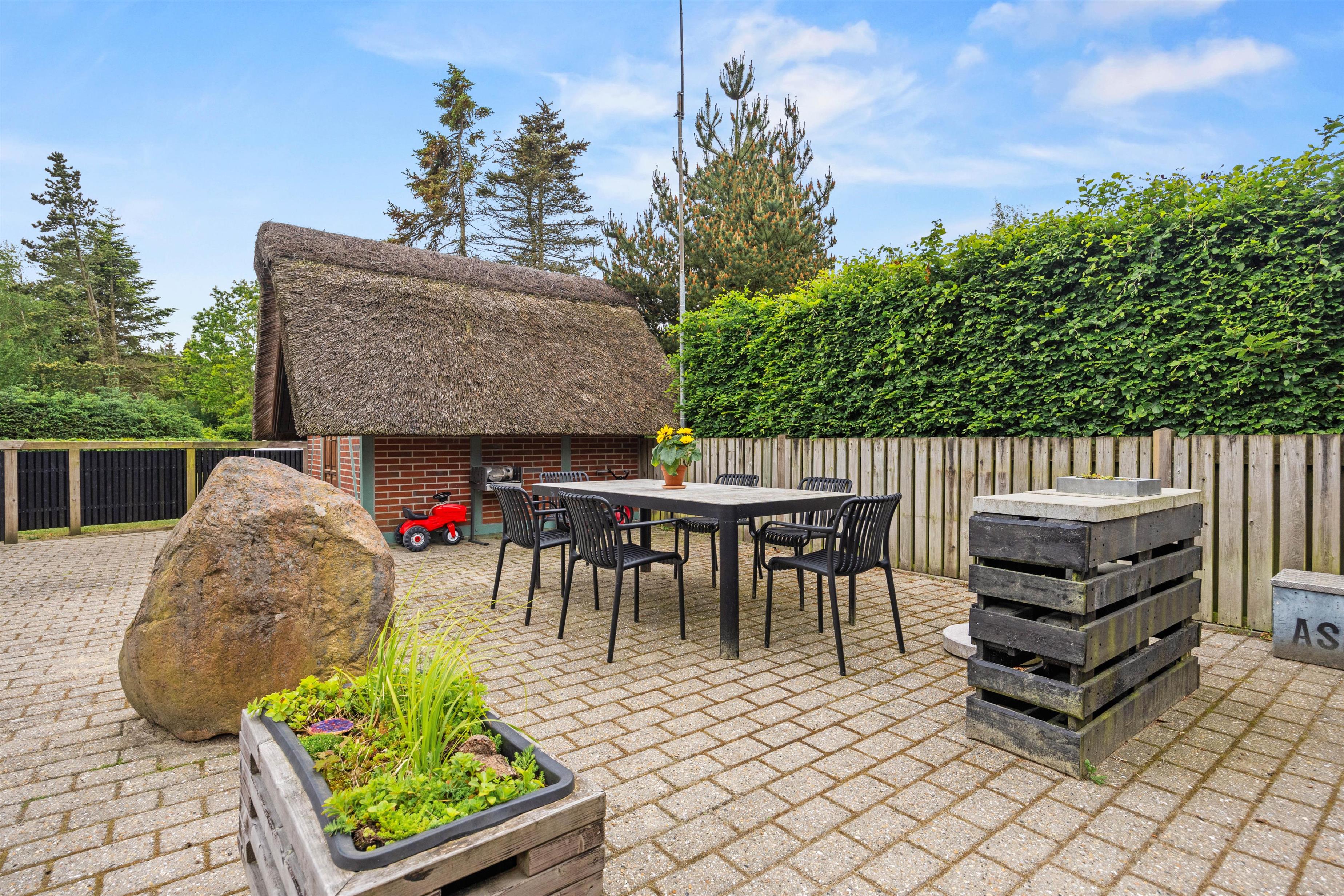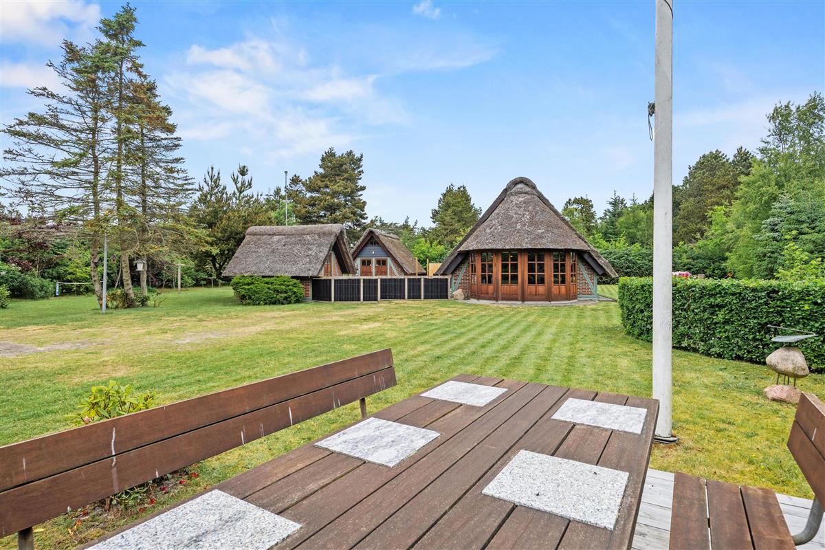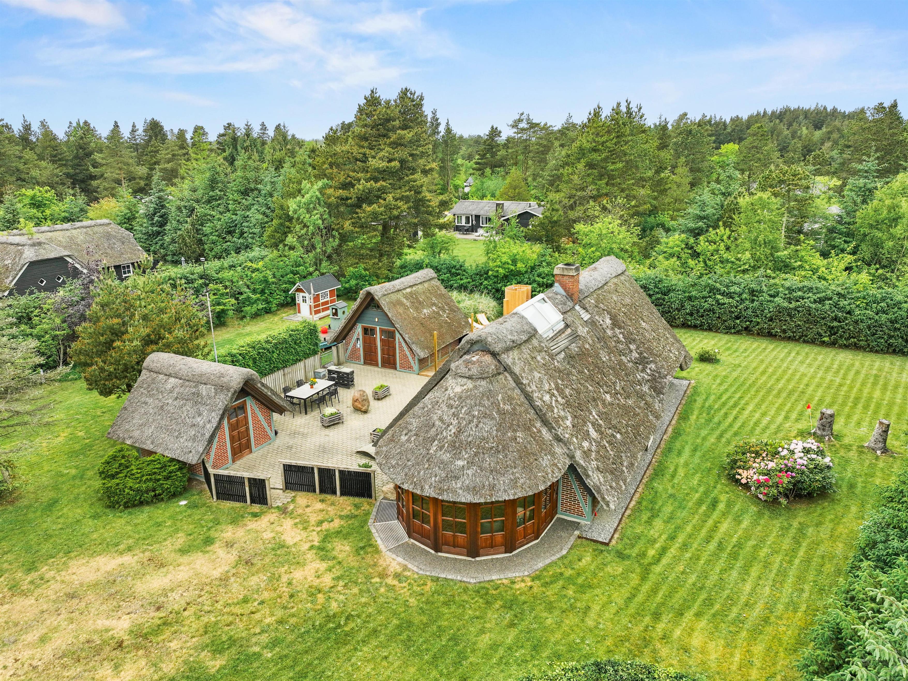 This comfortable thatched cottage sits on a generous 2,949-square-metre plot with lawns perfect for football or a game of Viking chess (Kubb). Children will love the pirate ship with sandbox, swing set, and playhouse.