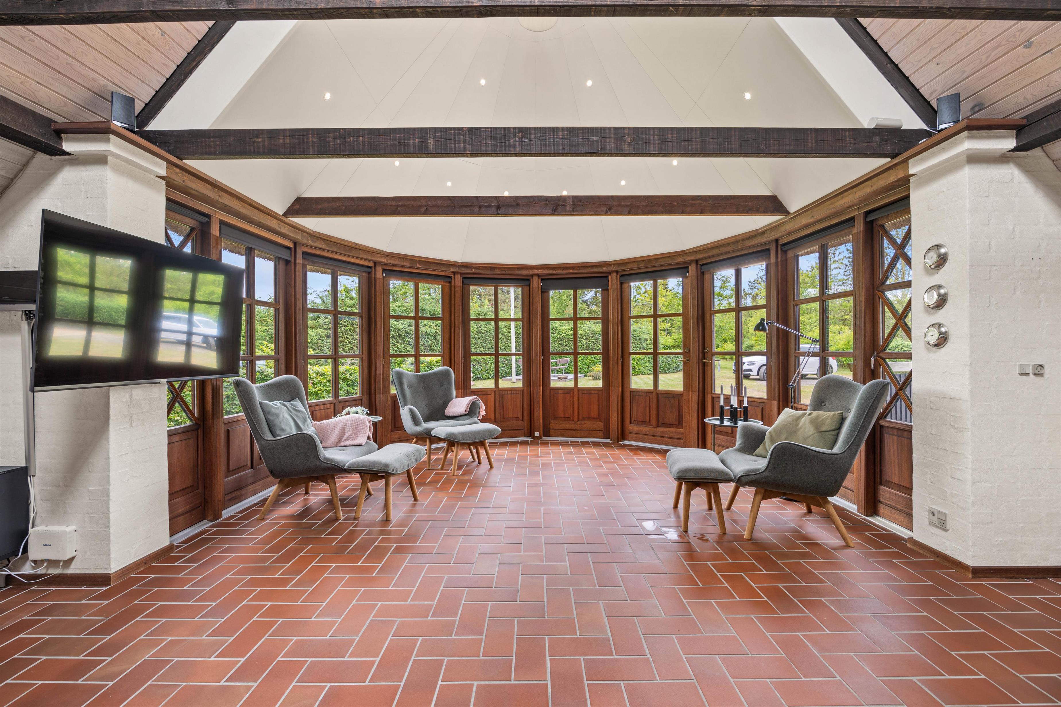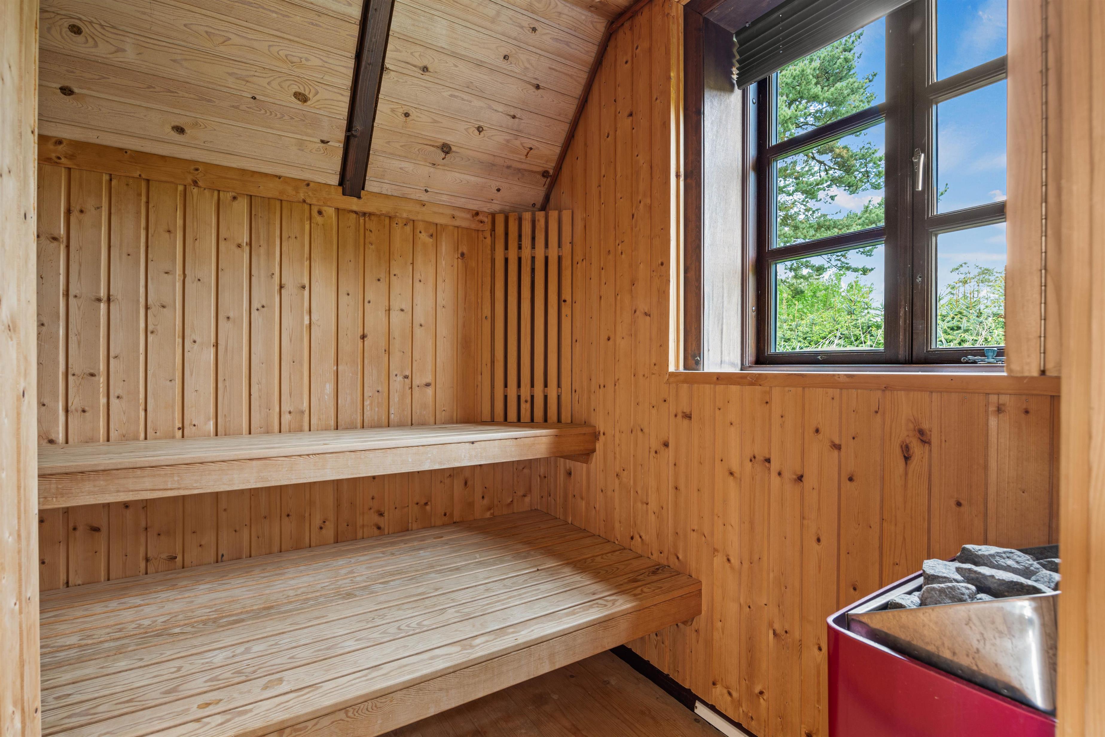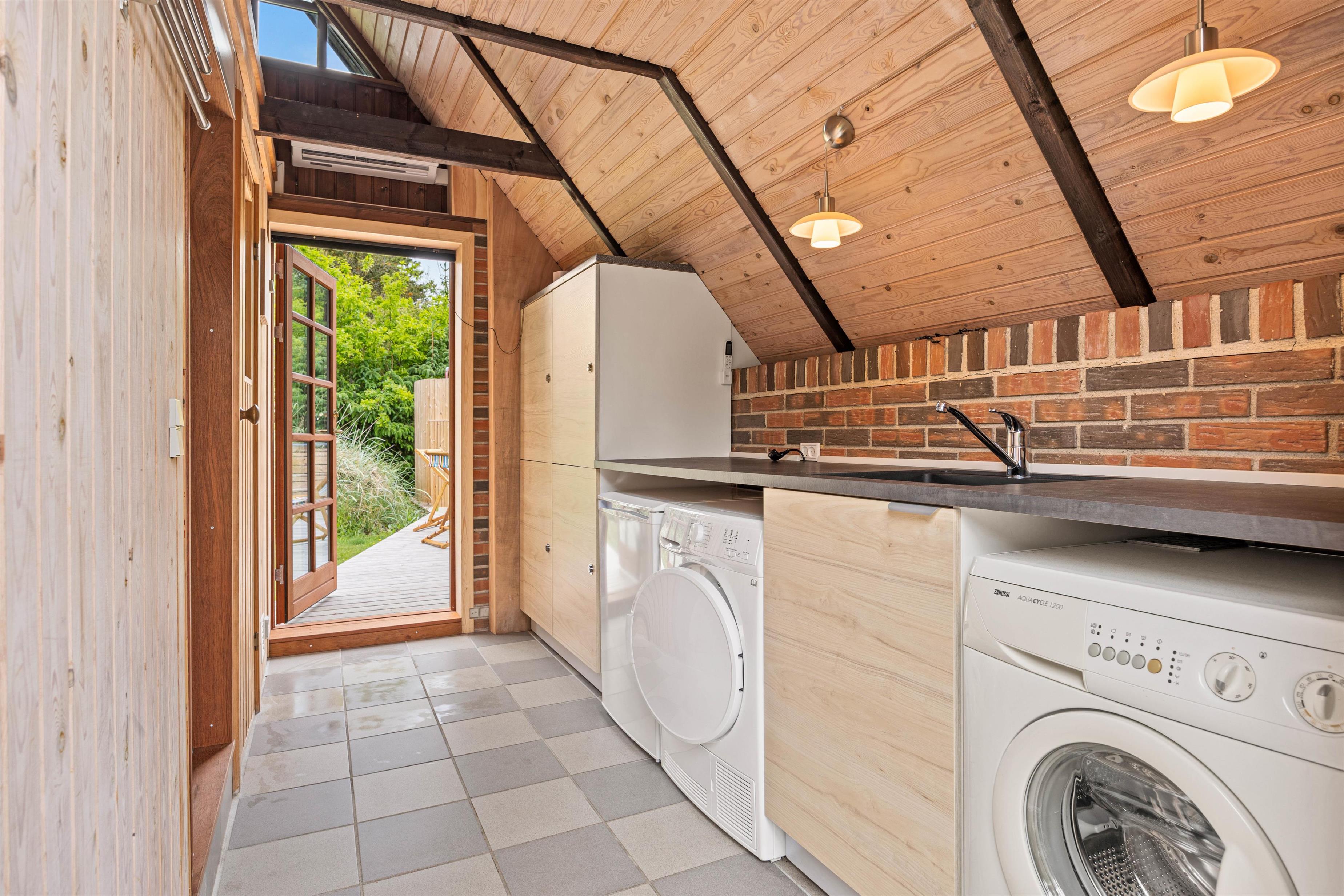 The kitchen opens onto the living area and is well-equipped for preparing delicious meals. The main house also features a tastefully designed shower room and two comfortable bedrooms on the ground floor, plus one bedroom on the first floor. The roof windows offer lovely views of the surrounding area. In the annexe, you'll find an additional shower room alongside the sauna. Enjoy relaxing sauna sessions and leave everyday stress behind.
