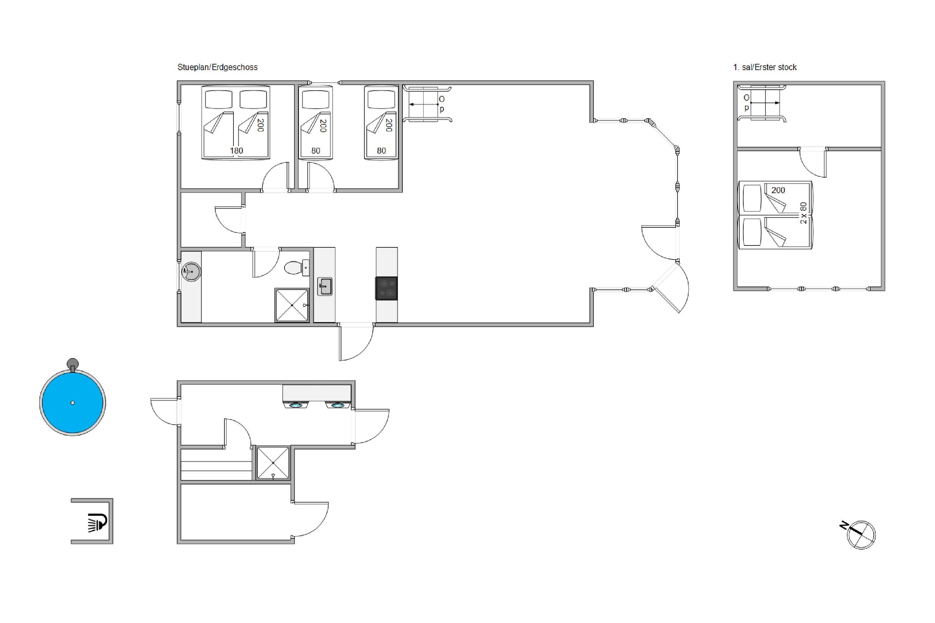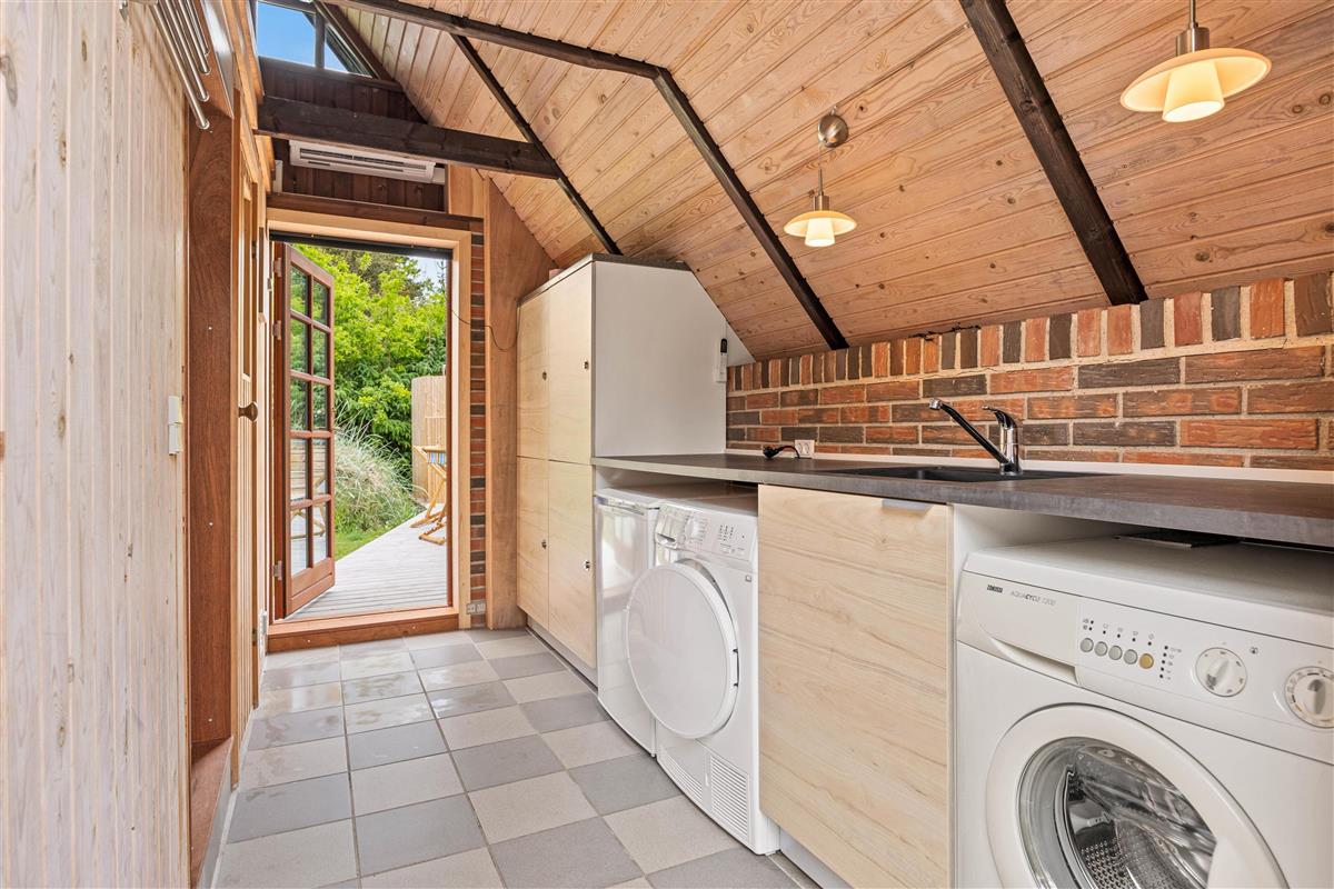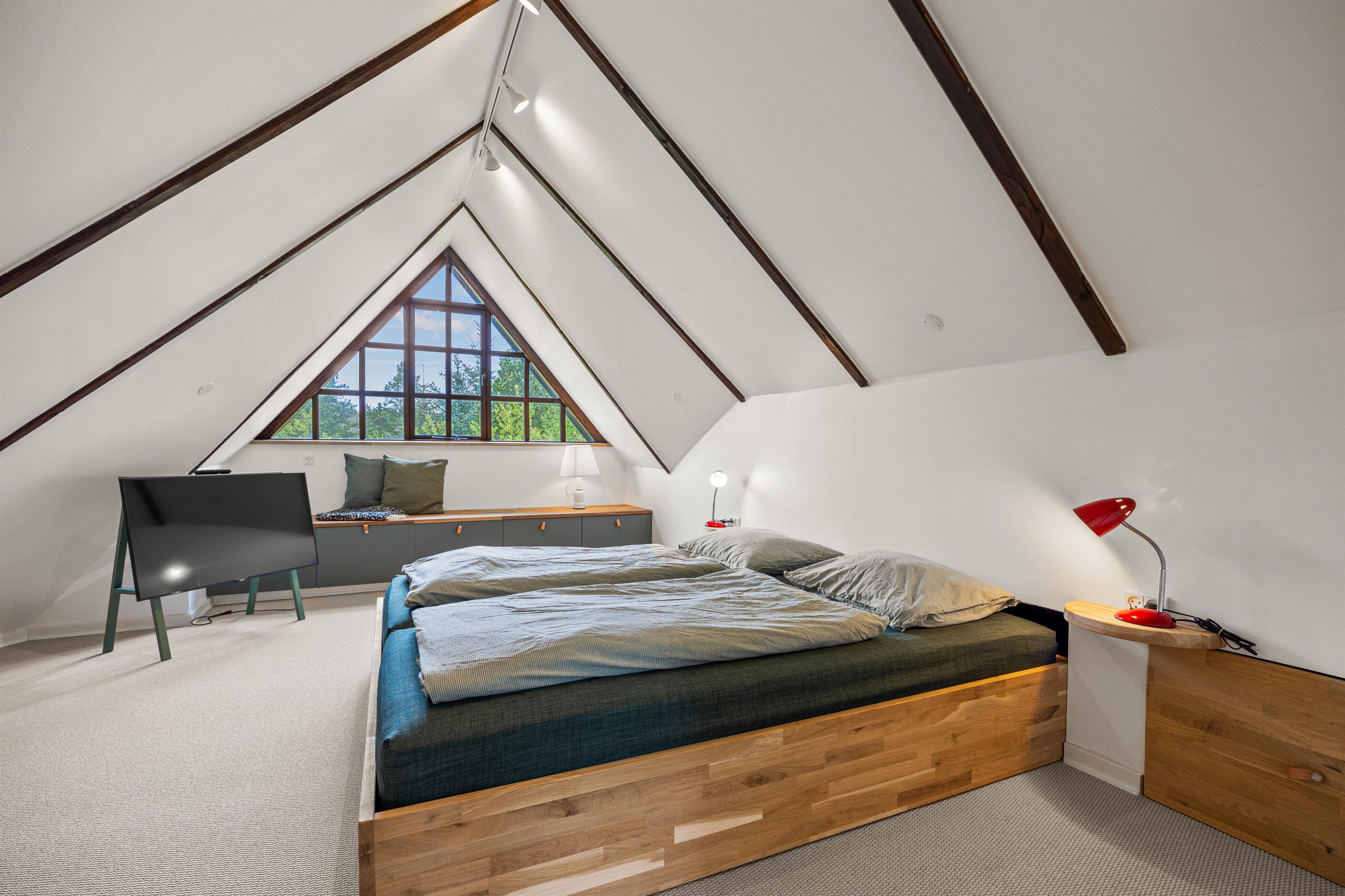 The kitchen opens onto the living area and is well-equipped for preparing delicious meals. The main house also features a tastefully designed shower room and two comfortable bedrooms on the ground floor, plus one bedroom on the first floor. The roof windows offer lovely views of the surrounding area. In the annexe, you'll find an additional shower room alongside the sauna. Enjoy relaxing sauna sessions and leave everyday stress behind.