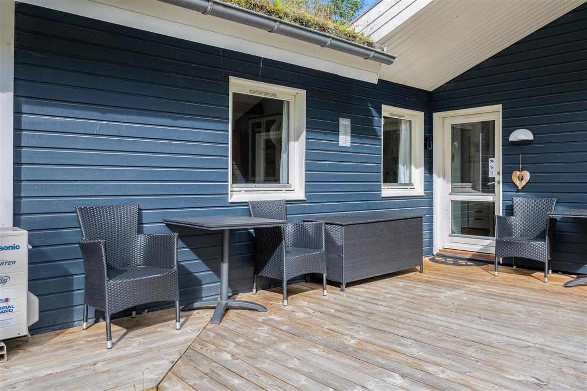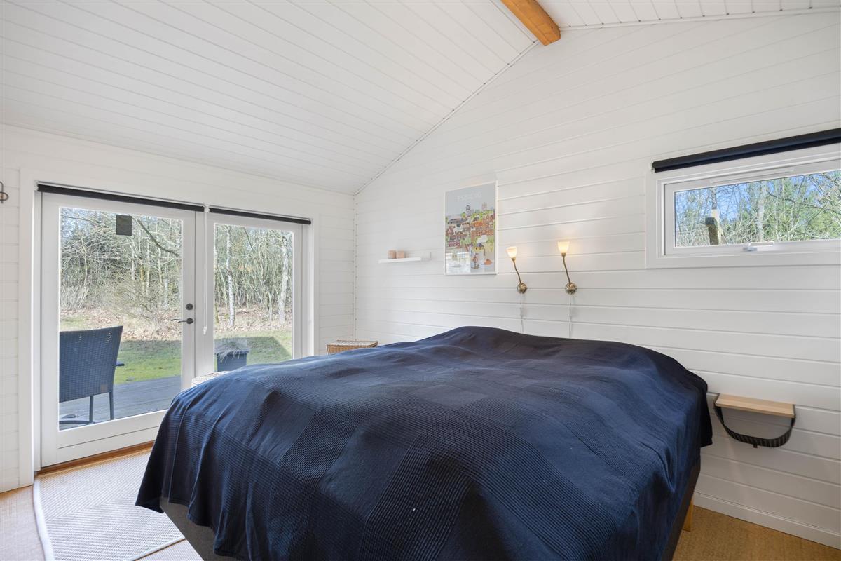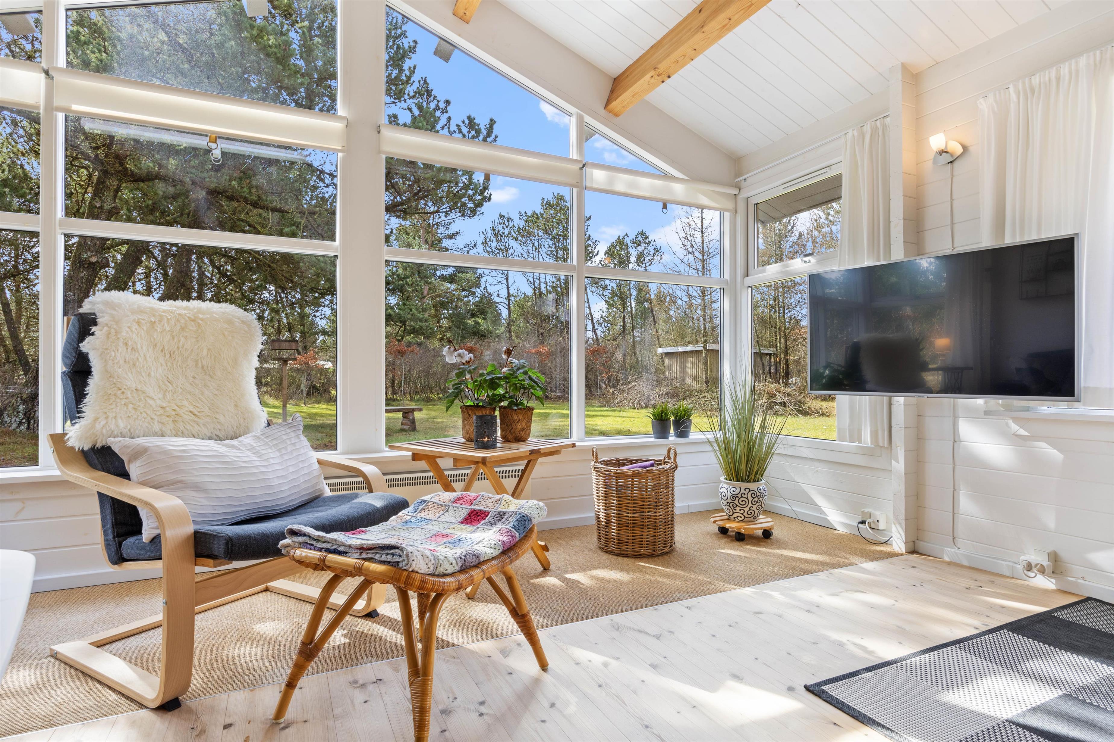 The holiday home at Sandtag 23 sits on 2,190 square metres of garden grounds, surrounded by shrubs and trees. Children can play freely on the lawn, and there's plenty of space for a game of Viking chess (Kubb).