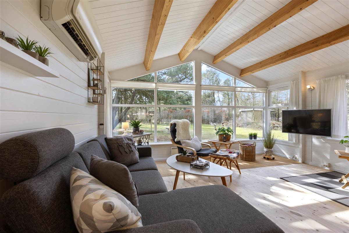 Your holiday home with its 'green' roof is eye-catching not only from the outside. Inside, you'll find carefully chosen furnishings in typical Danish style. The bright, open-plan living area is perfect for relaxation and unwinding. The numerous windows flood the space with natural light, creating the feeling of being immersed in nature.