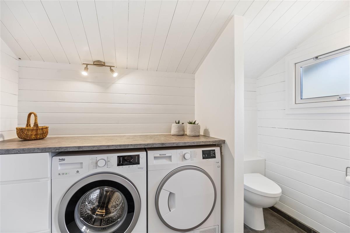 Here you'll find a comfortable sofa where you can watch television, read a book, or simply listen to the crackling of the wood-burning stove. To maintain your ideal temperature, you can also use the energy-efficient heat pump. The kitchen opens onto the living space and features practical amenities, including, of course, a dishwasher.