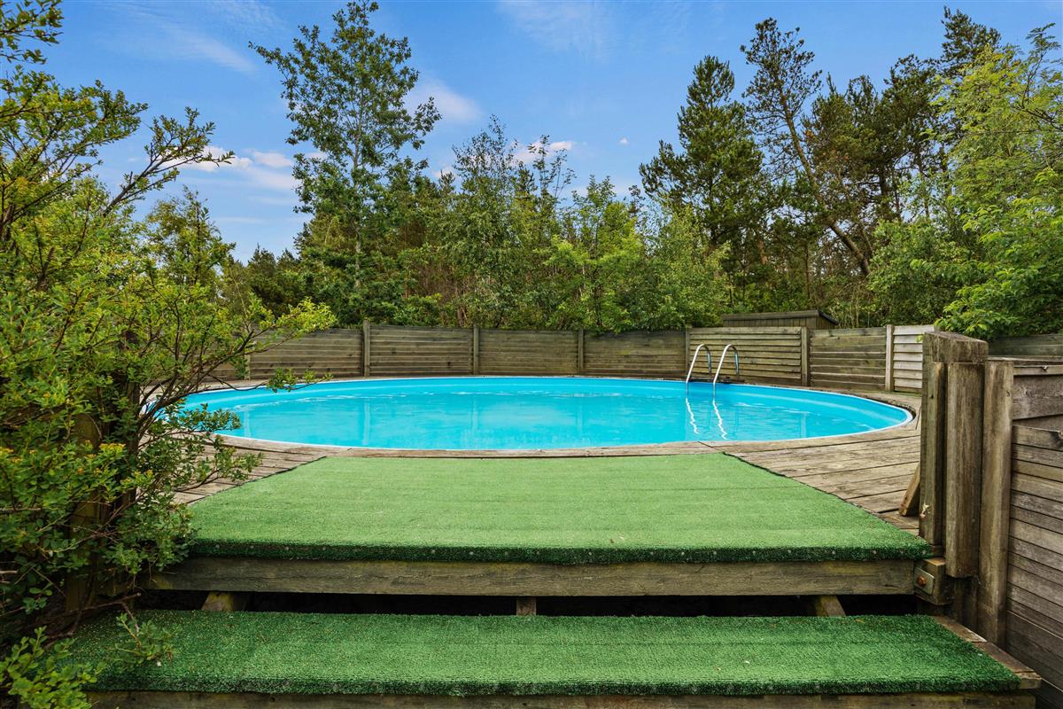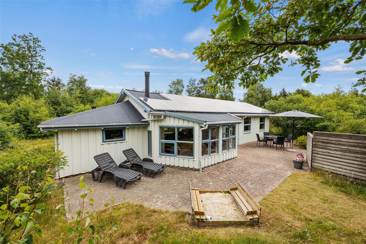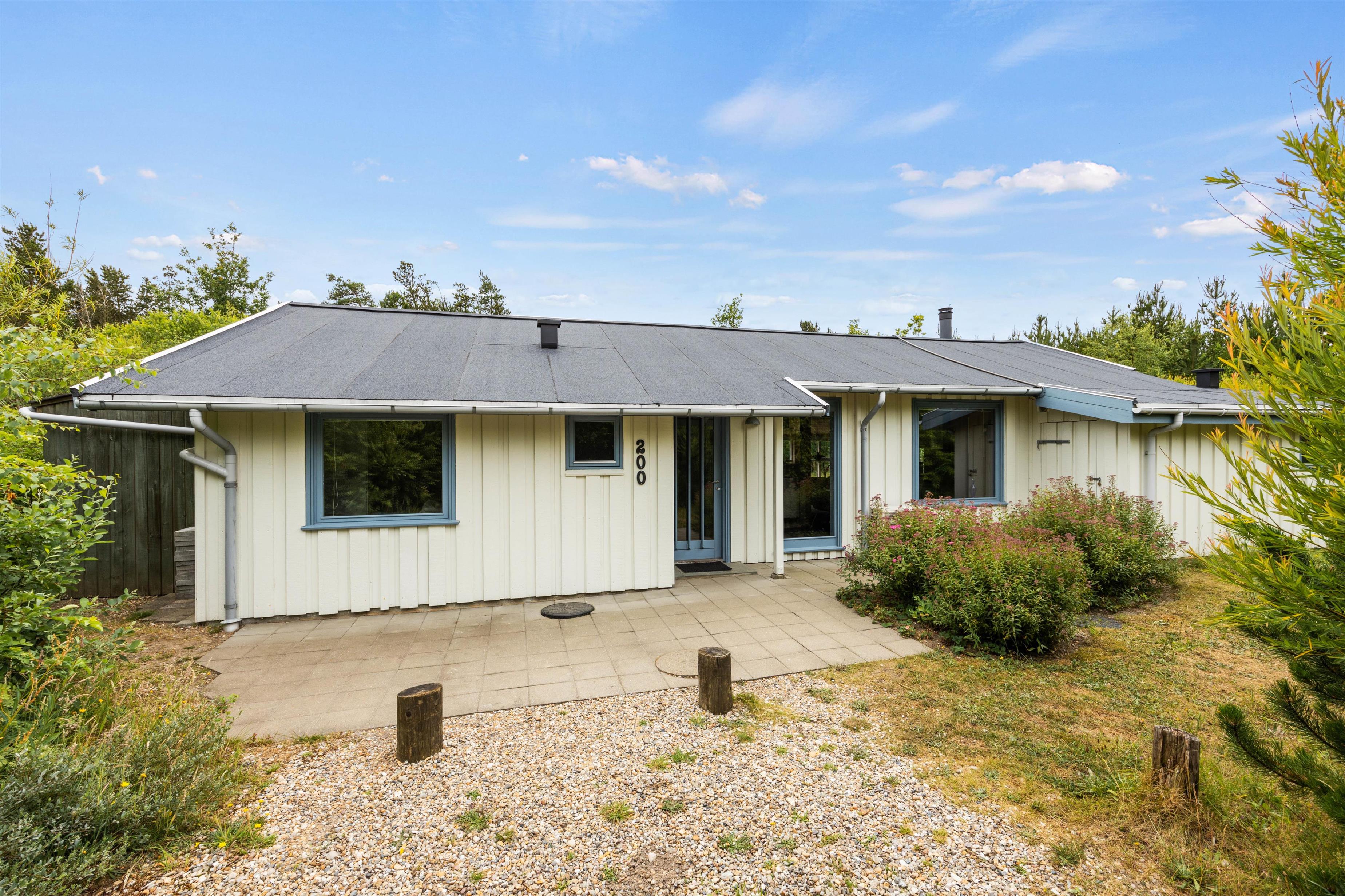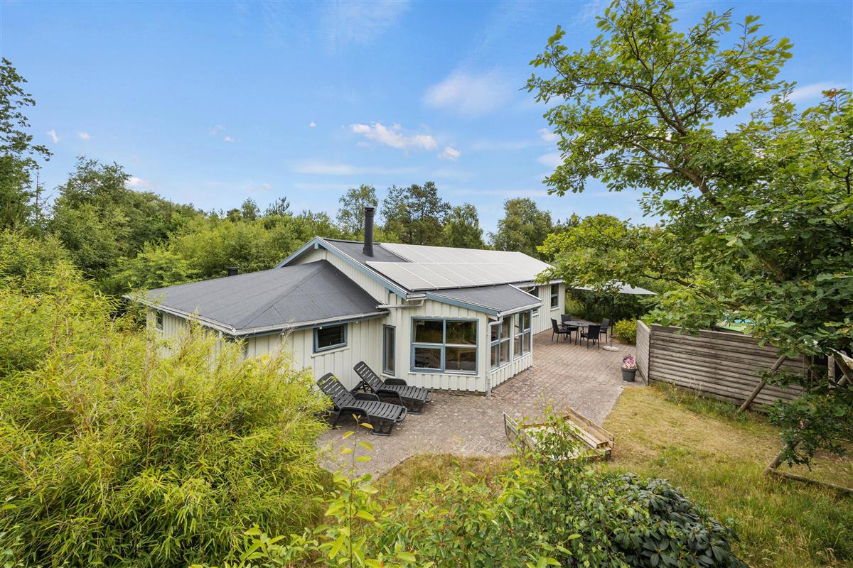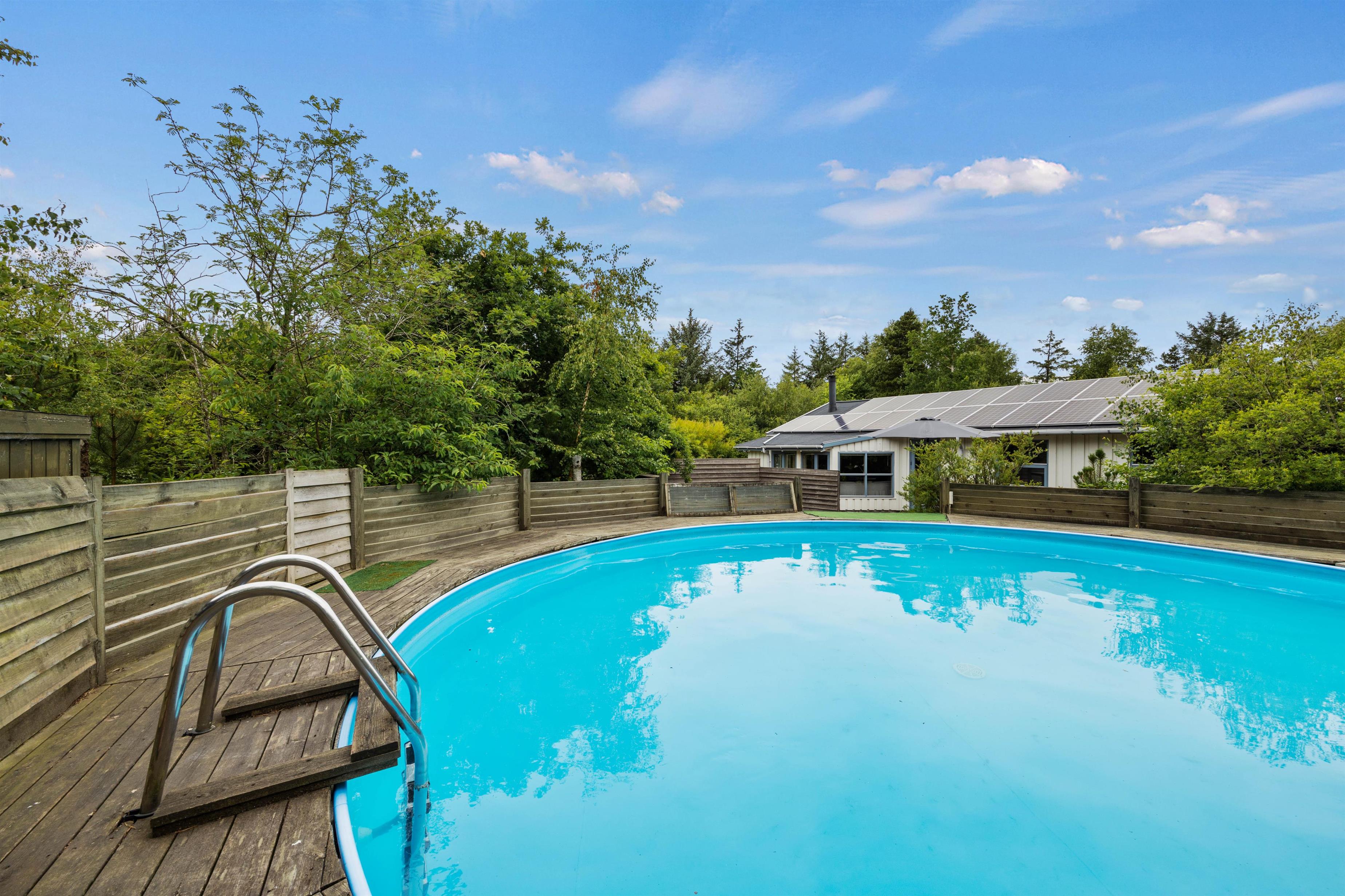 Surrounded by trees and hiking trails, you'll find this cosy holiday home at Nørrevang 200. The holiday home with its outdoor swimming pool enjoys a wonderful location. There's space for the whole family, including the family dog.