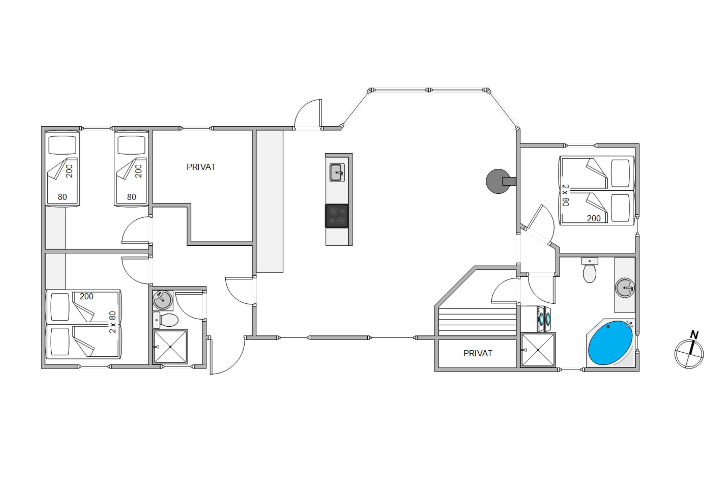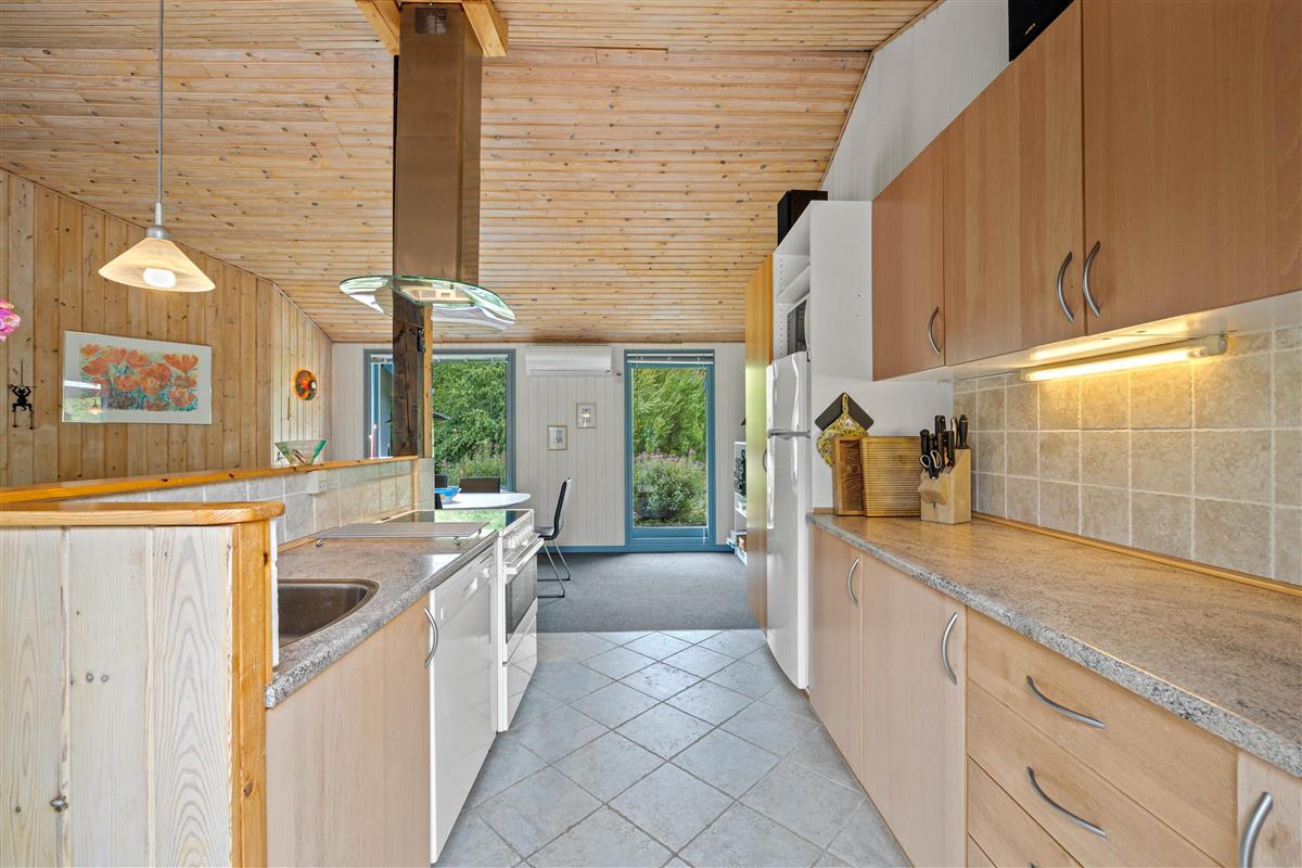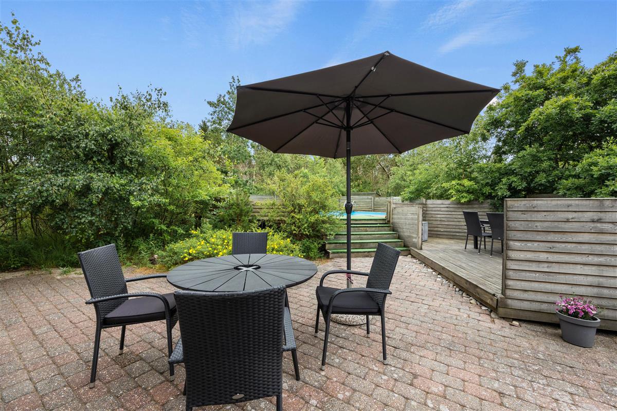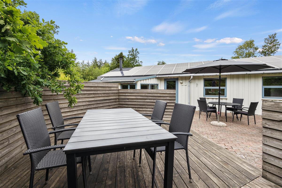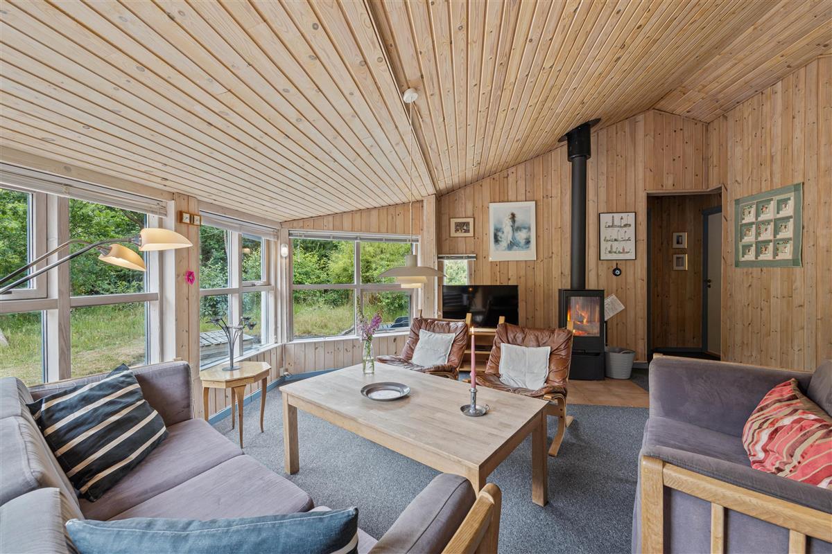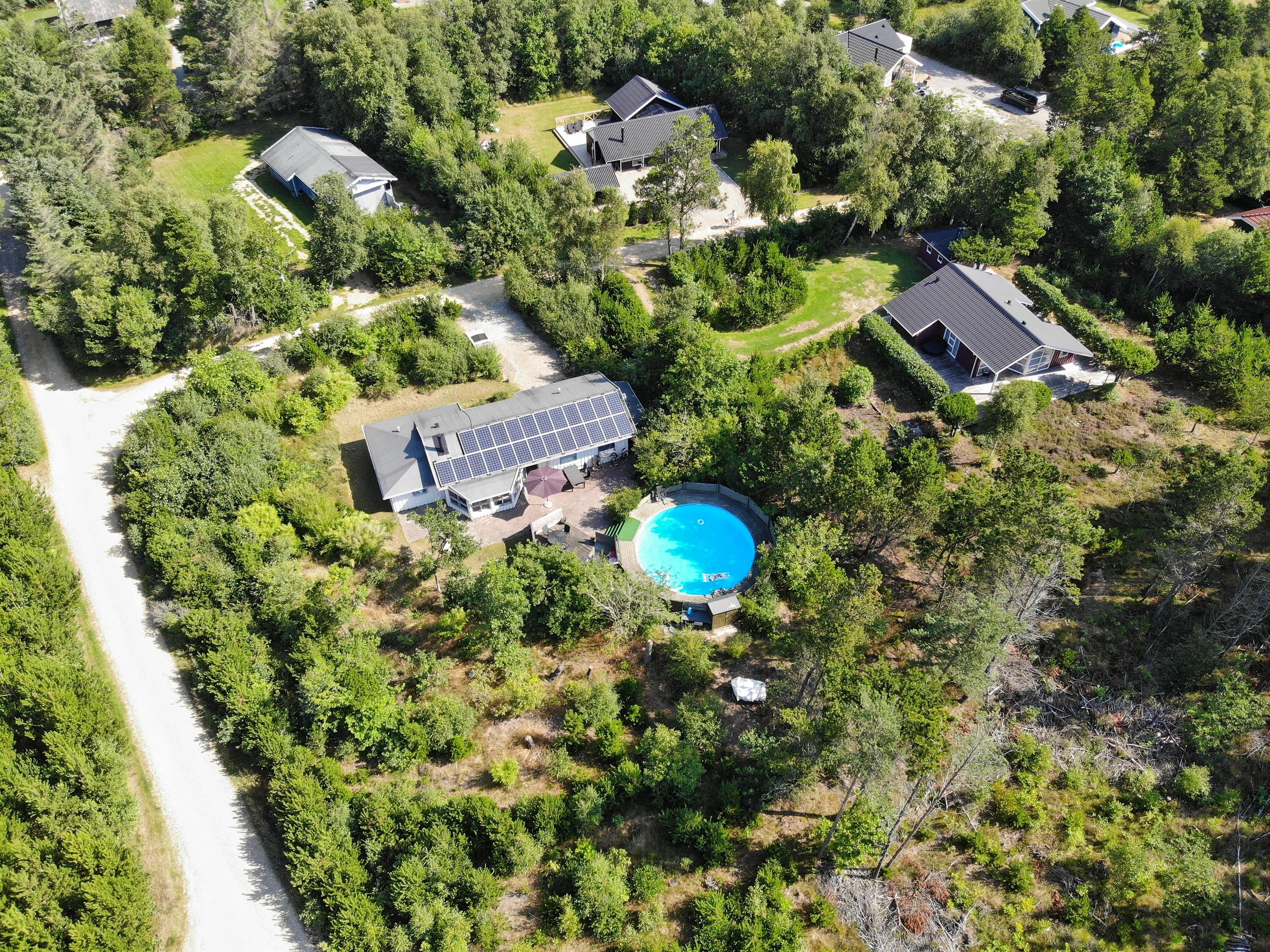 Surrounded by trees and hiking trails, you'll find this cosy holiday home at Nørrevang 200. The holiday home with its outdoor swimming pool enjoys a wonderful location. There's space for the whole family, including the family dog.