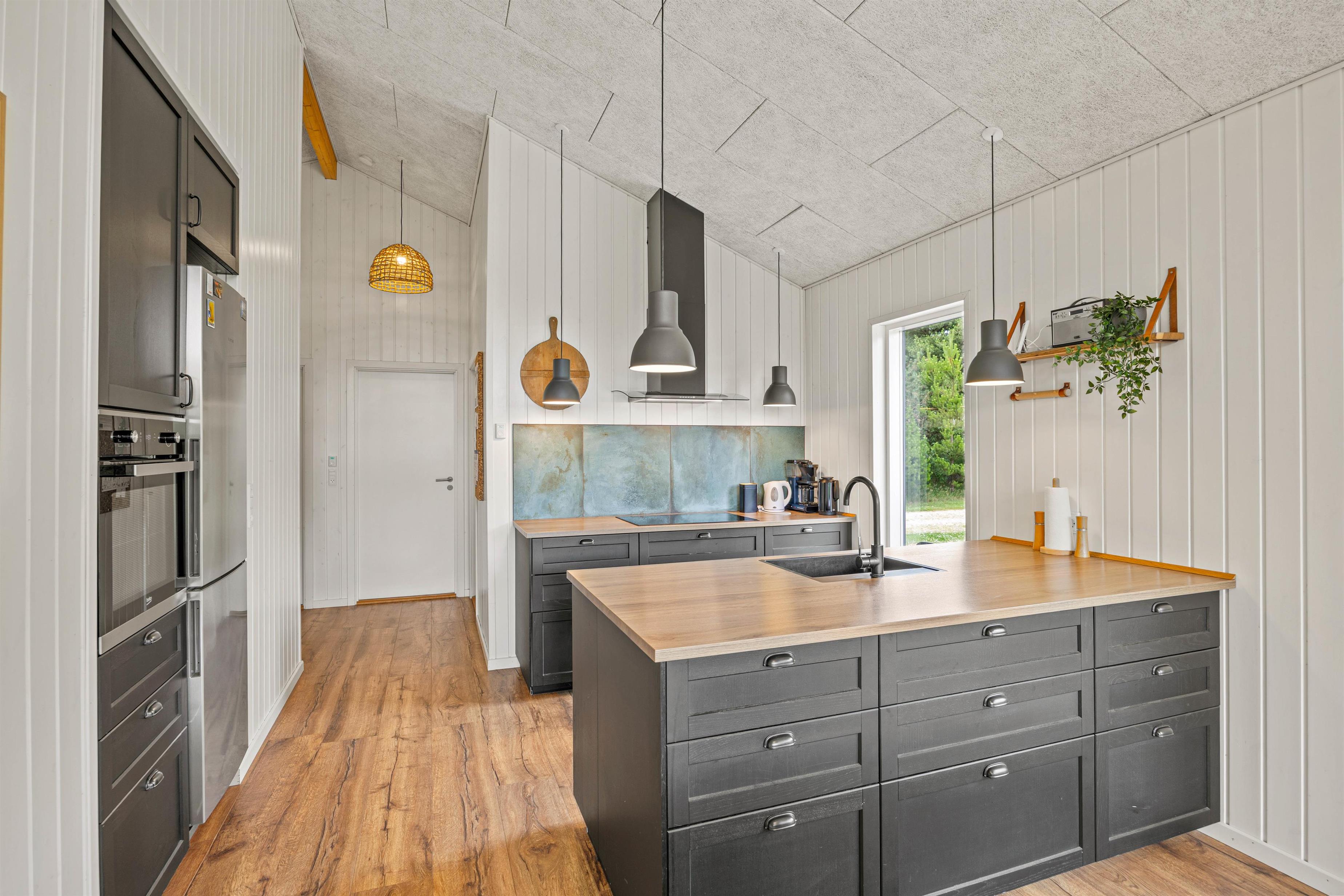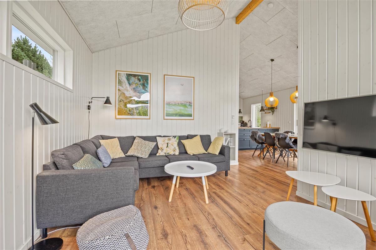 The modern kitchen's induction hob and dishwasher make kitchen duties quick and easy. The wood-burning stove brings a cosy atmosphere to the house all year round. This creates the perfect setting for your holiday activities, whether you're playing board games at the dining table, enjoying floor play with toddlers, or relaxing on the comfortable sofa in front of the television.