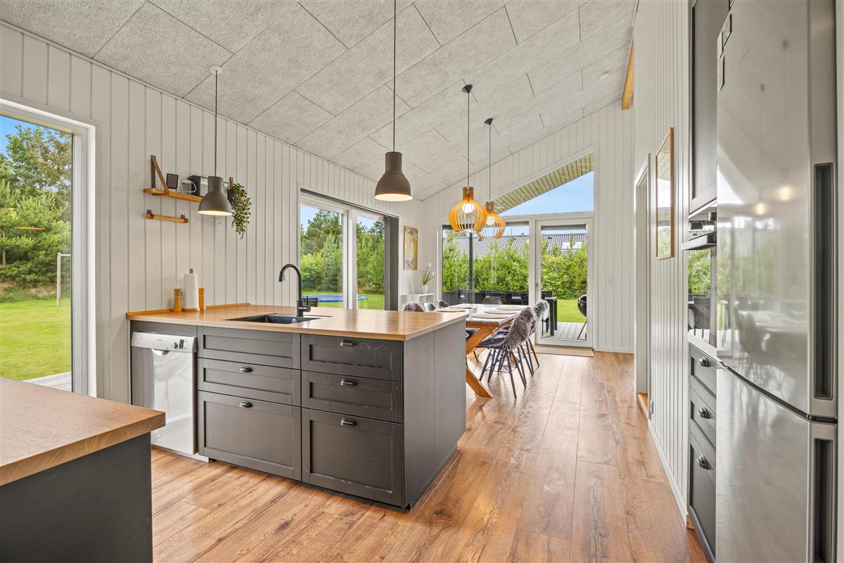 Hedevang 18 is situated in the beautiful Houstrup area, surrounded by unique natural features such as Lake Fiilsø and the Blåbjerg forest area. The area is ideal for long dog walks and perfect for cycling and horse riding excursions. Landal Seawest Water Park is within walking distance. A short drive away you'll find a Viking harbour, adventure playground, rail trolley experience, golf course and the charming seaside town of Henne Strand.