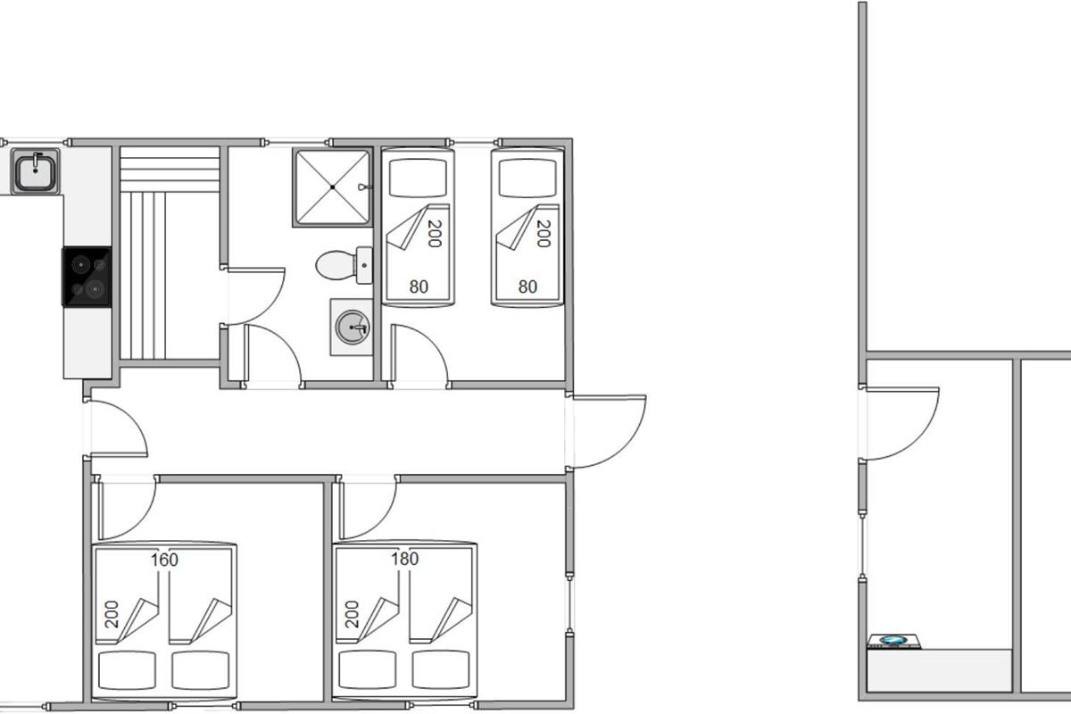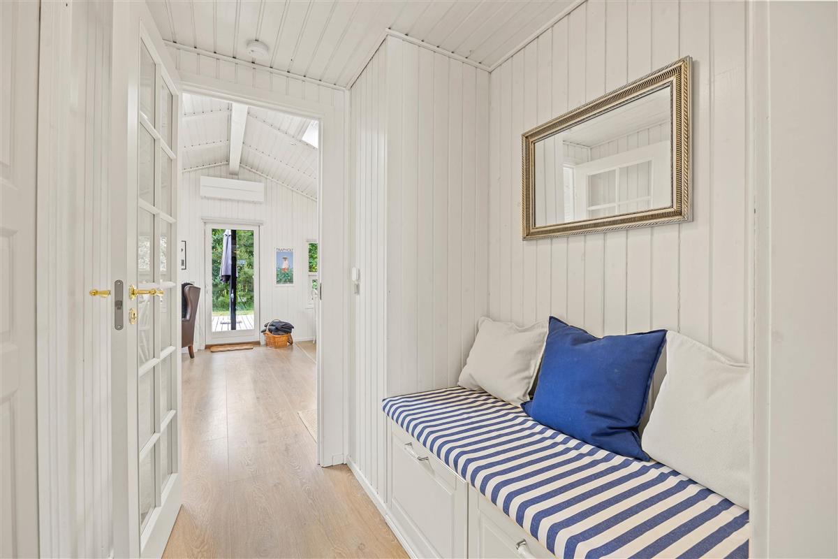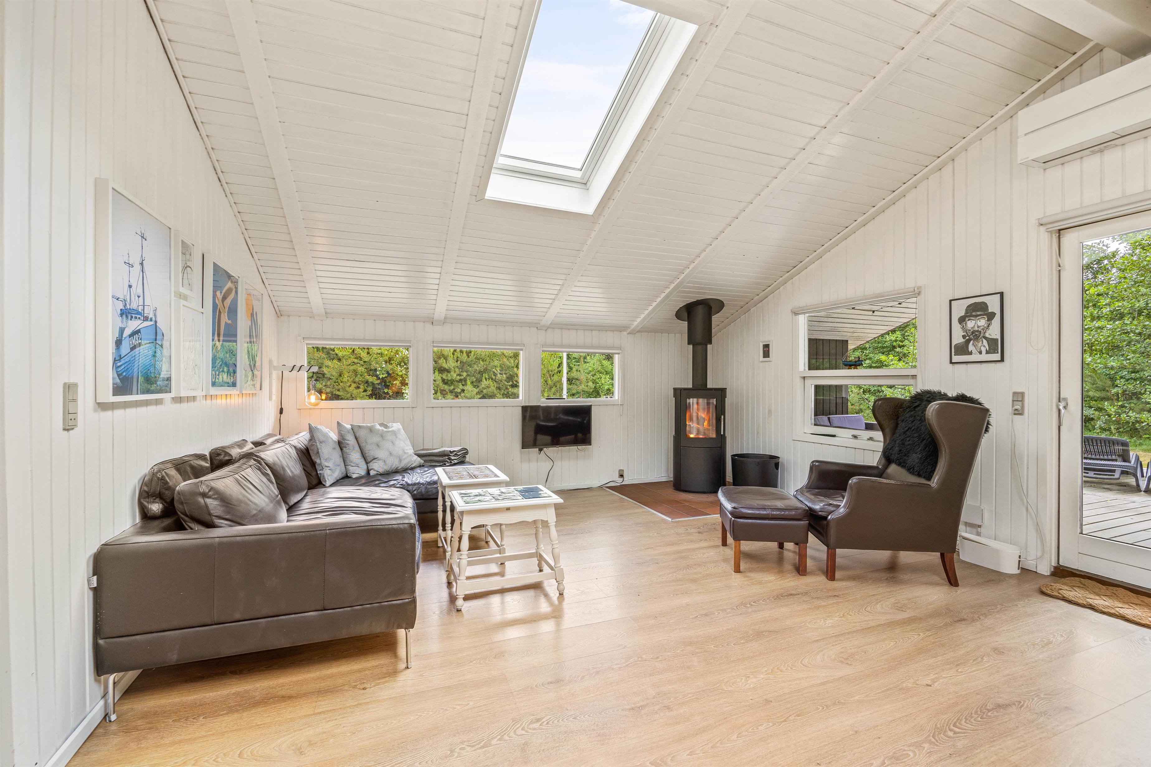 The open-plan living room, dining area and kitchen create a sociable space where you'll spend many enjoyable hours together - whether cooking, playing games or relaxing on the sofa in front of the wood-burning stove. The possibilities are endless. You can even enjoy your favourite music through the Bluetooth-connected speakers.