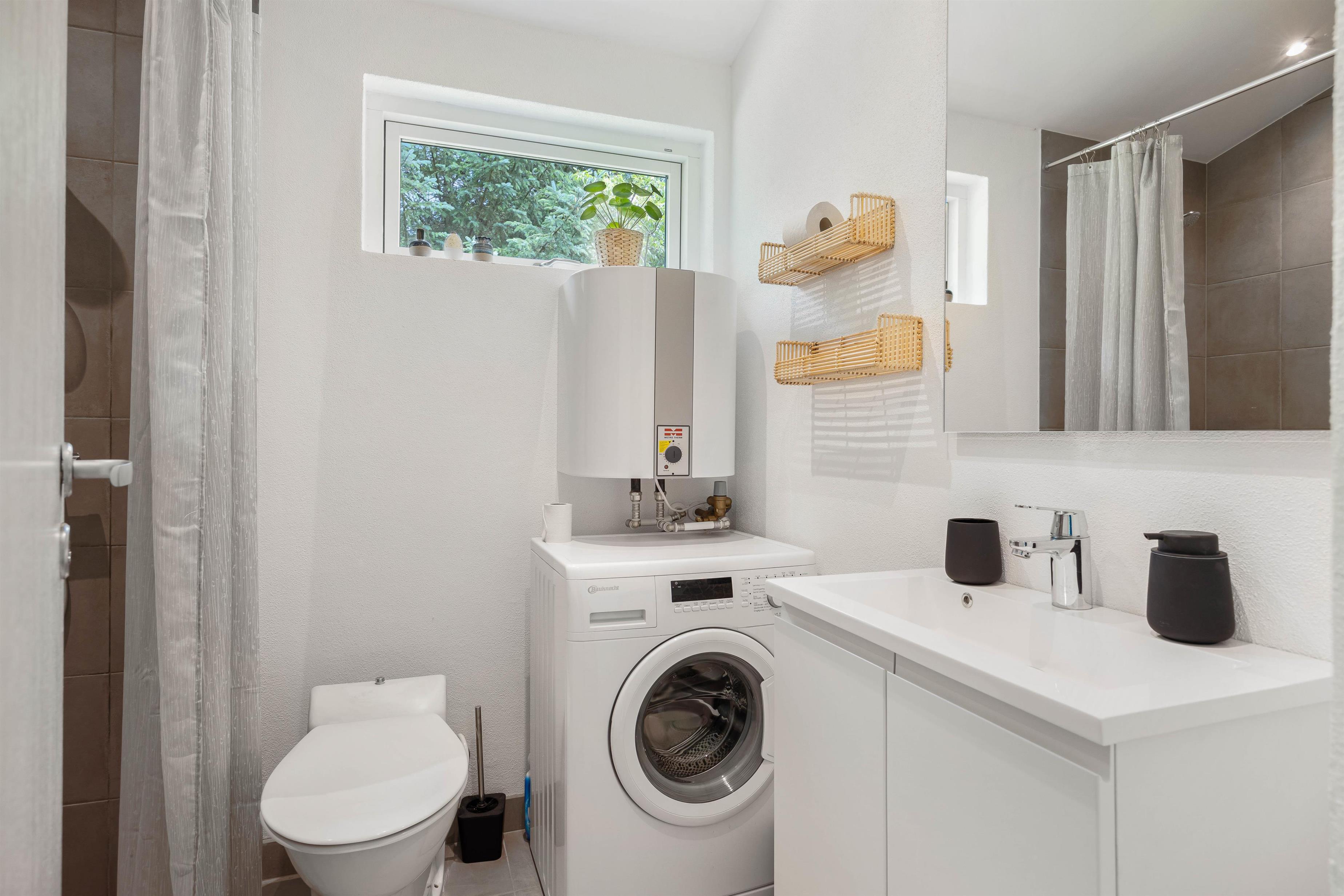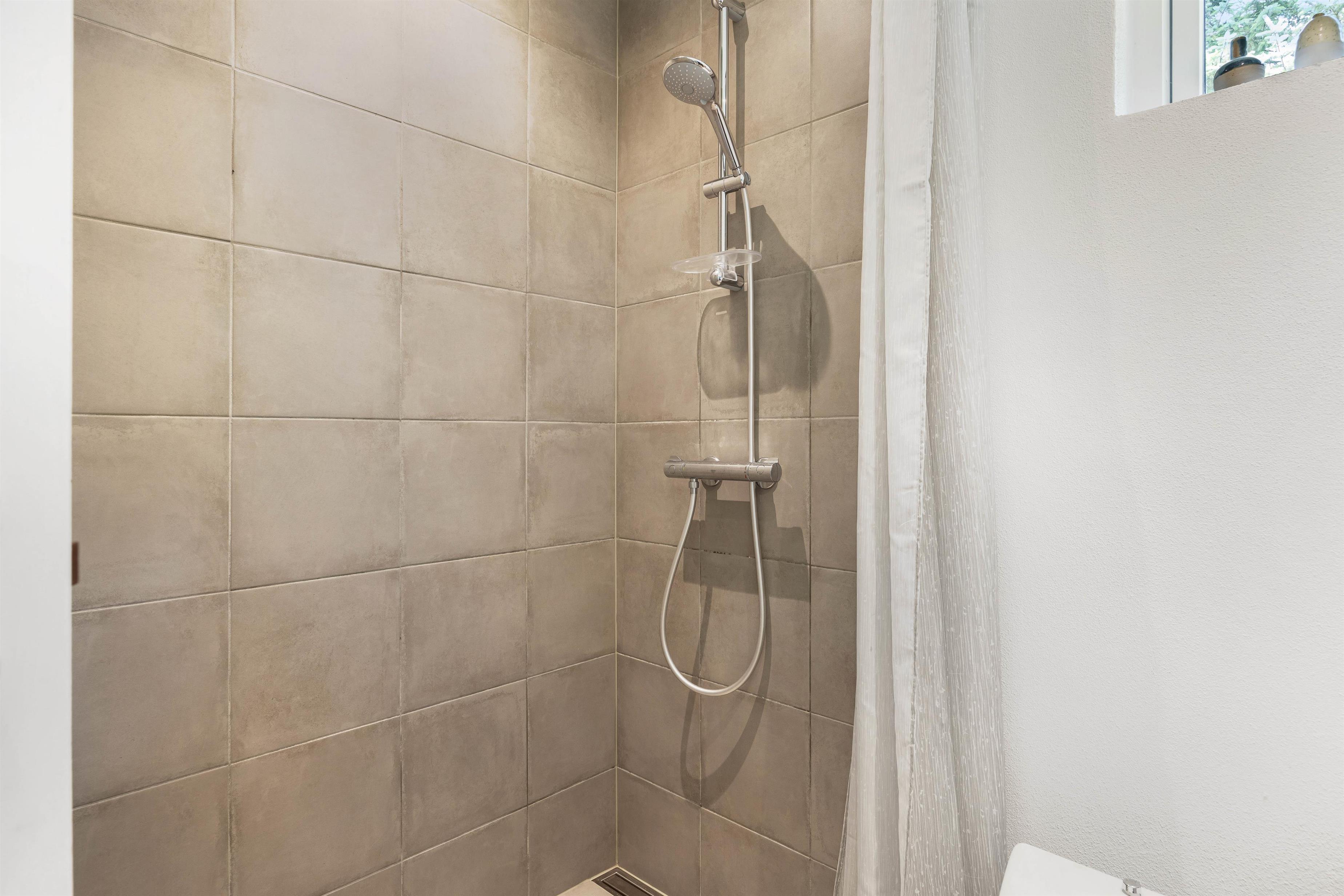The living area opens directly onto a partially covered terrace. During summer days, this area becomes an extended living space where you can embrace outdoor living with comfortable garden furniture and a barbecue. The large natural garden invites you to spend time in nature. Several comfortable seating areas provide ideal spots for reading a good book, breathing in the fresh air, and perhaps spotting squirrels playing among the trees.