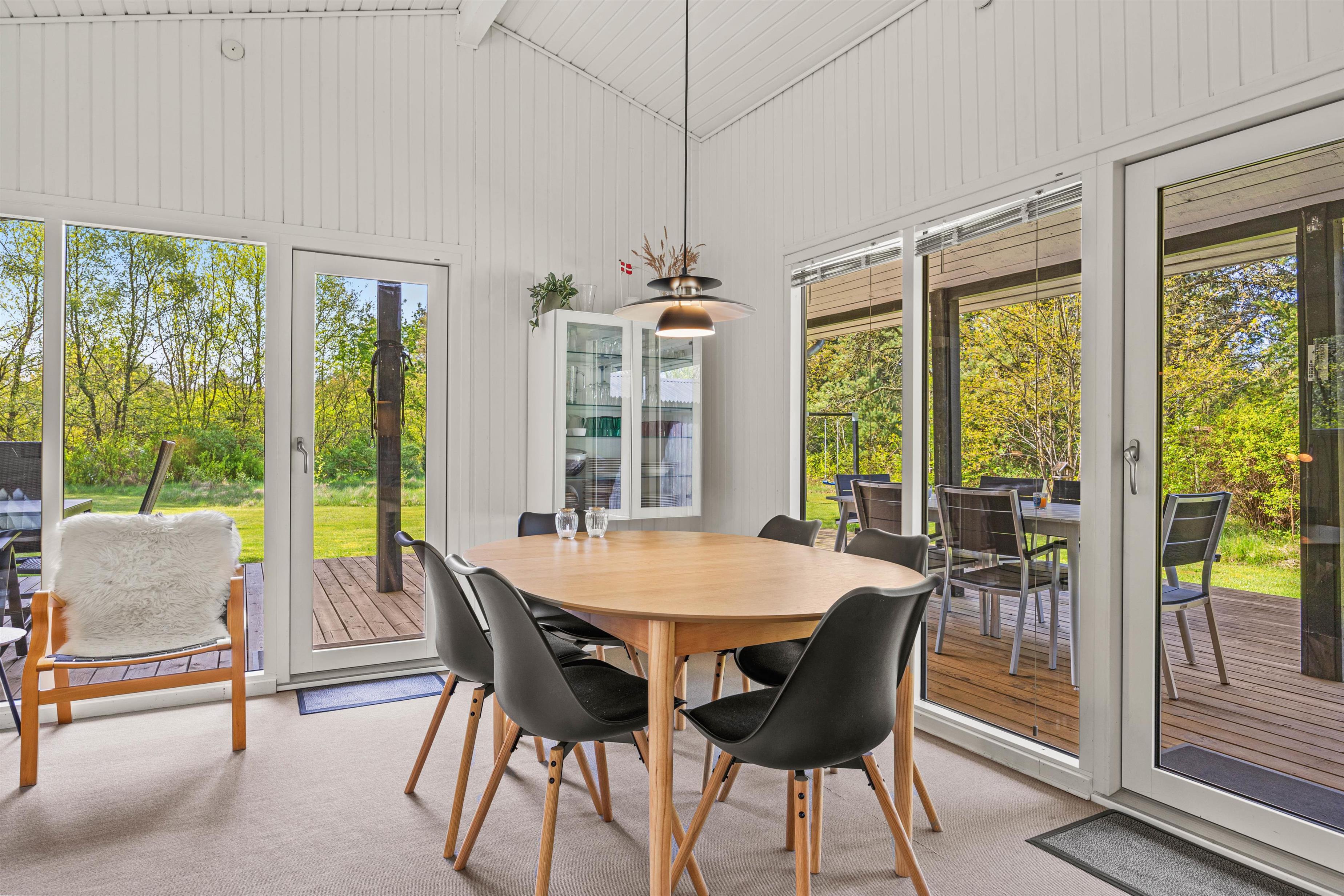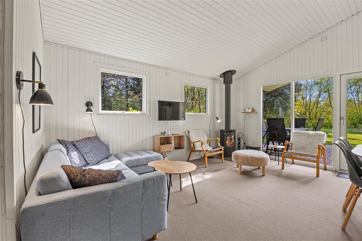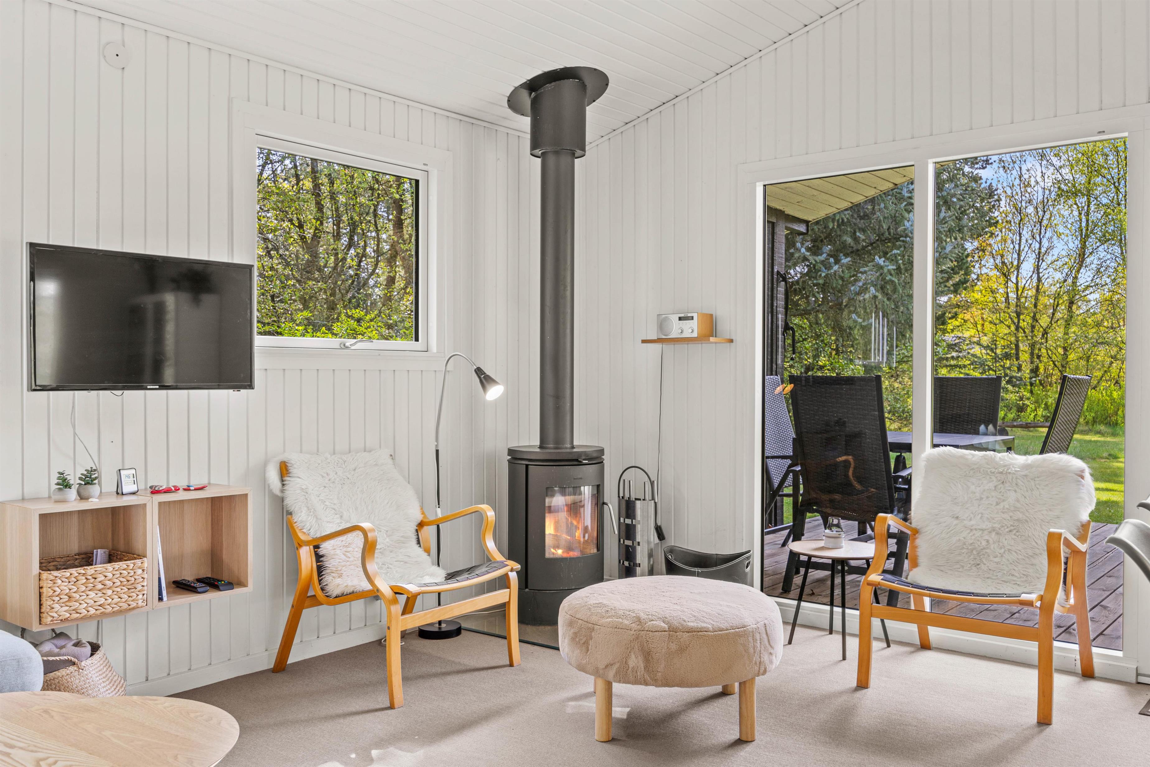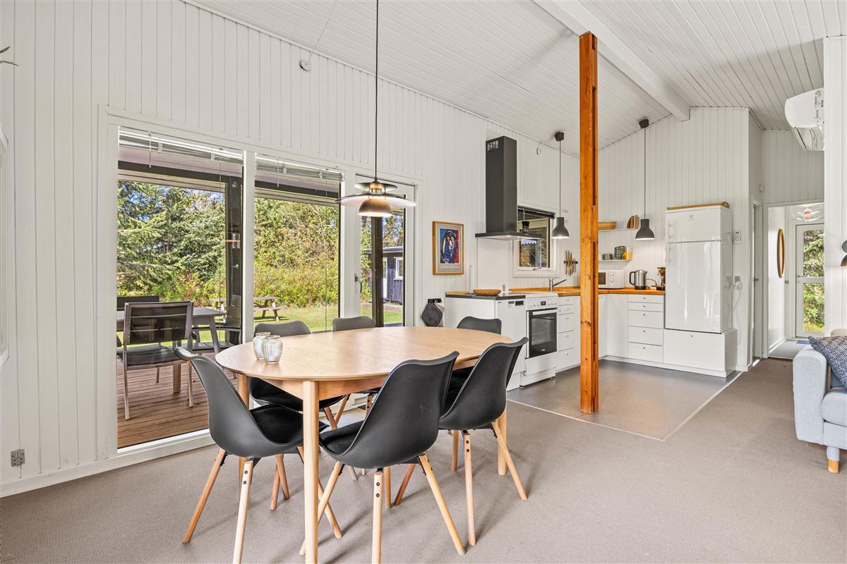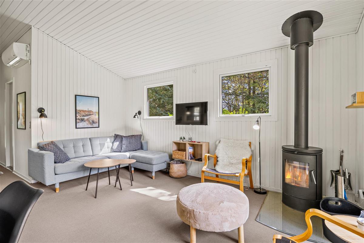 This charming holiday home offers everything you need for a relaxing stay. It features a cosy living and dining room that creates an open, welcoming space together with the integrated kitchen. The well-equipped kitchen includes a dishwasher, making cleanup after cooking effortless. The wood-burning stove in the living area adds extra comfort, creating a pleasant atmosphere, while the modern air-to-air heat pump efficiently warms the house when needed, ensuring your complete comfort.