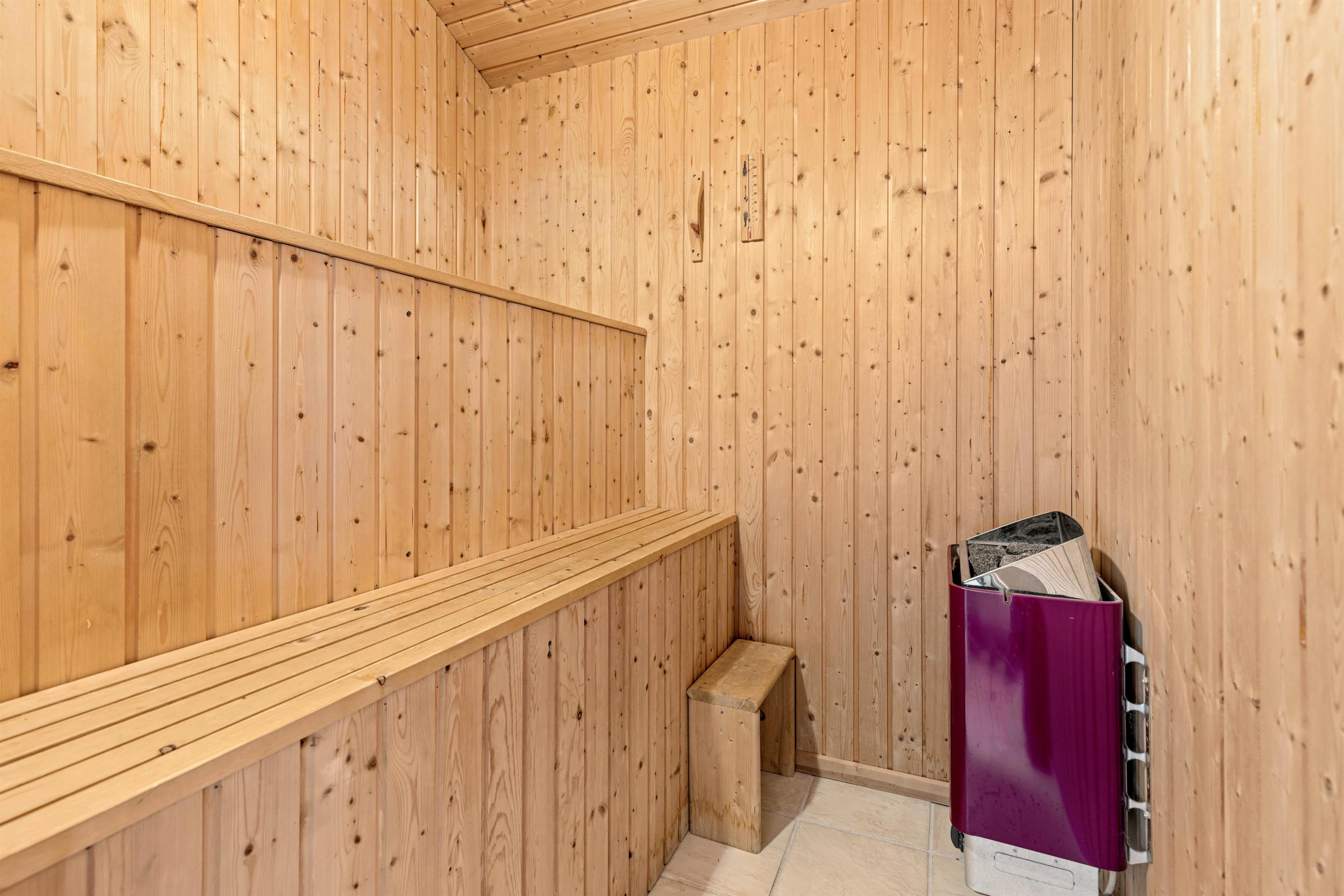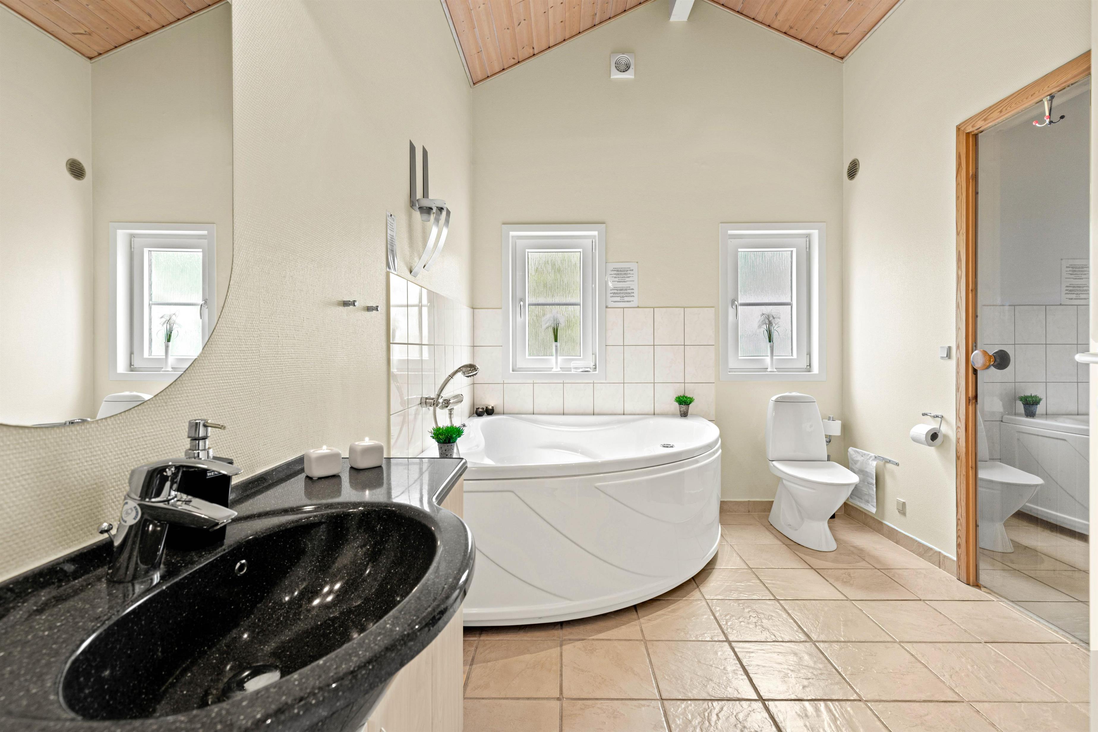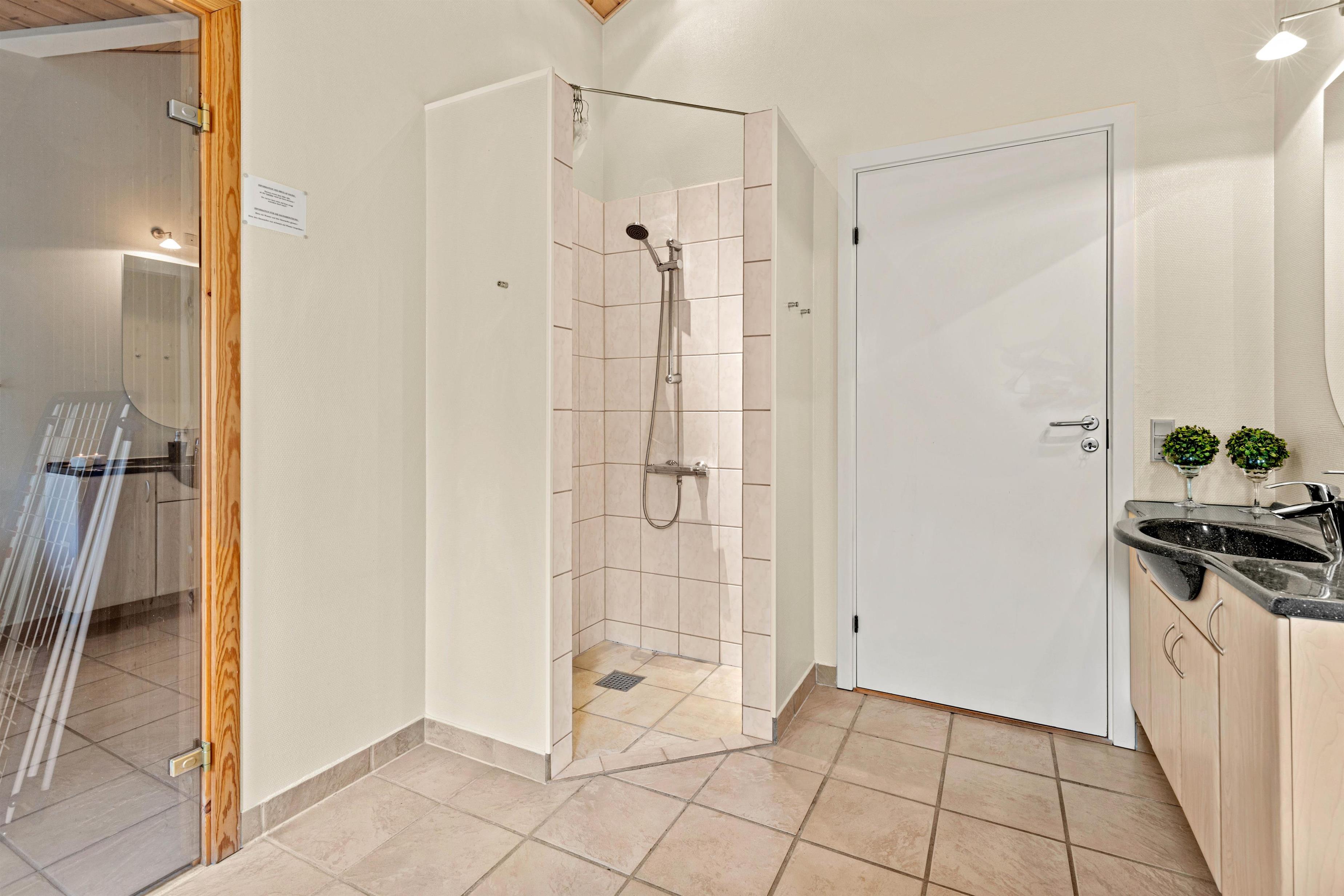 The holiday home's practical layout makes it ideal for holidays with grandparents and friends. No queuing for the bathroom in the morning, as there are two beautiful bathrooms with shower and WC. One bathroom also features a whirlpool and direct access to the private sauna - perfect for warming up and unwinding after a walk through the nearby Blåbjerg Plantation.