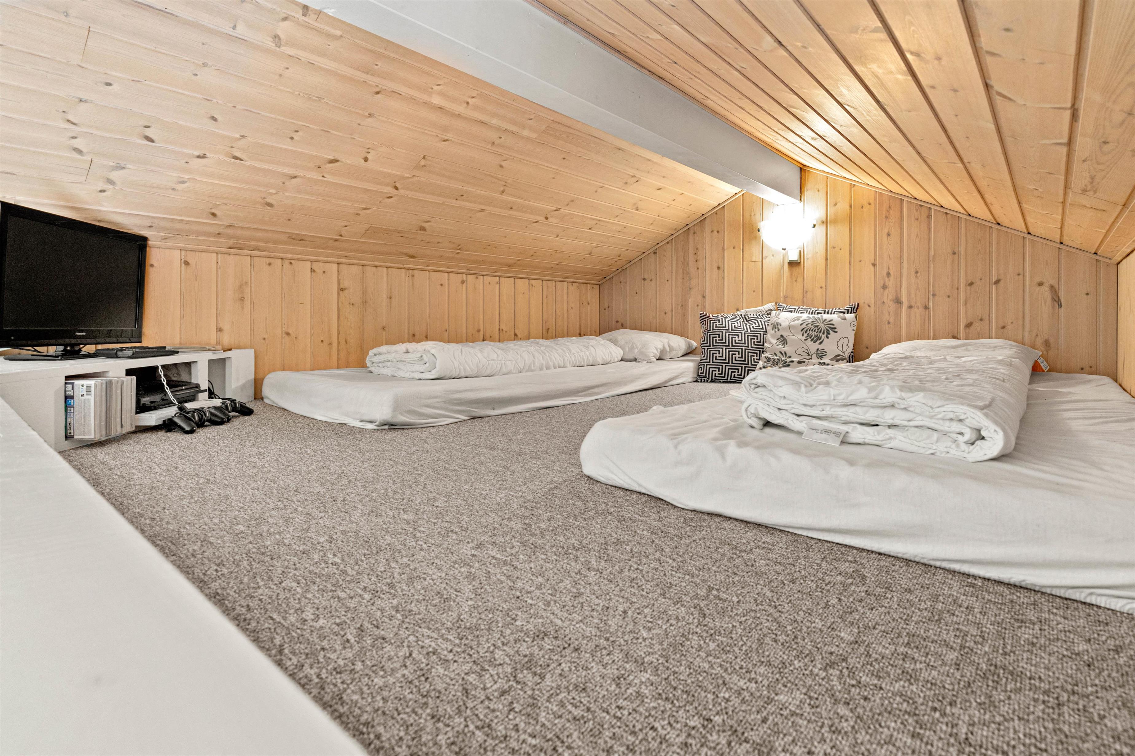 The three bedrooms provide peaceful night-time rest, while children will love exploring the loft space, equipped with mattresses and a TV - perfect not just for sleeping but also for reading and playing. The open-plan living area is pleasantly bright, welcoming and Danish hygge-style: the comfortable sofa group in front of the cosy wood-burning stove invites you to enjoy a relaxing afternoon with a good book and hot tea, or an evening film with a glass of wine.