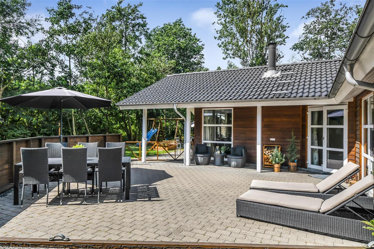 Located at Vestervang 45 in Houstrup, this truly charming modern wooden holiday home is the perfect destination for families and their dogs. The outdoor area is a paradise: the terrace can be enclosed, and the lawn features a football goal, sandbox, swing and slide. Here, holidays become a pure relaxation retreat for both young and old.