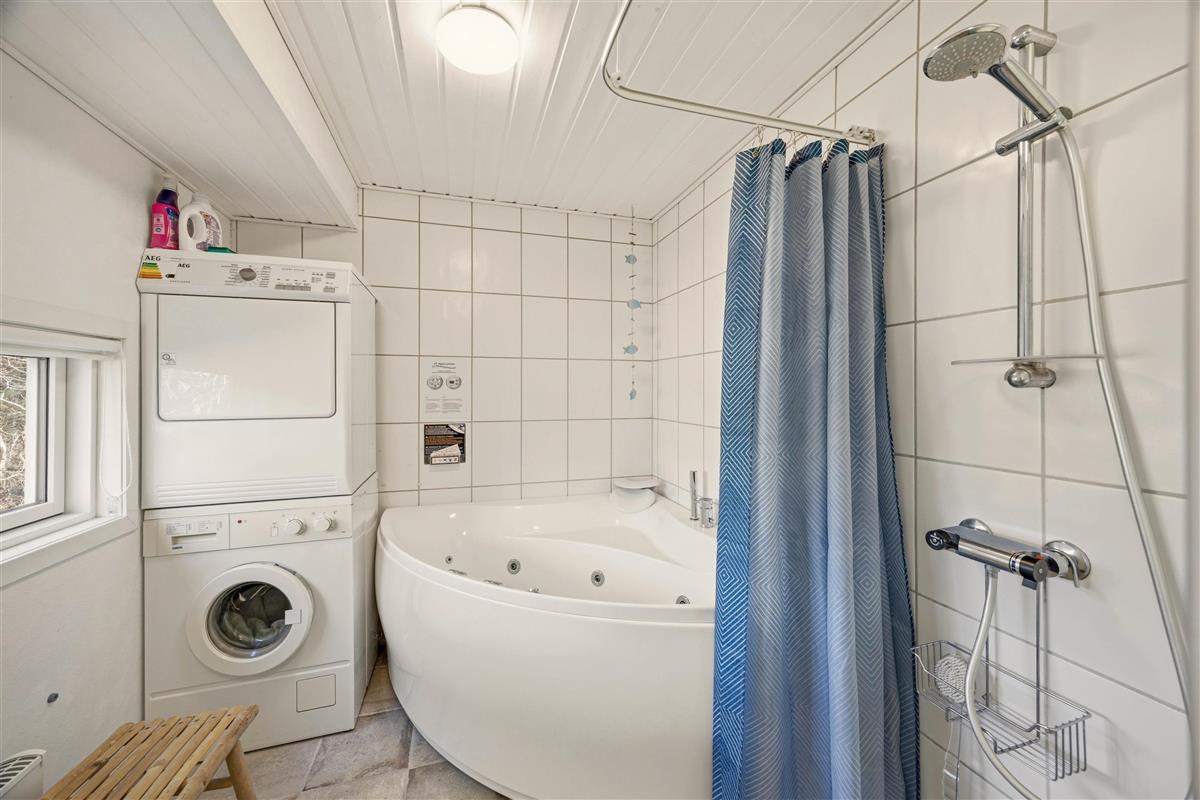 Cooking is straightforward in the kitchen, which is open to the comfortably furnished living room and comes with a dishwasher—so you have more time for yourselves. You have 1 bathroom with underfloor heating, and the 1-person hot tub turns the bathroom into a small wellness zone after an active day.