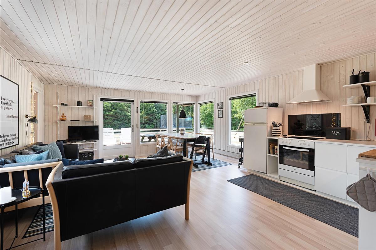 The wood-burning stove in the living room provides cosy warmth on cooler days, creating a homely atmosphere. Make yourself comfortable on the sofa while the gentle flicker of the fire sets a relaxing mood. Whether you're enjoying a good book, watching an exciting film, or simply spending time together, the living room is ideal for unwinding. The kitchen is equipped with modern appliances, including a practical dishwasher, offering everything needed to prepare delicious meals. There's plenty of space for sociable cooking evenings, making it easy to create favourite dishes with family or friends. From quick breakfasts to elaborate dinners - cooking becomes a pleasure in this kitchen.