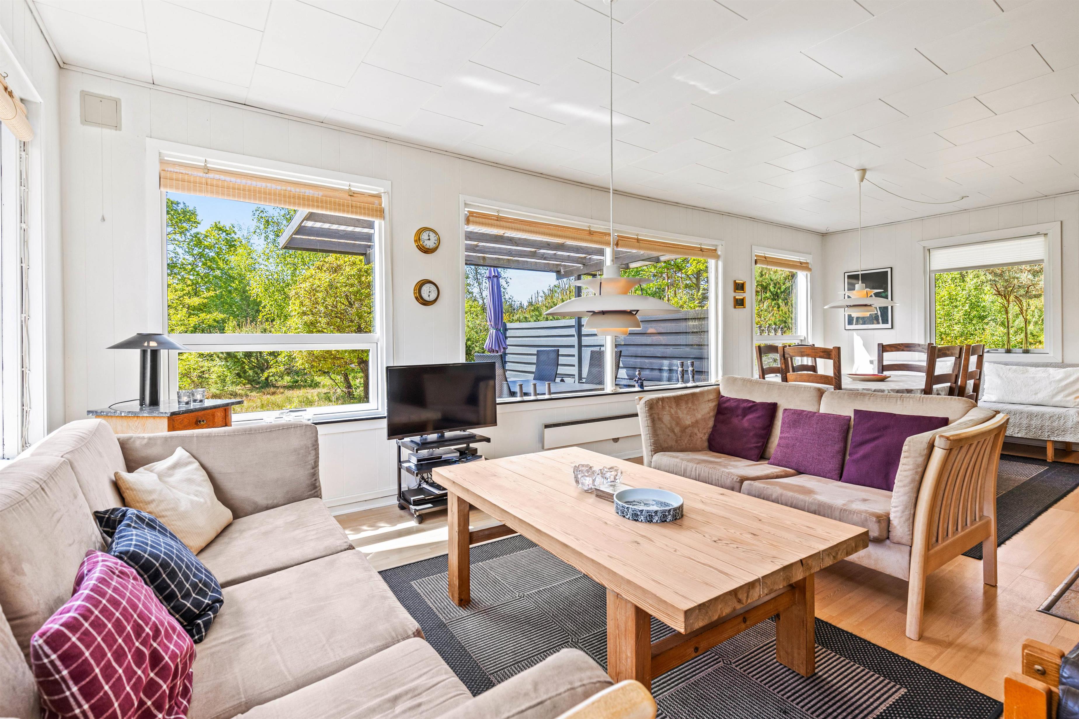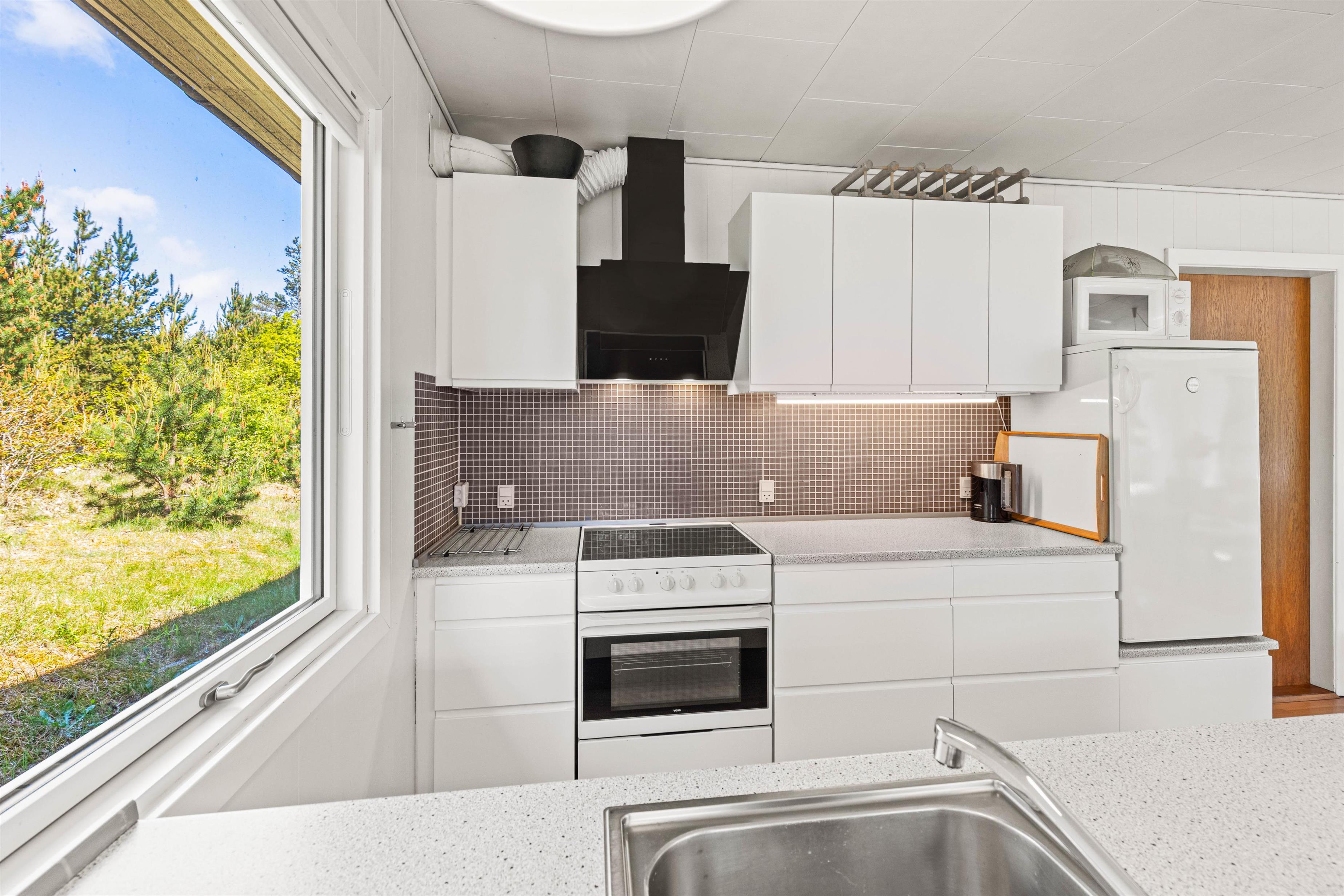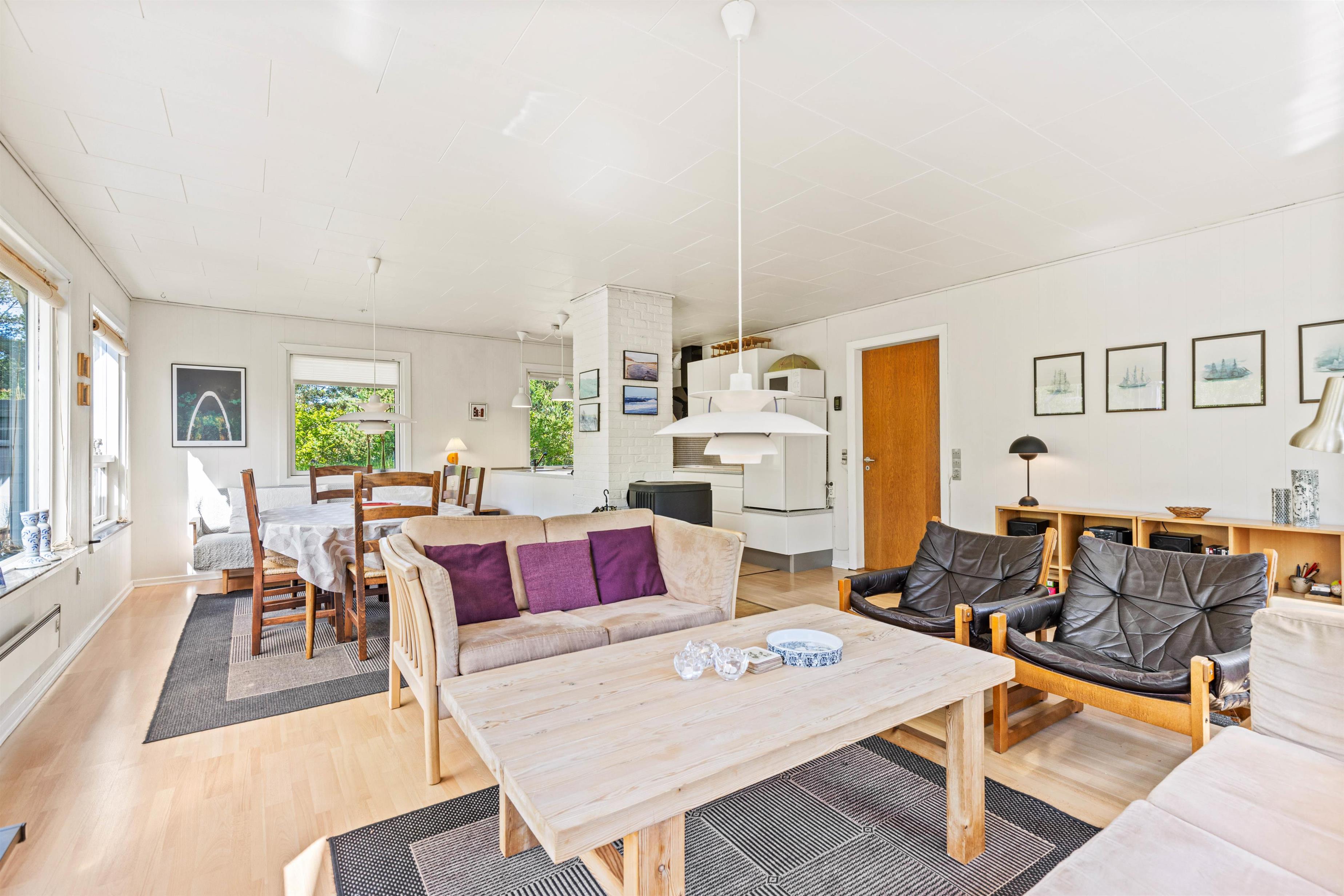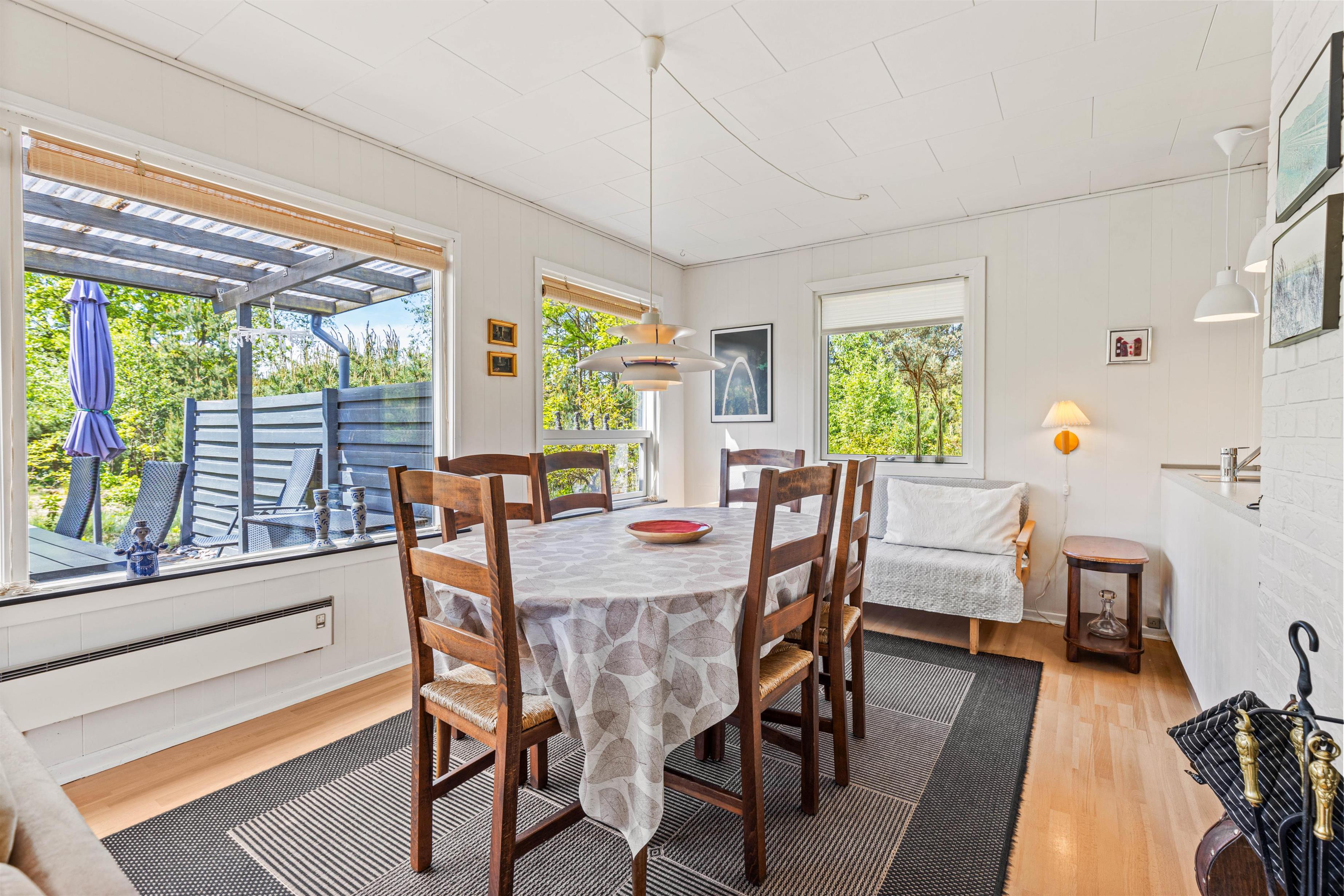 This bright and typically Danish furnished holiday home offers everything you could wish for a relaxing holiday. The large windows allow plenty of natural light to enter. The holiday home can accommodate 5 people in 3 good bedrooms. The open-plan kitchen is equipped with a microwave, fridge-freezer and electric cooker.