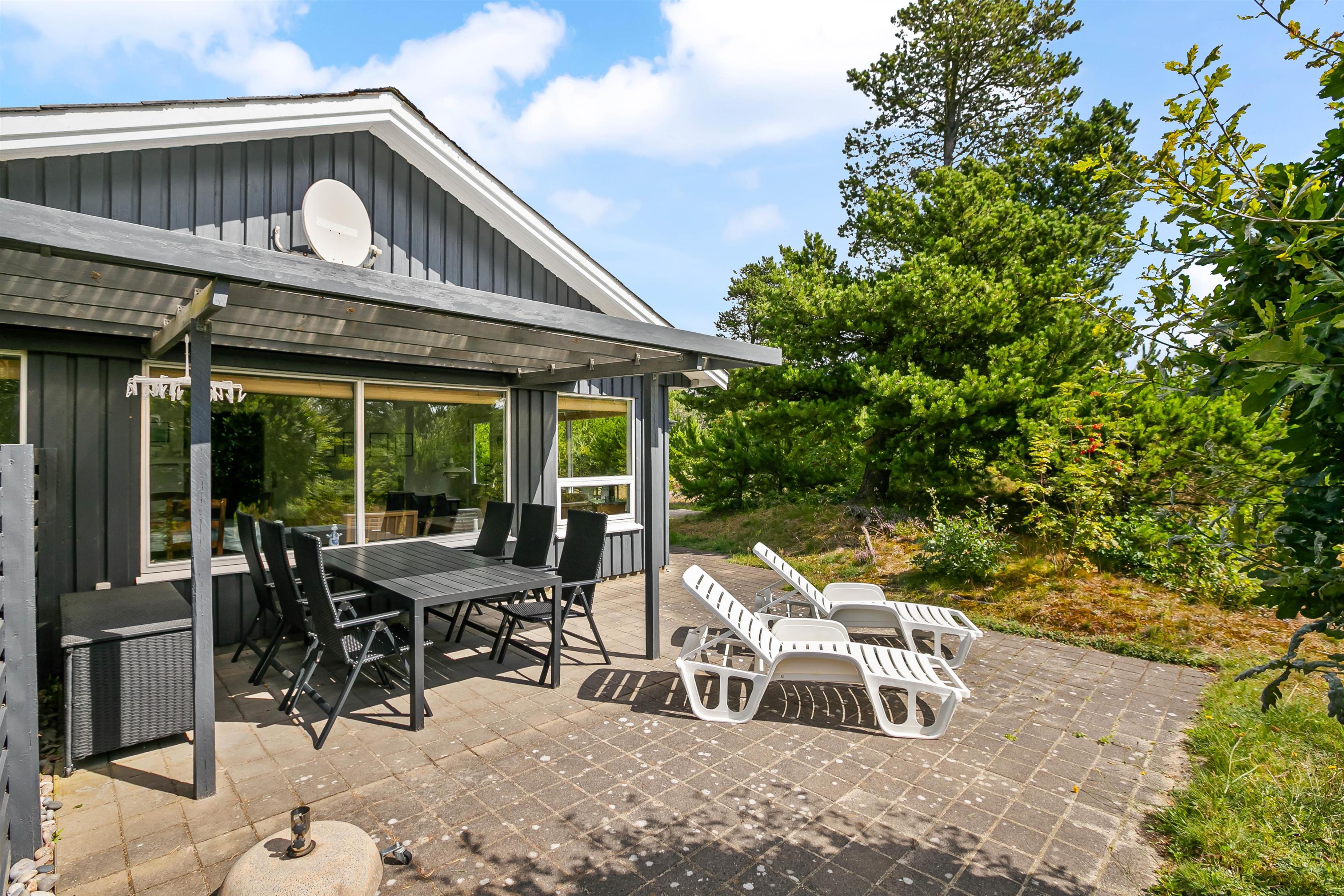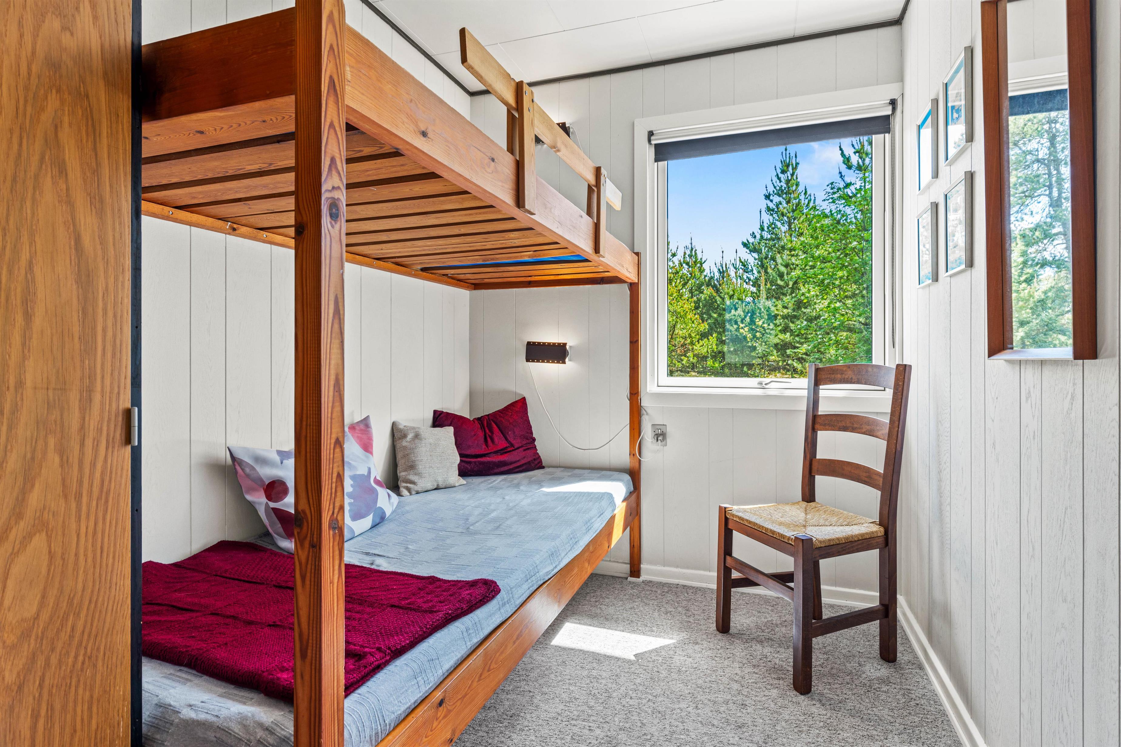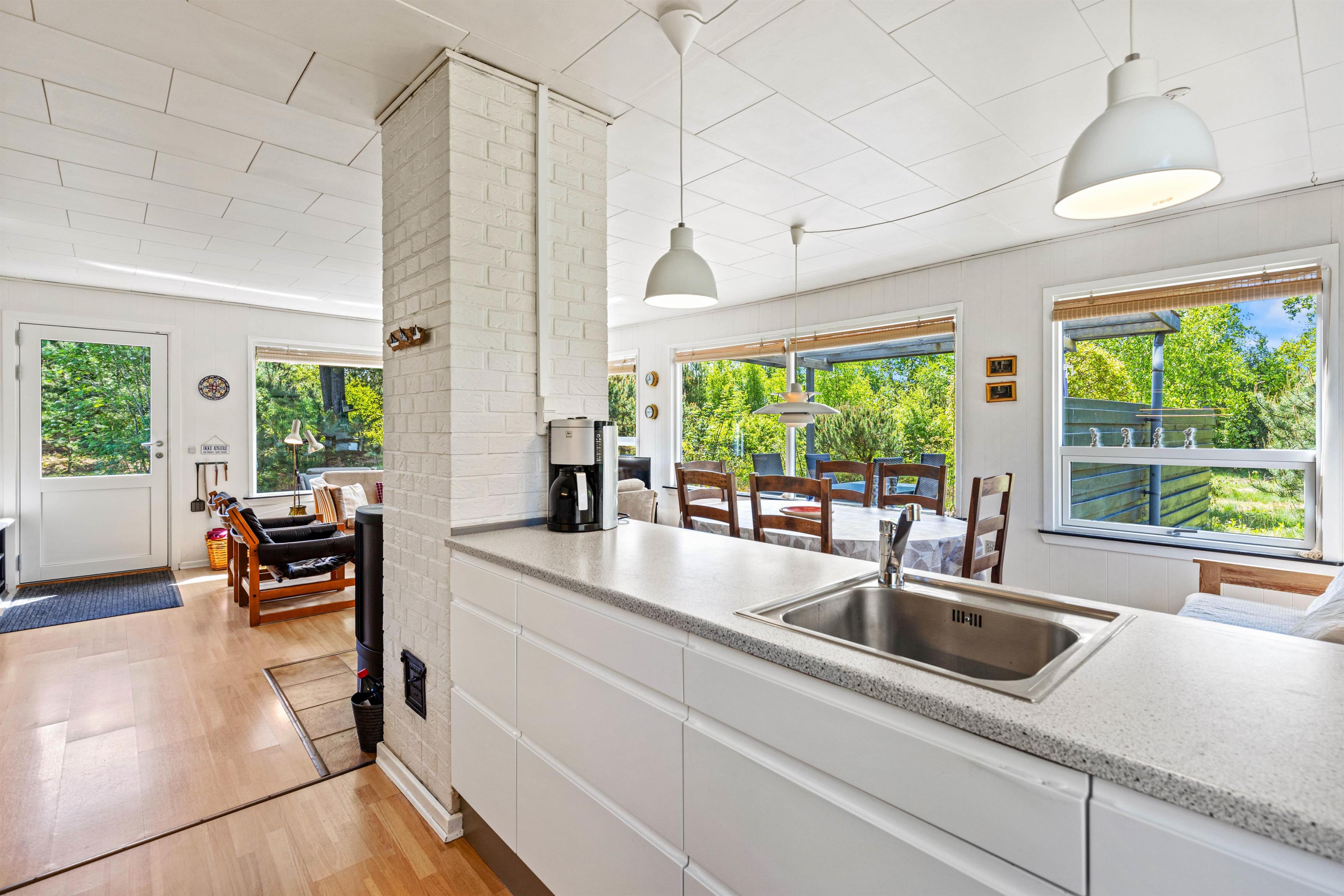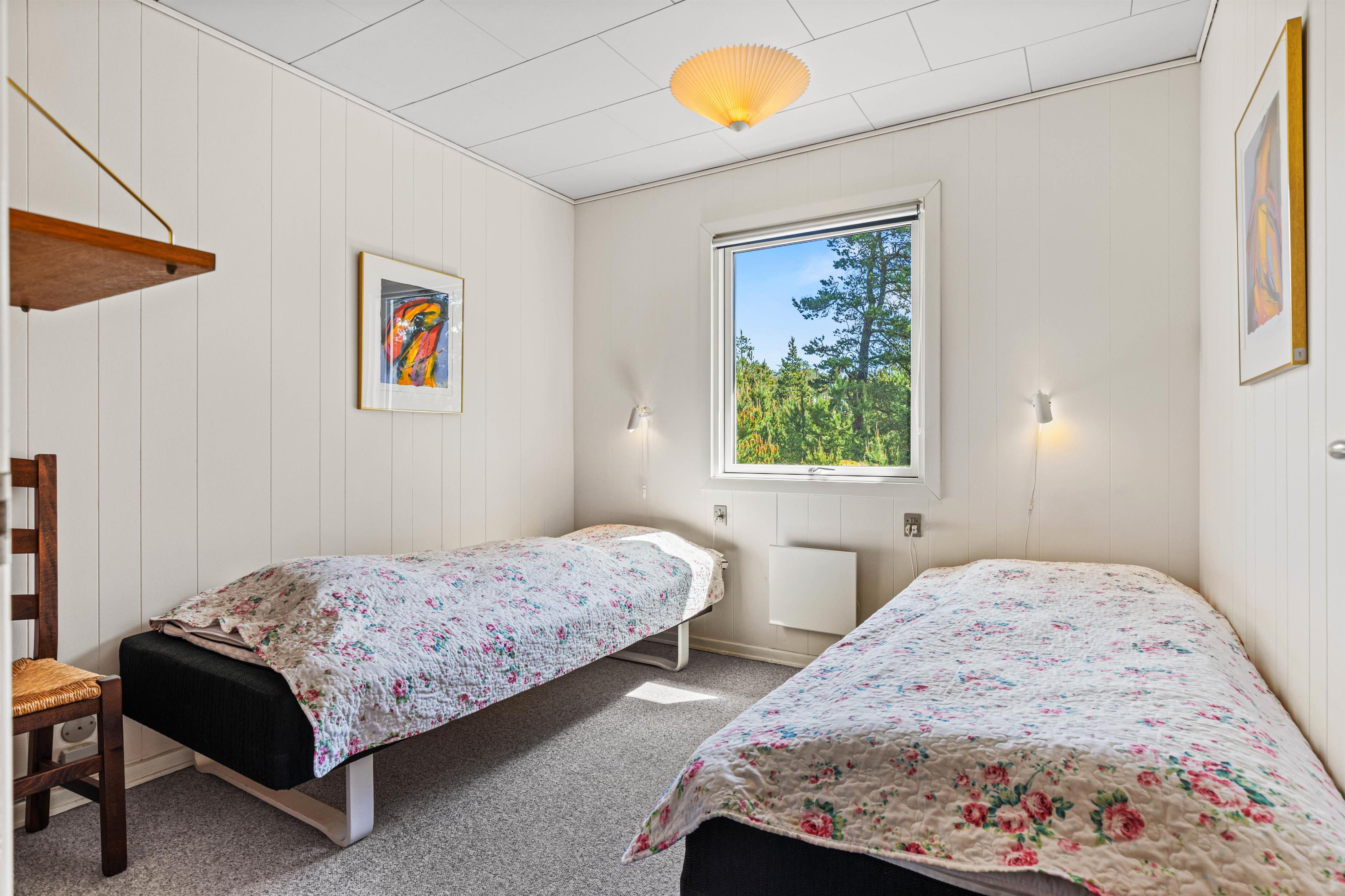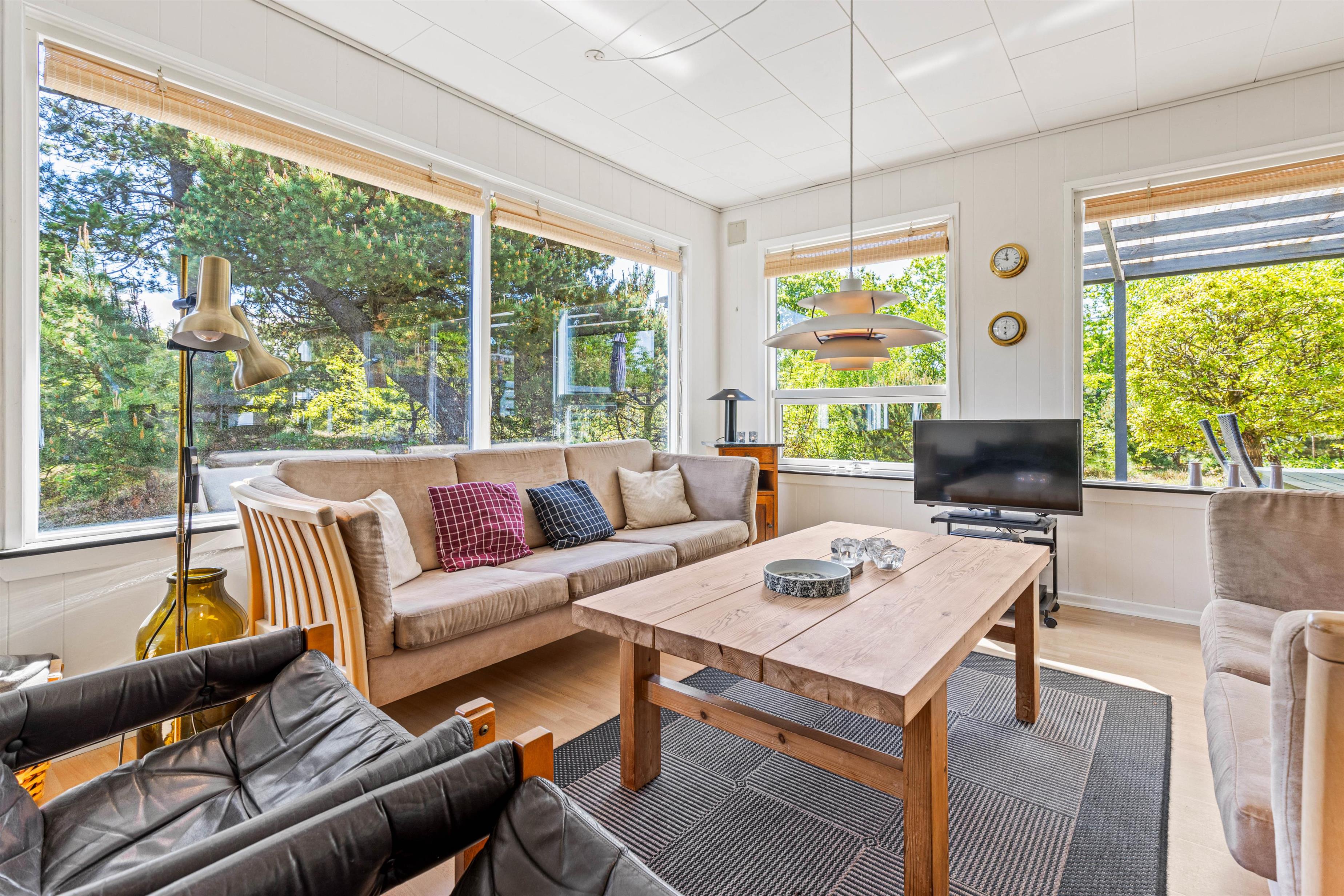 This bright and typically Danish furnished holiday home offers everything you could wish for a relaxing holiday. The large windows allow plenty of natural light to enter. The holiday home can accommodate 5 people in 3 good bedrooms. The open-plan kitchen is equipped with a microwave, fridge-freezer and electric cooker.