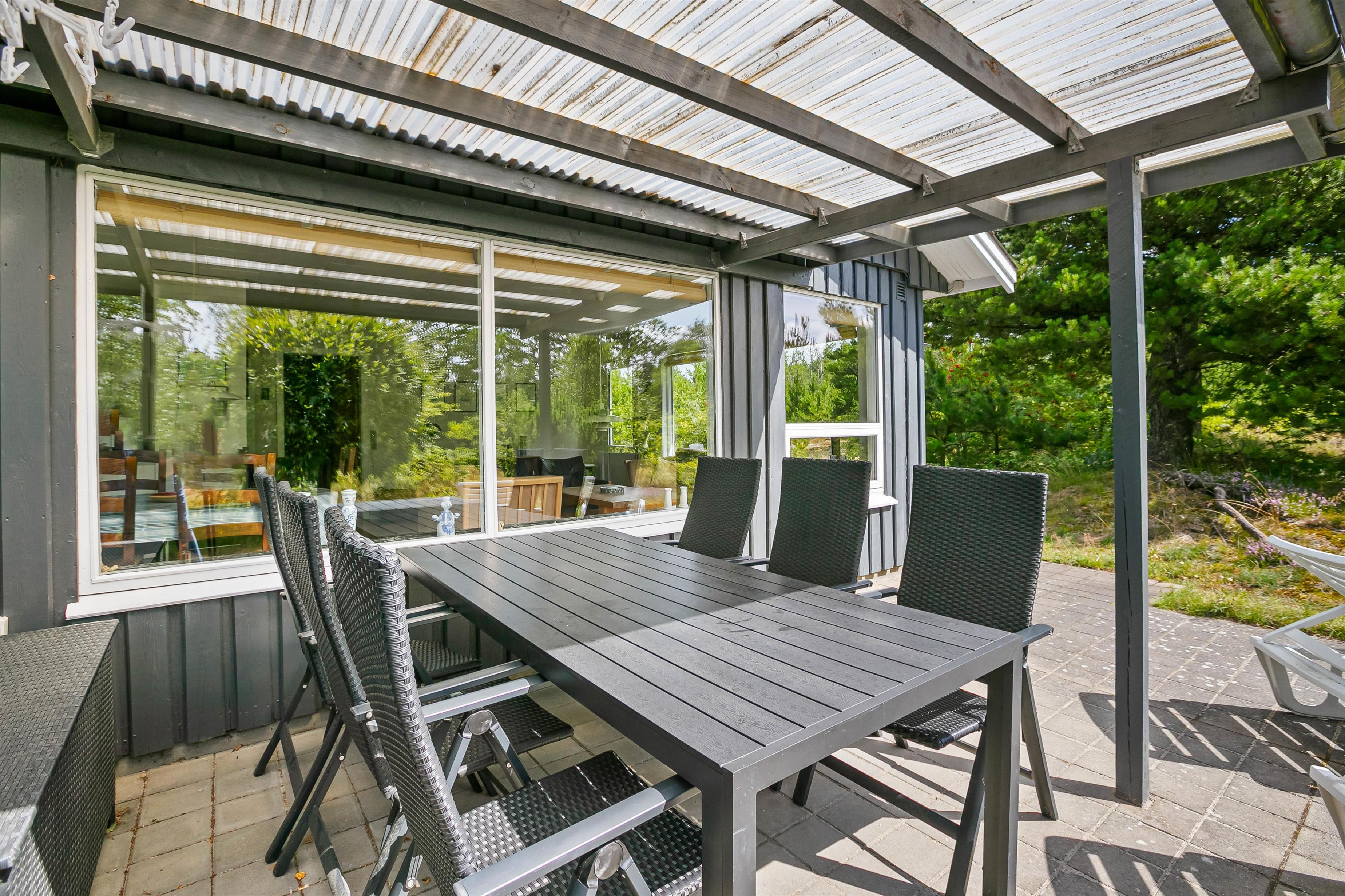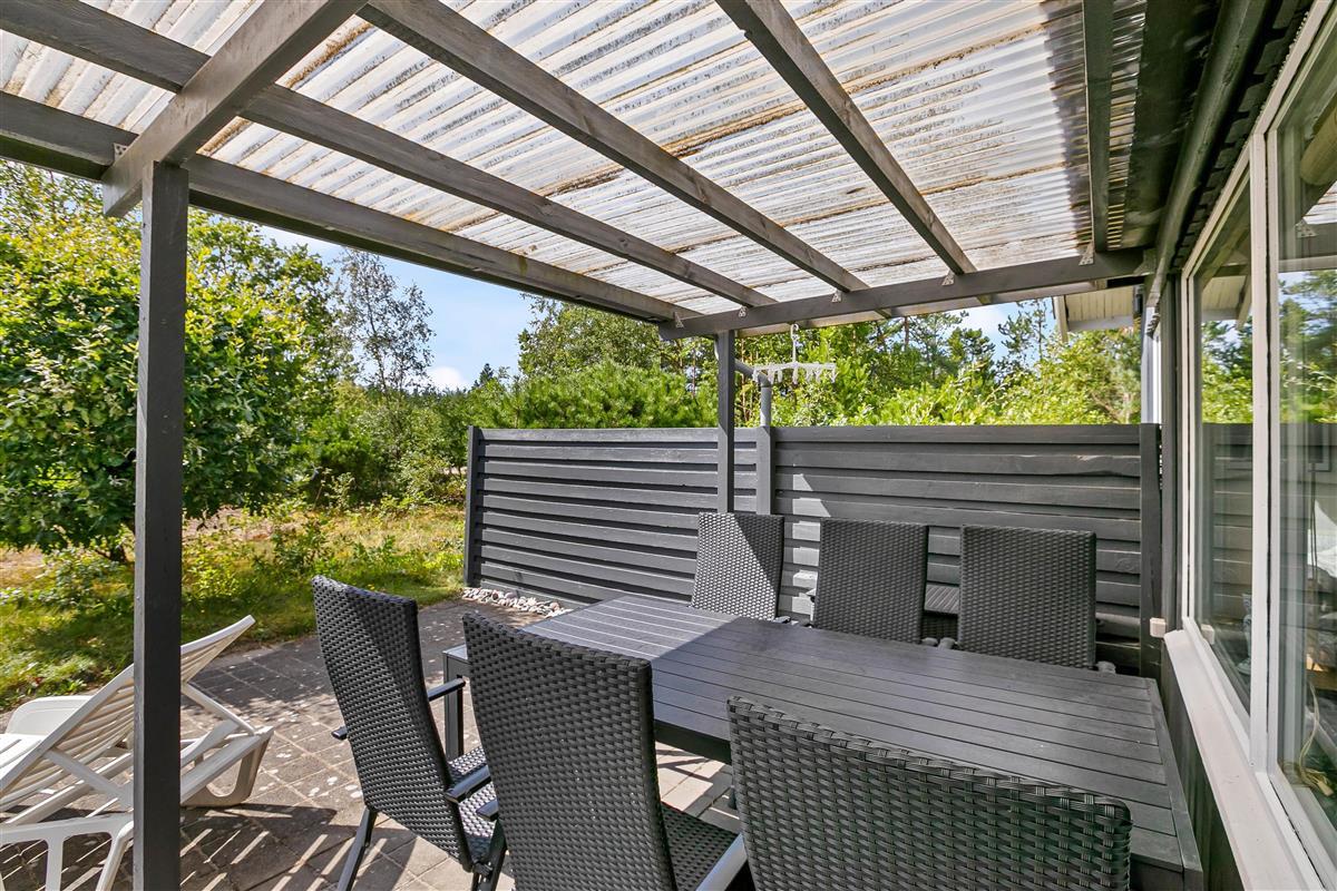 The open and partially covered terrace area invites you to linger and relax. Here you can watch the sun rise behind the tall trees in the morning while enjoying a delicious breakfast on the terrace, and in the evening you can have a cosy barbecue and end the day with the last rays of sunshine.