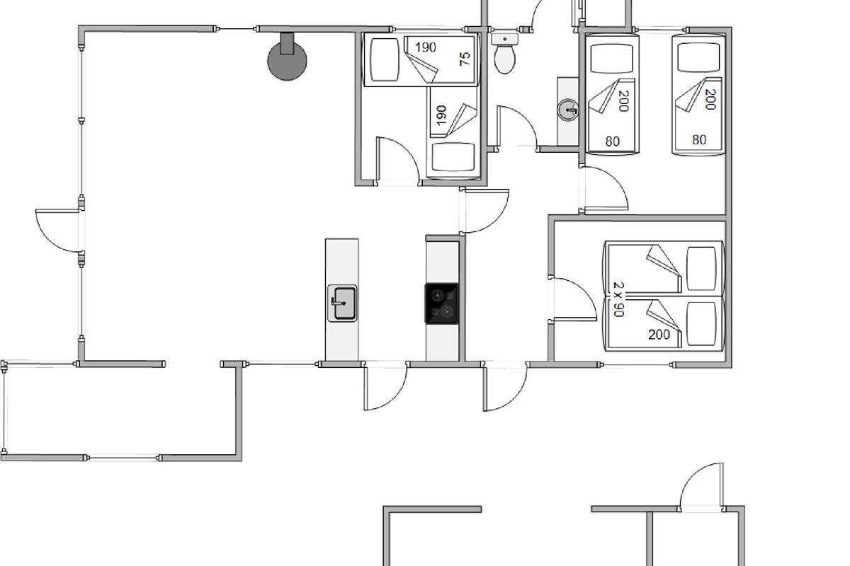 The living space with its open-plan kitchen forms the heart of this welcoming home. The wood-burning stove provides comforting warmth and creates the perfect setting for cosy evenings. Here you can relax, read, or simply enjoy time together. The kitchen is equipped with everything needed to prepare delicious meals, featuring an induction hob and dishwasher to make cleaning up effortless, leaving you more precious holiday time. The open-plan kitchen layout allows you to stay connected with everyone while cooking and create culinary delights together.