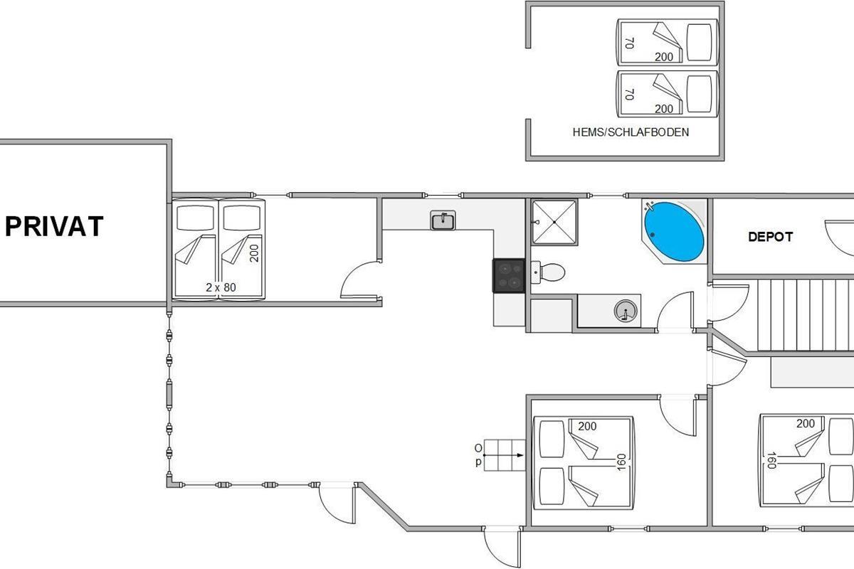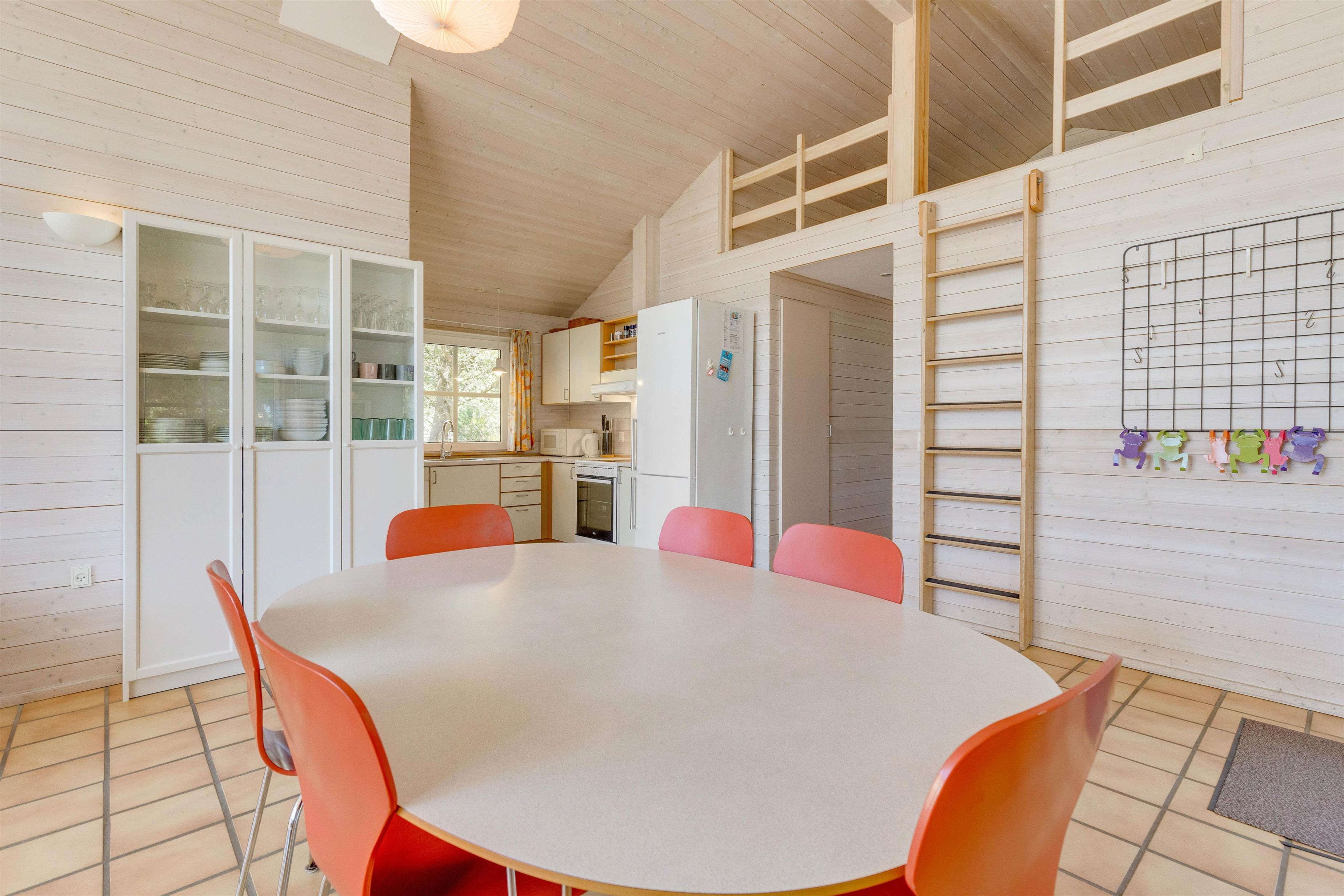 This wonderful holiday home accommodates up to 6 people. In addition to two bedrooms and a children's room with 3 beds, there's also a mezzanine - an open-plan loft area above the living space that children will particularly enjoy sleeping in.