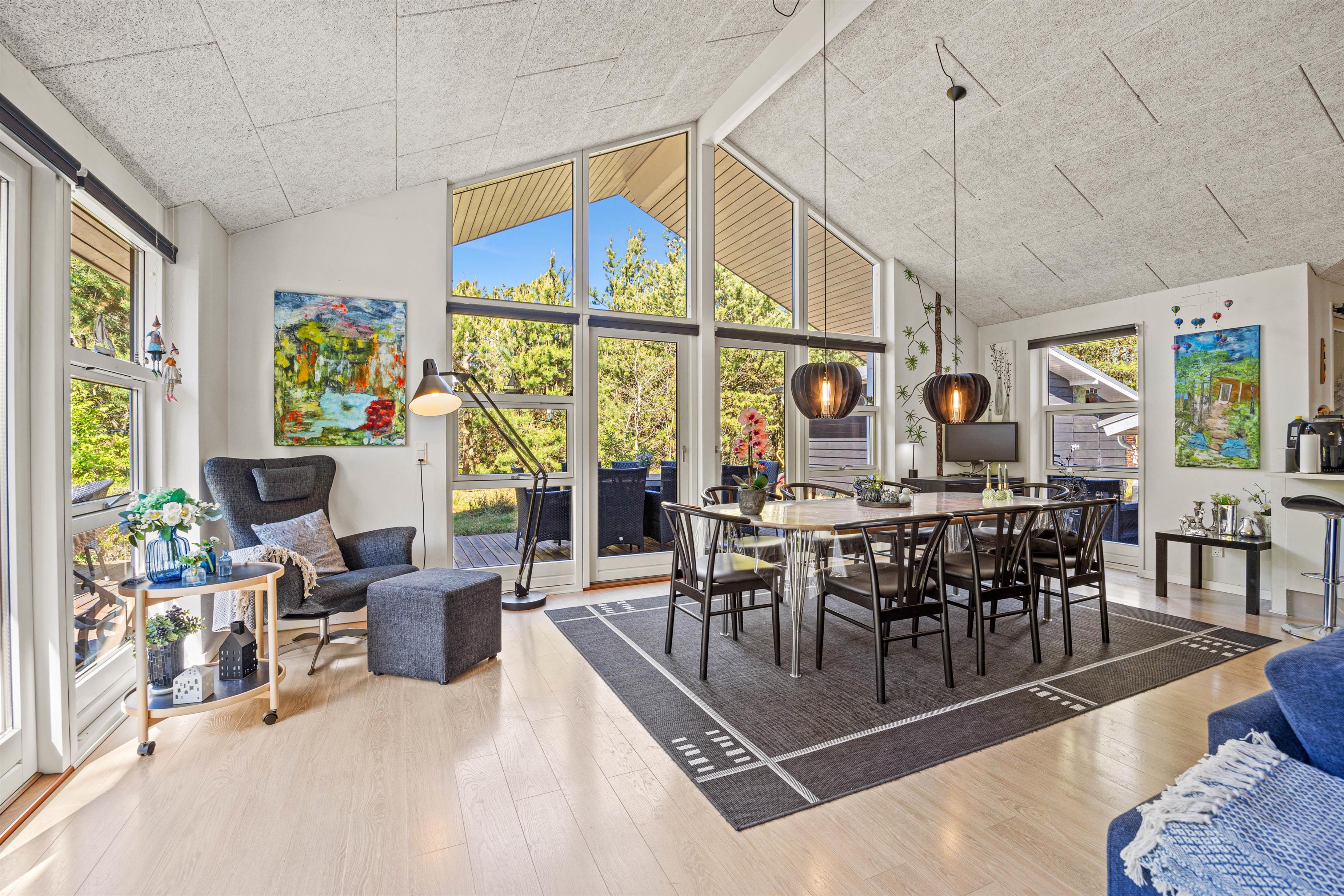 The house is surrounded by tall trees, offering privacy and the peaceful sound of birdsong. Dogs are welcome, and Houstrup's woodland paths provide perfect routes for daily walks.