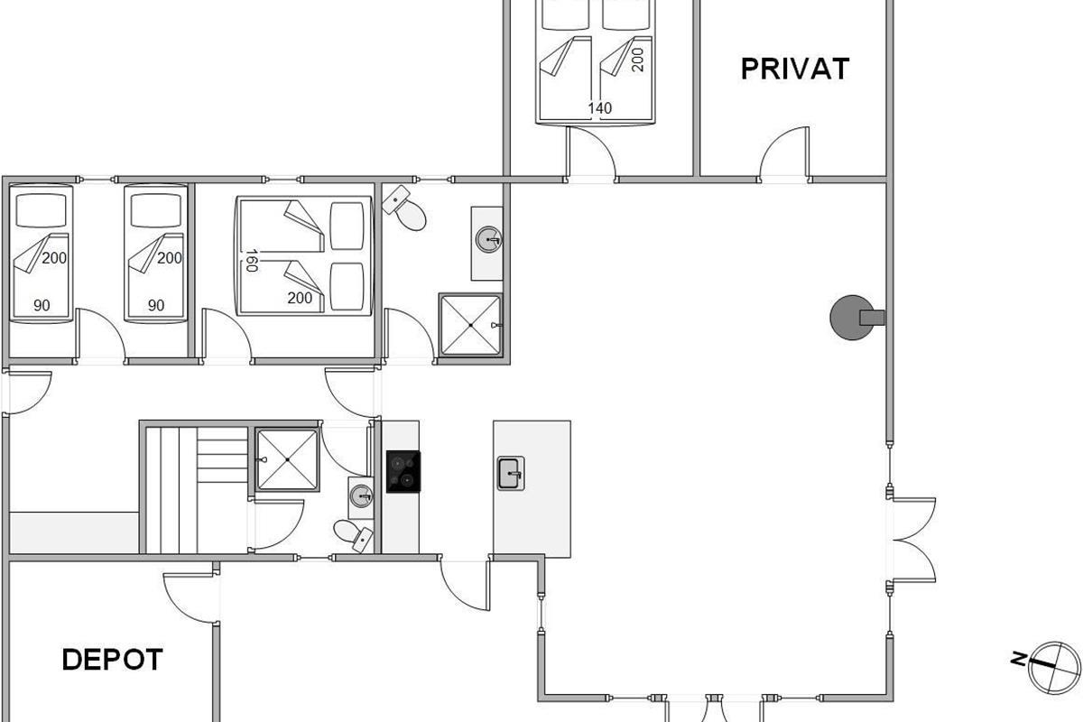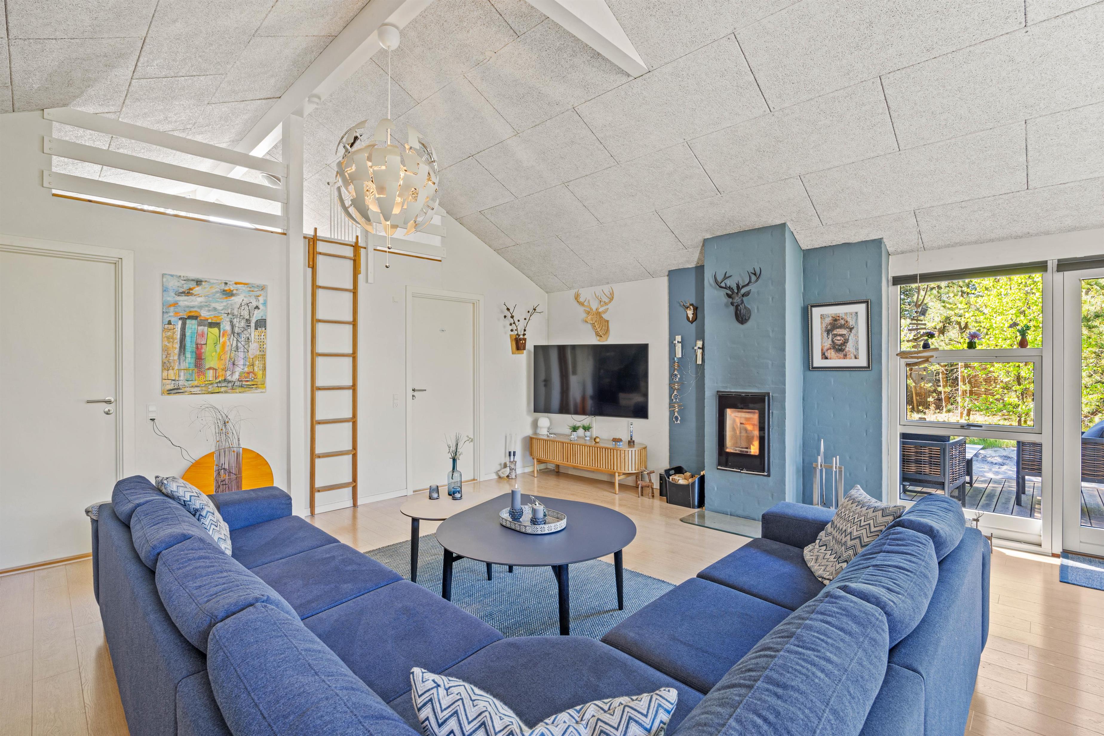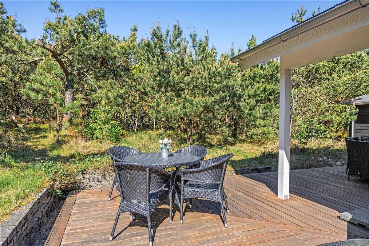 This modern holiday home, nestled in the natural surroundings of Houstrup, leaves nothing to be desired. Start your day on the expansive terrace, putting your feet up on the sun loungers and letting the sun's rays warm you. In the evening, use the terrace for a family barbecue and reflect on the day's activities over a nice steak.