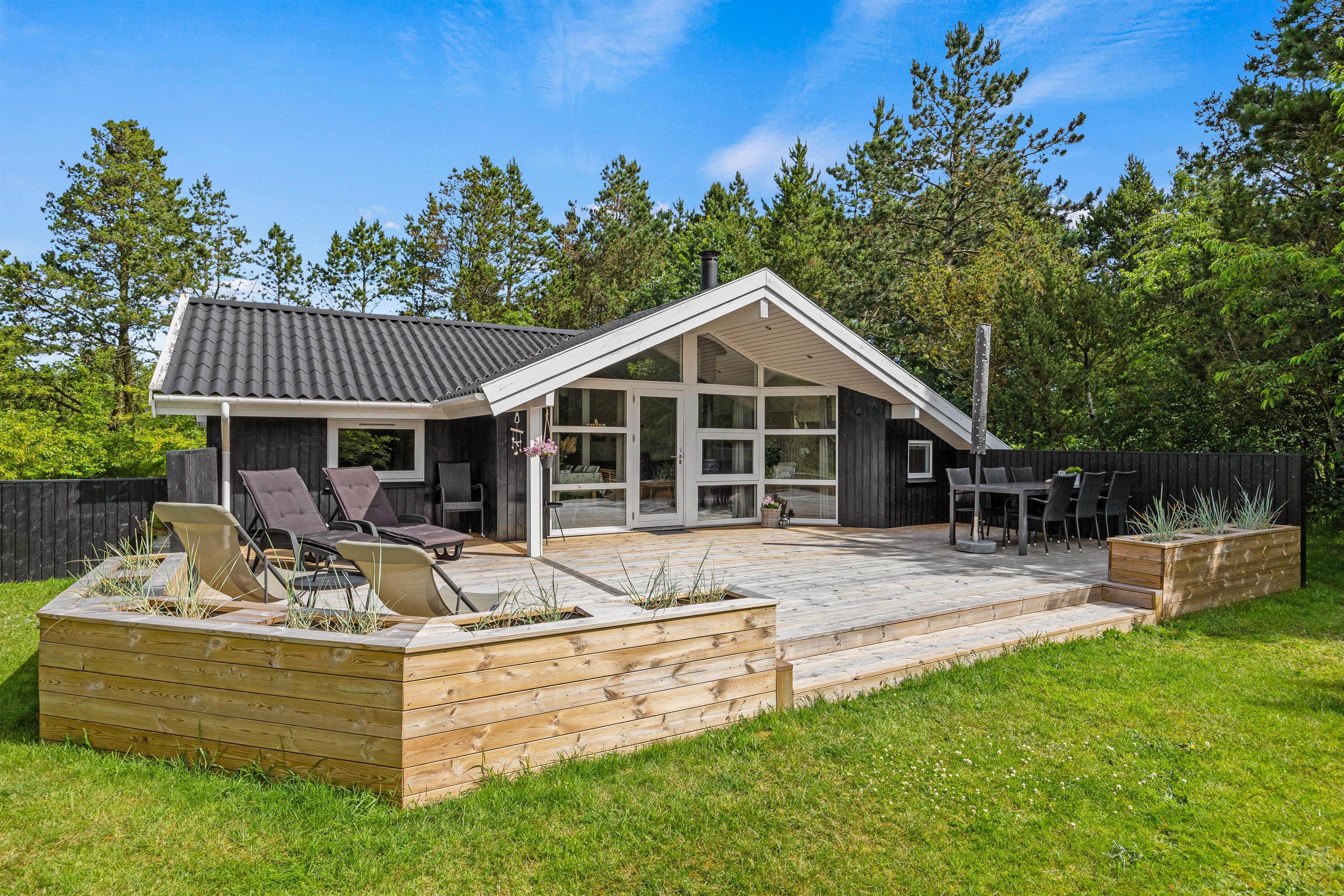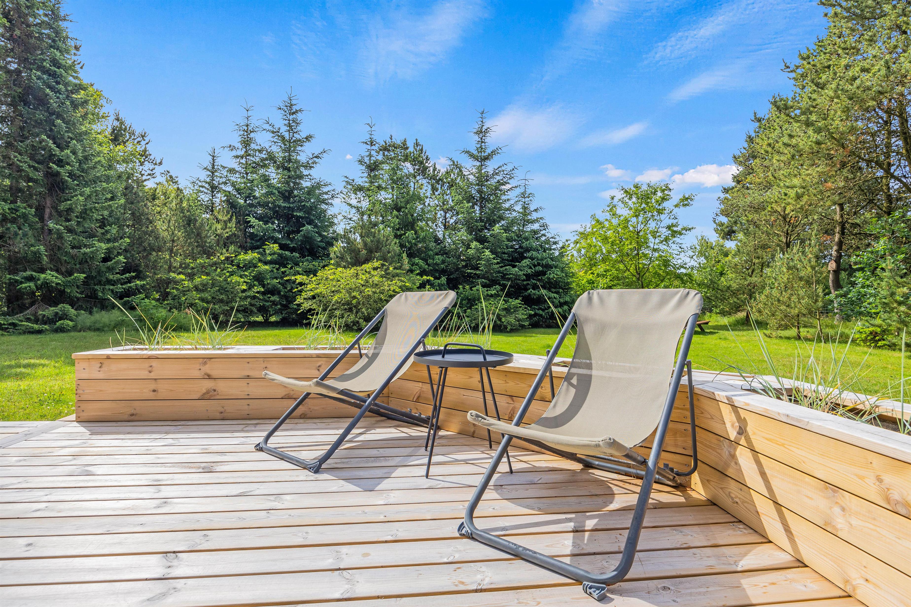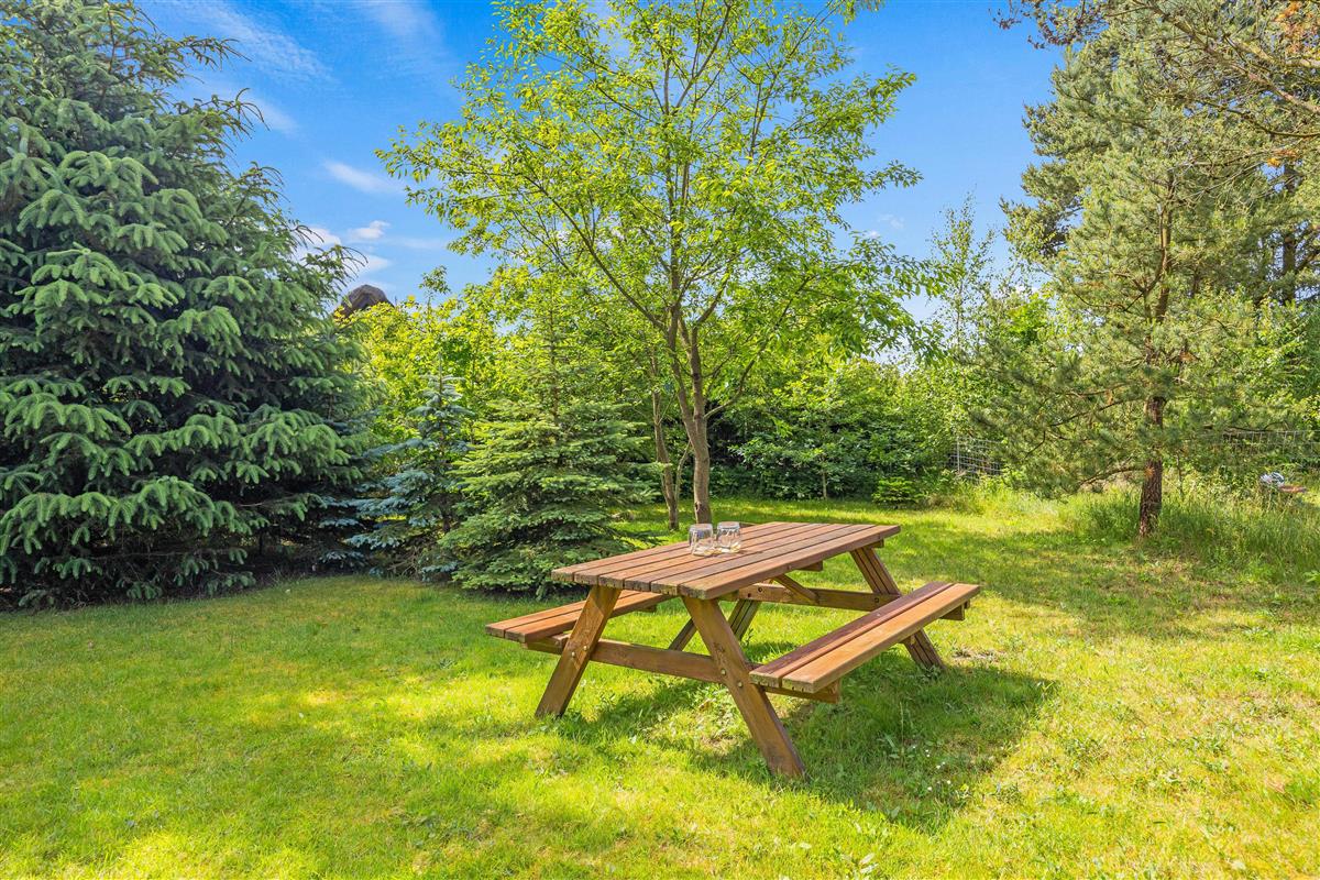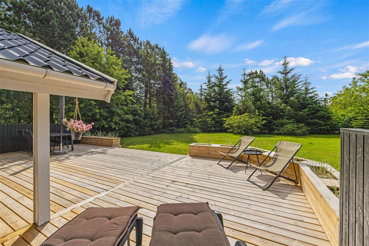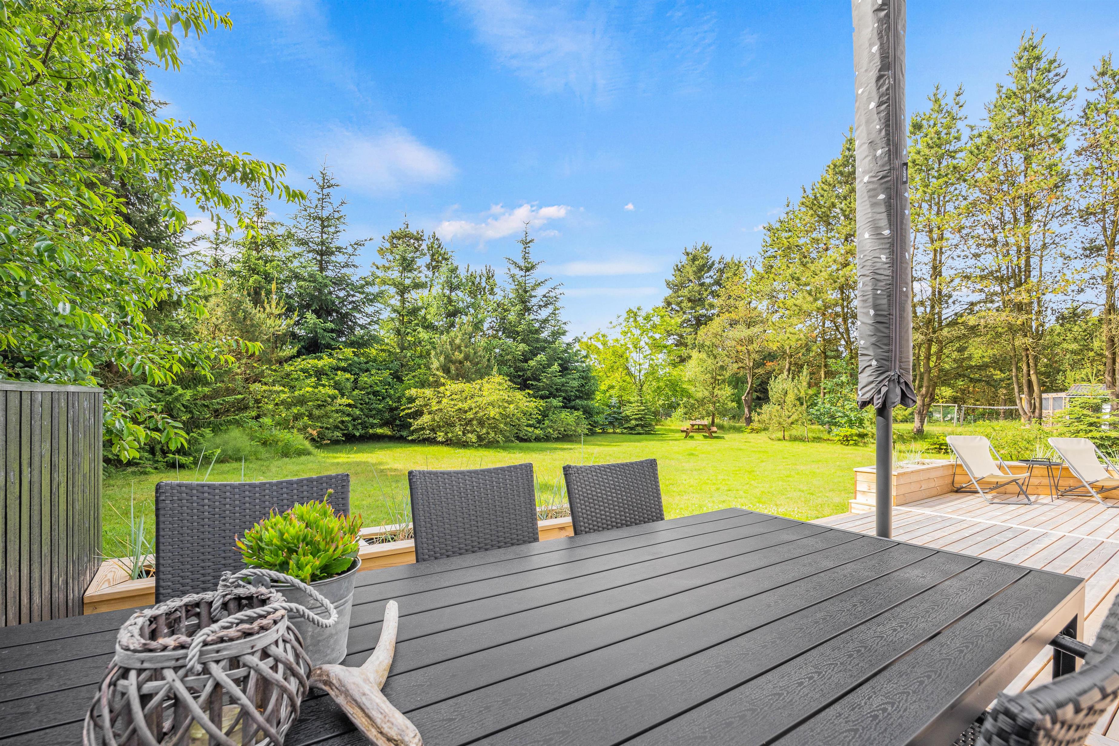 The outdoor area at Hans Hansensvej 106 is a true holiday paradise. The spacious terrace is a real highlight – featuring open, covered and sheltered areas perfect for relaxing outdoors. Whether for cosy barbecue evenings or peaceful moments in nature, everyone can find their perfect spot.