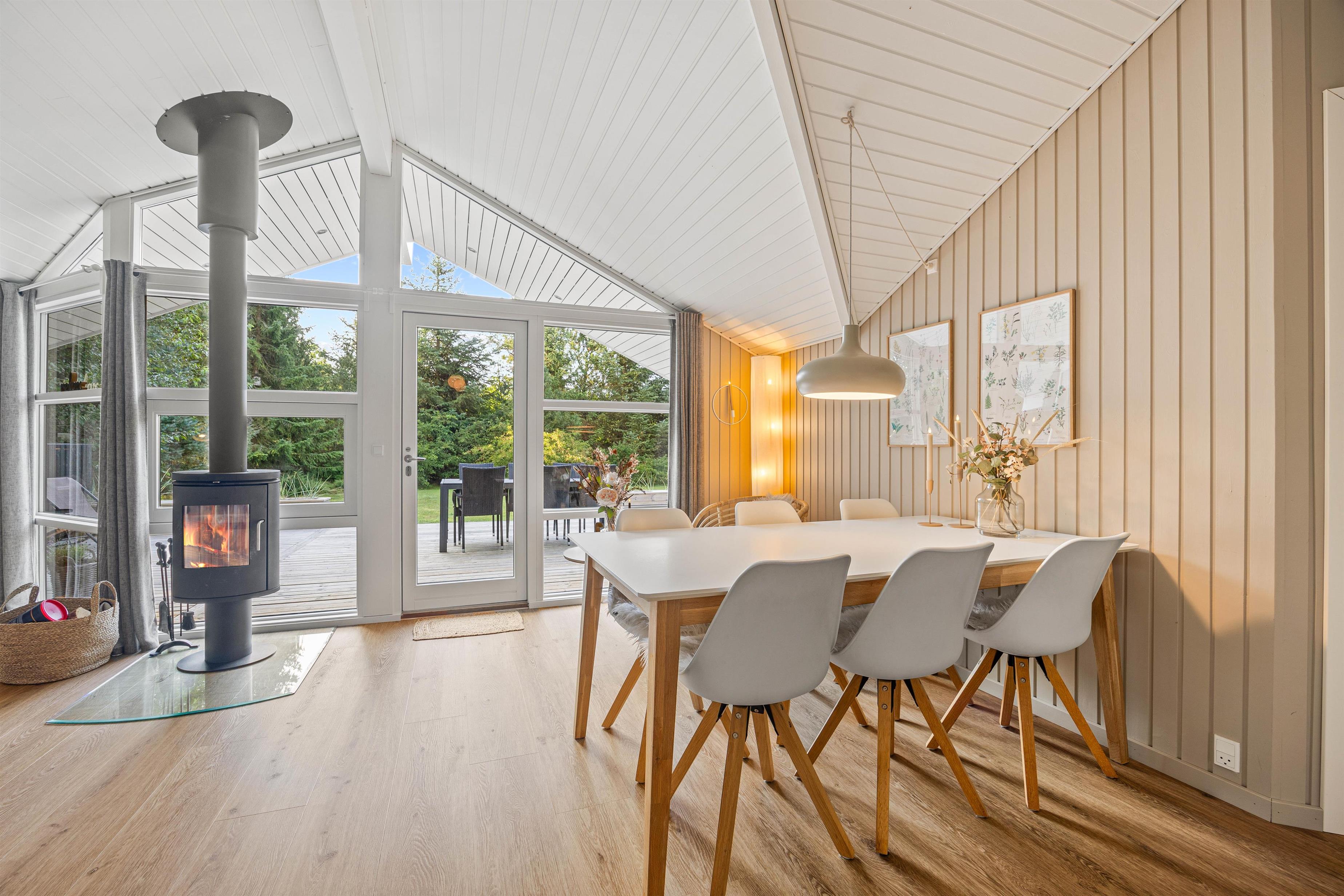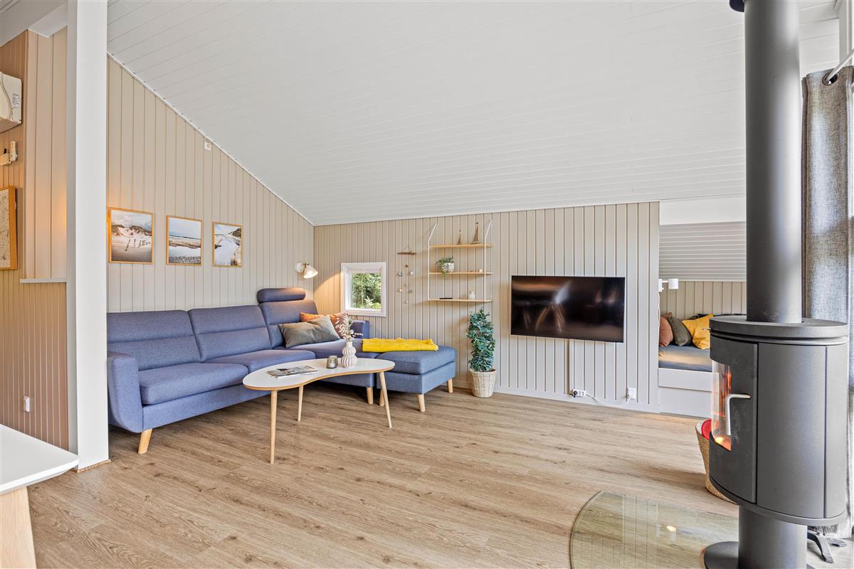 The cosy living room, equipped with a wood-burning stove and Apple TV, is perfect for relaxing. The snug corner is especially ideal for creating those hygge moments. The open-plan kitchen, complete with dishwasher, meets all your needs and makes preparing delicious meals a pleasure.