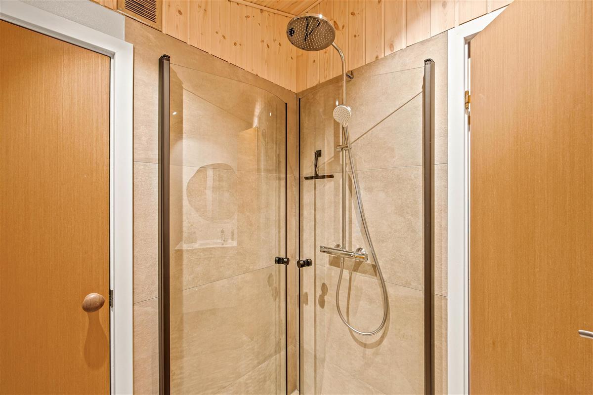 From this central living space, you'll find the bedrooms, which offer two double beds and a bunk bed for a restful night's sleep. Catch up on your rest and recharge your batteries! The evening is particularly pleasant after enjoying the sauna. The daylight bathroom with underfloor heating adds extra comfort to your stay.