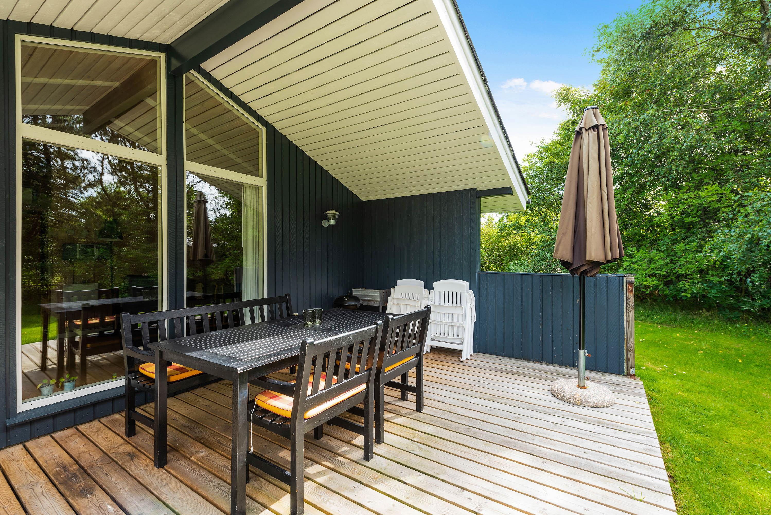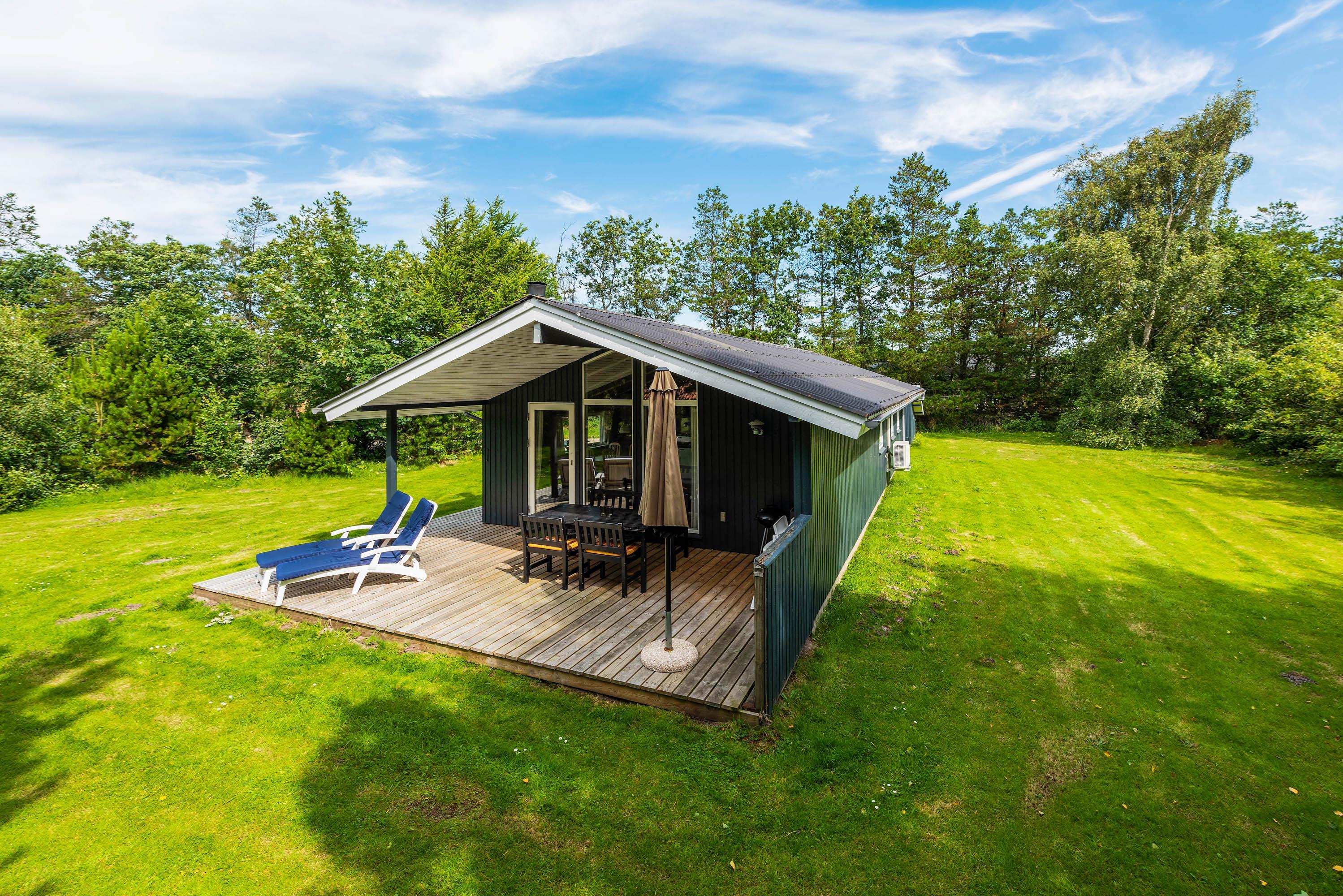 The private wooden terrace and 2,200-square-metre grounds at Hedevang 77 offer endless possibilities for outdoor relaxation - whether dining al fresco, sunbathing, reading or playing games.