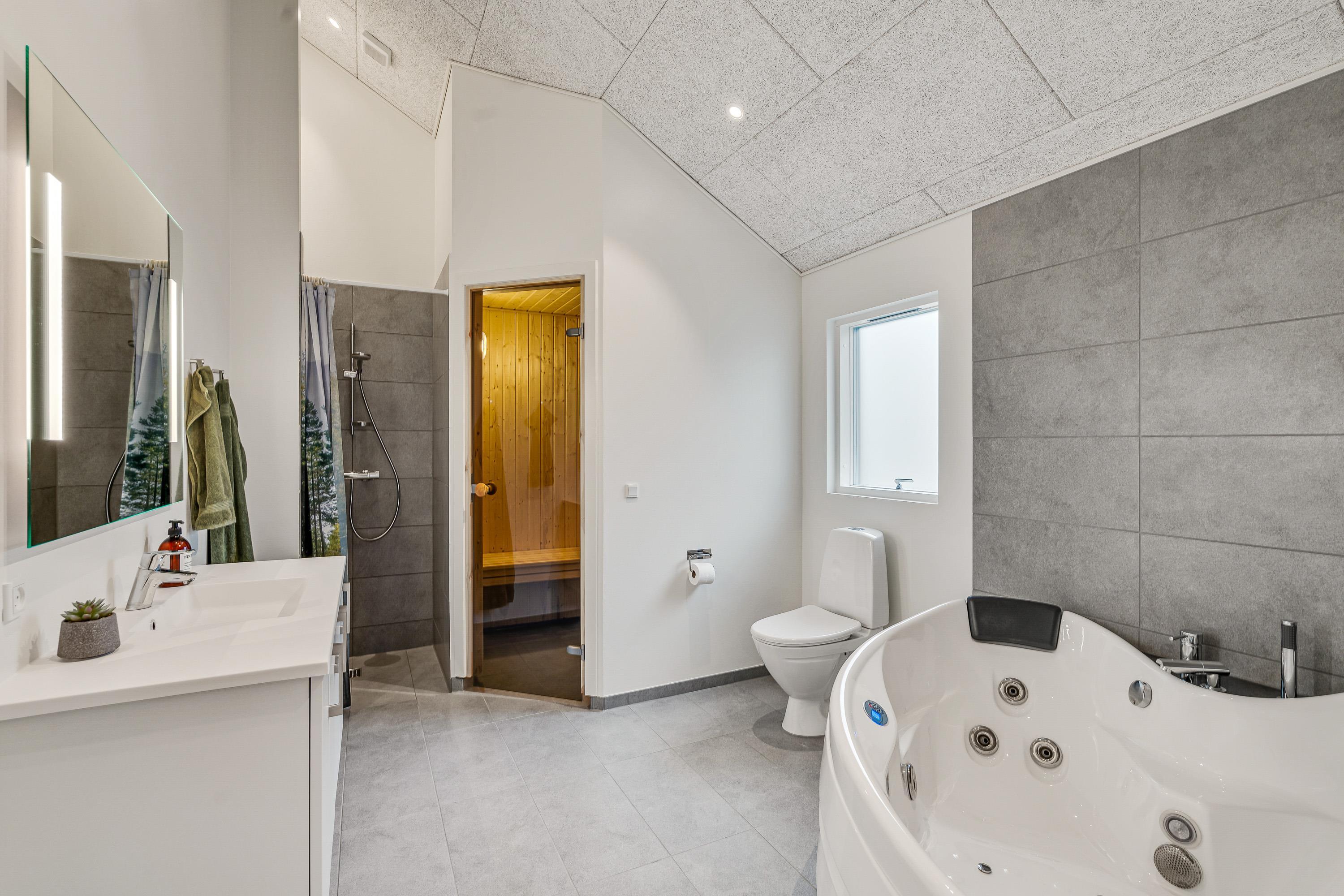 Another highlight of this Houstrup holiday home is found in the larger of the two bathrooms. Here you can enjoy a wellness experience with both a whirlpool and sauna, perfect for relaxation. Both bathrooms feature underfloor heating.