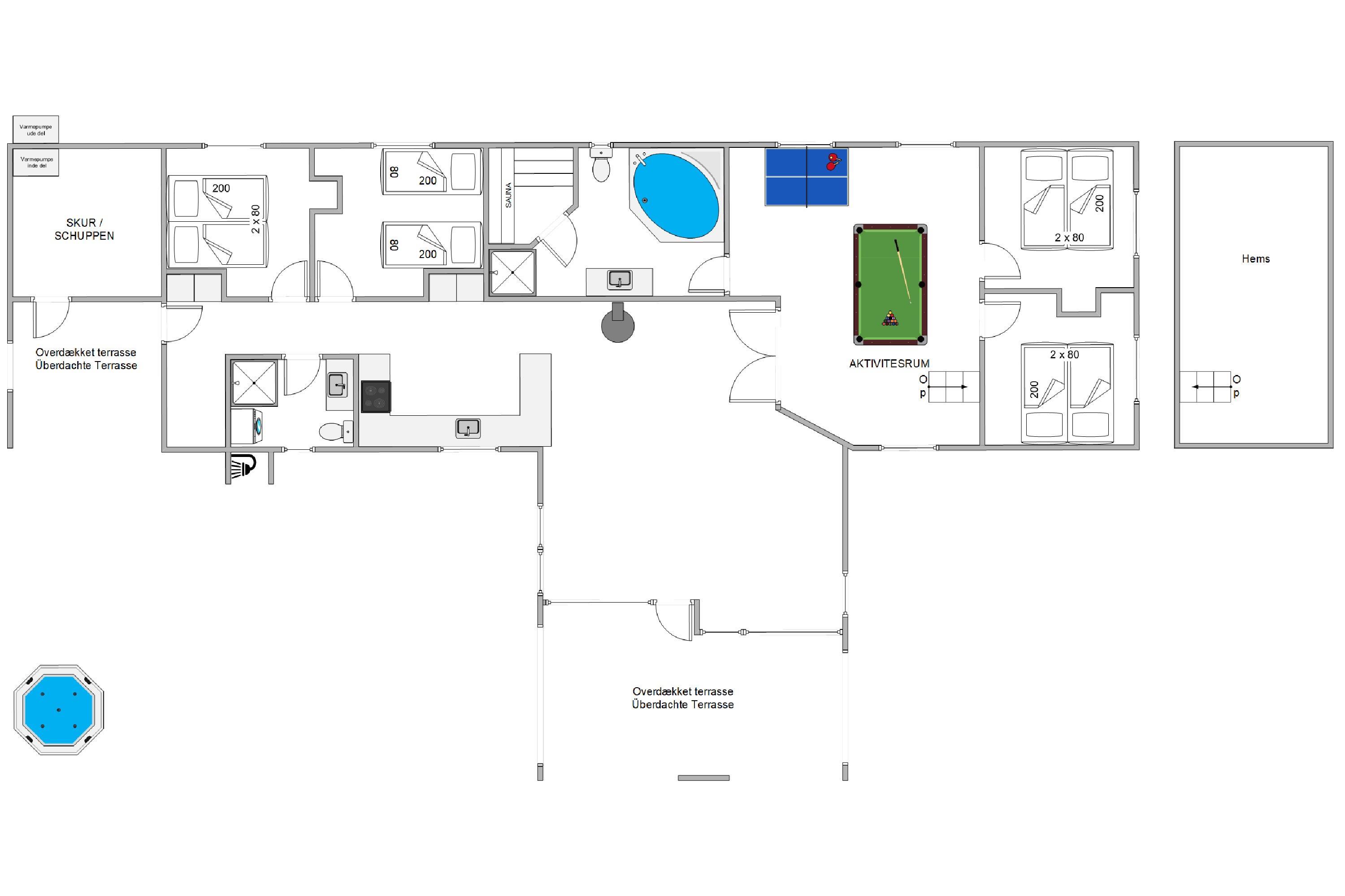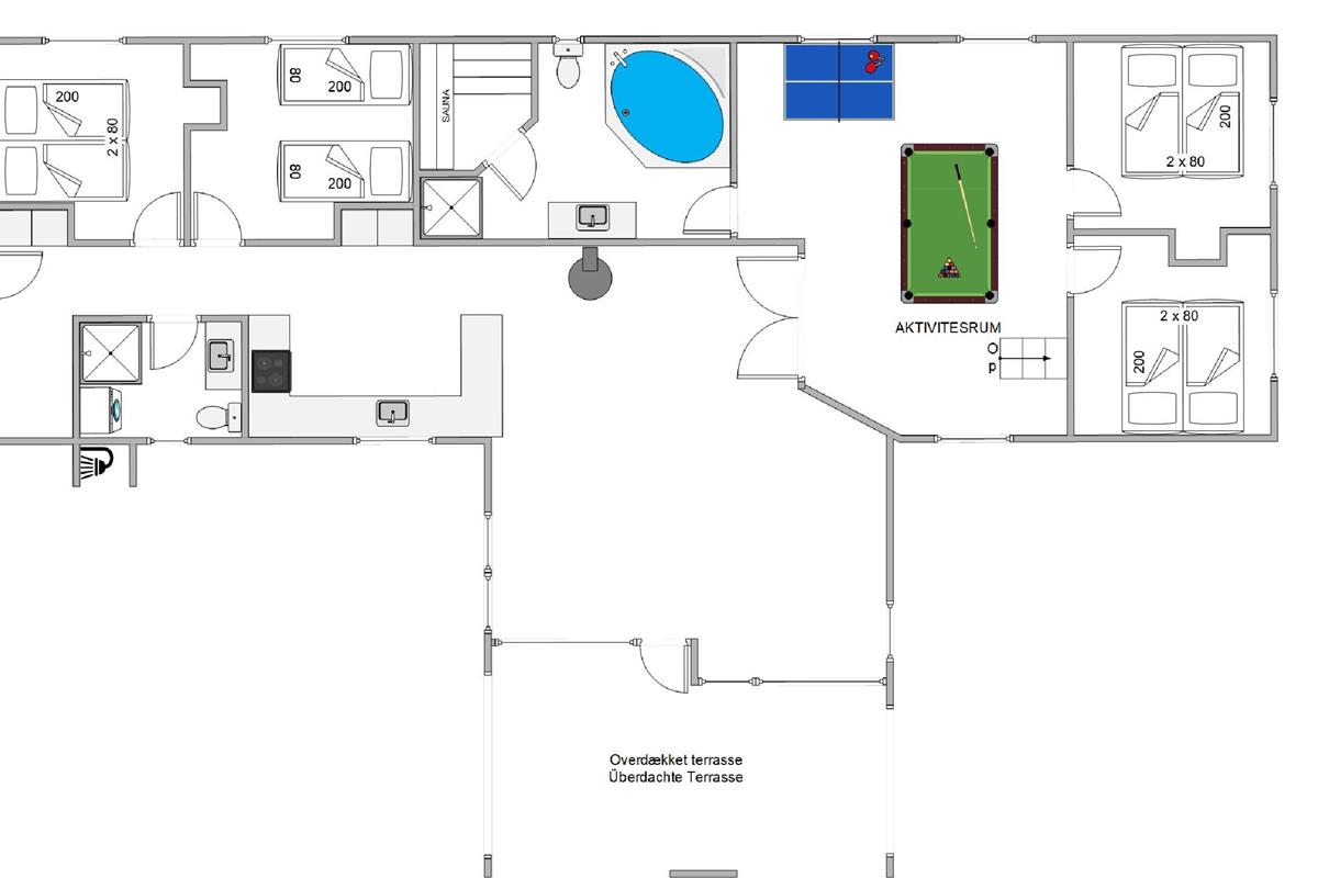 This exceptional luxury holiday home in beautiful Houstrup is perfect for those seeking a holiday combining activities, relaxation and picturesque surroundings. Built in 2022, this holiday home at Skovvang 19 features a games room with billiards, table football and table tennis. The 140-square-metre living space comfortably accommodates up to 8 people. An electric car charging point is available on-site.