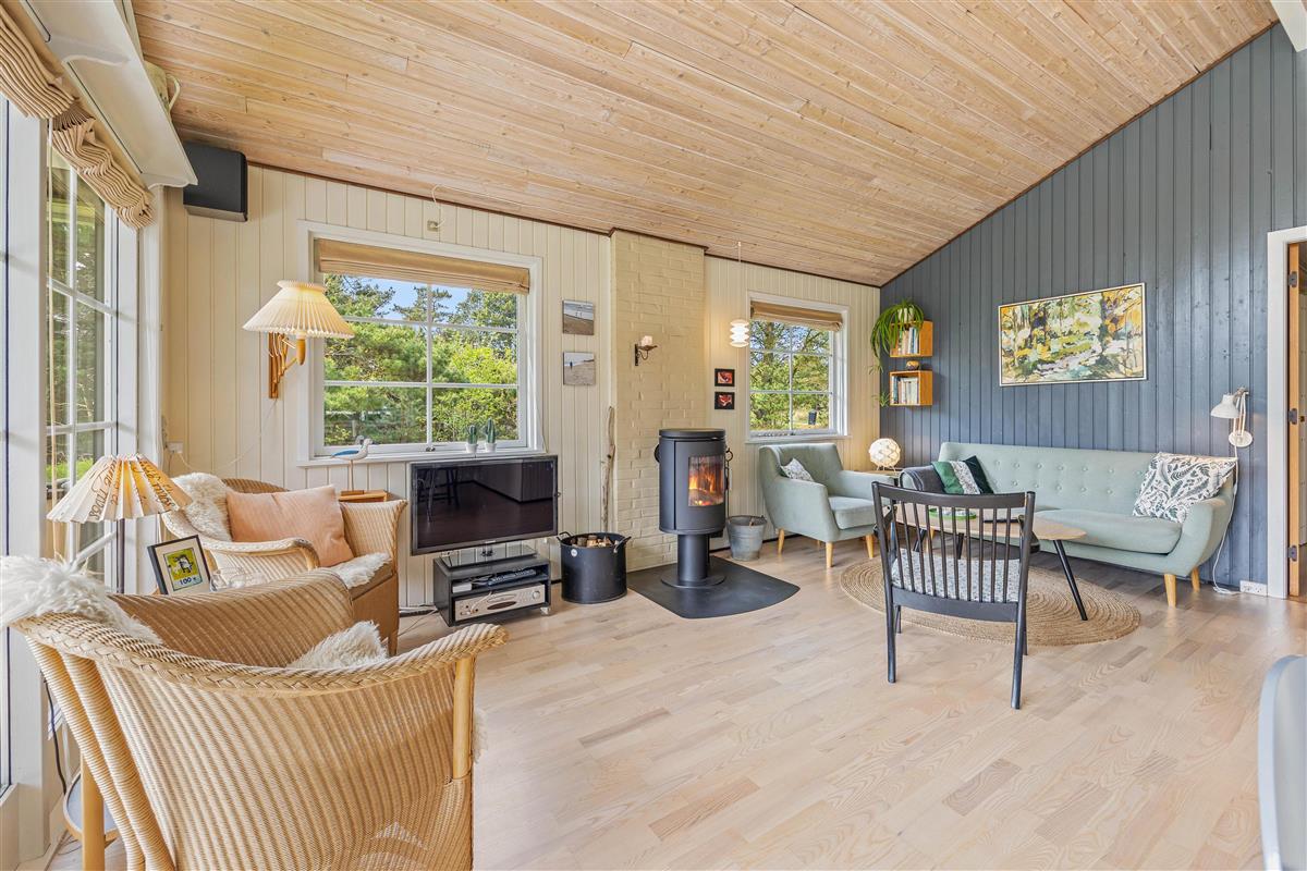 Prepare for a relaxing holiday on Denmark's west coast. This charming holiday home in Houstrup, situated on an idyllic plot surrounded by greenery, offers everything you could wish for – guaranteeing peace, nature and pure relaxation! Located at Puggeldal 44 on the edge of a holiday home area, this holiday home for up to 5 people enjoys a quiet, natural setting in a cul-de-sac. A wood-burning stove and modern heat pump provide comfortable temperatures throughout.