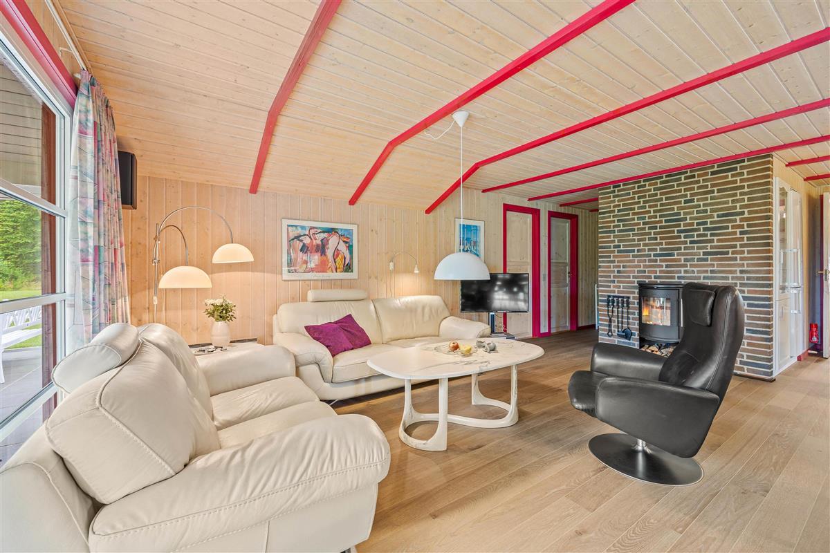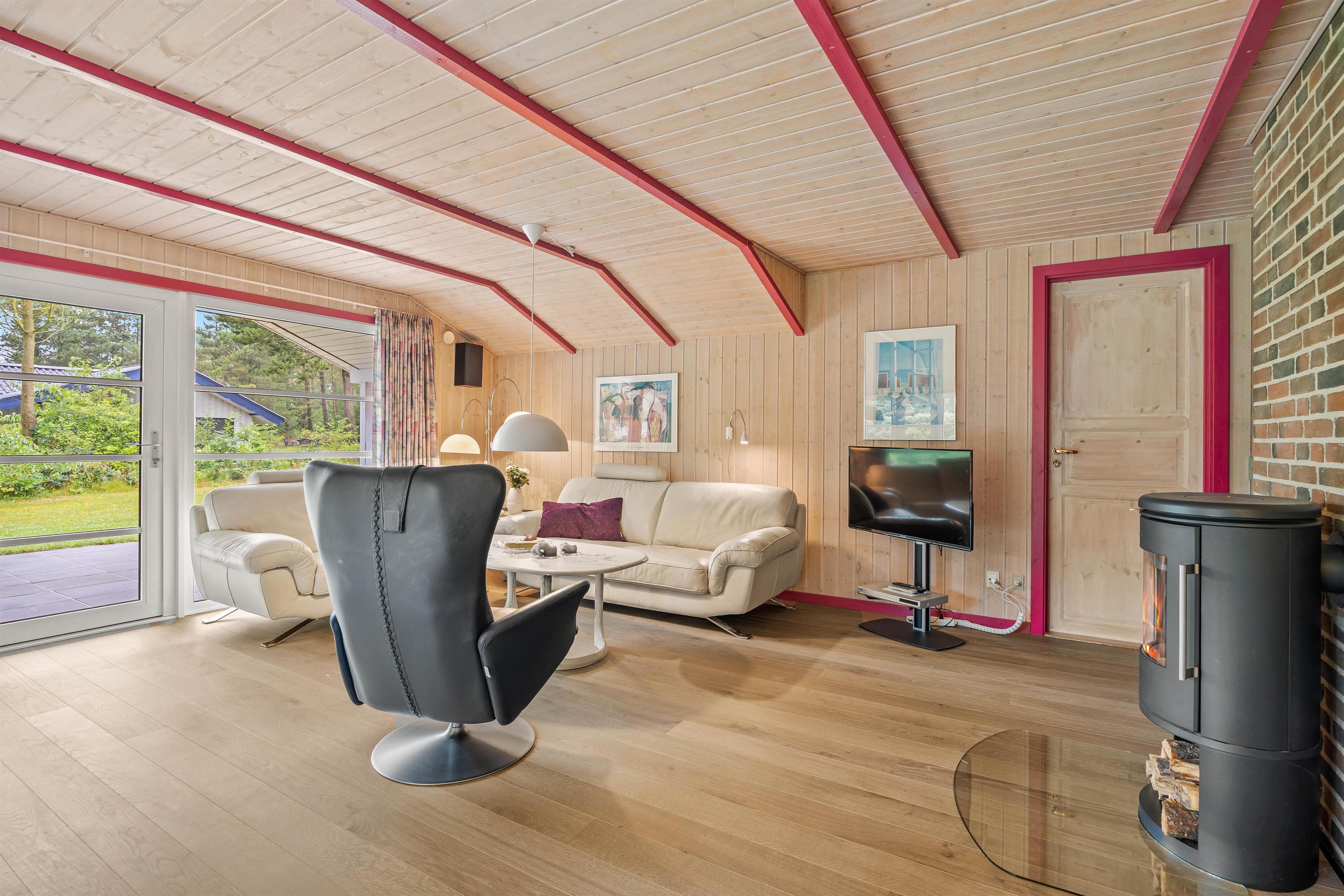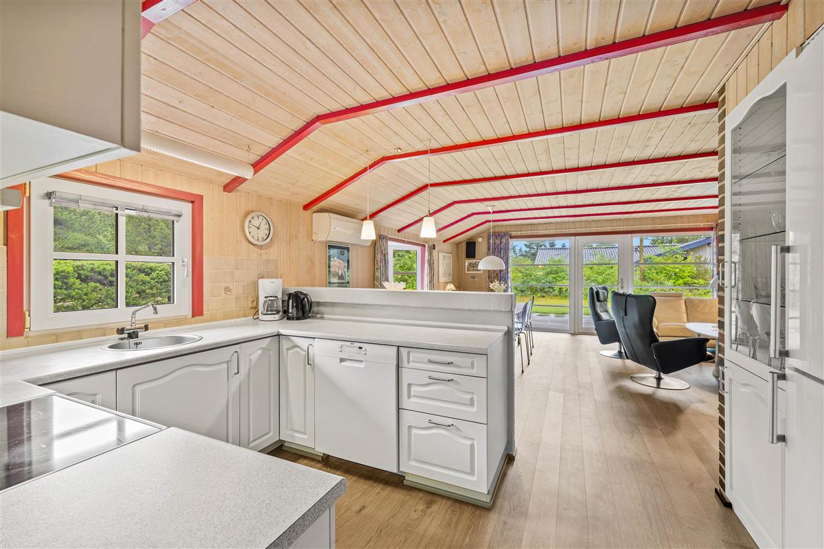 This cosy holiday home at Fyrrekrogen 25 sits on an attractive plot surrounded by tall pine trees, offering complete privacy. The bright, personally furnished interior provides plenty of space for the whole family.