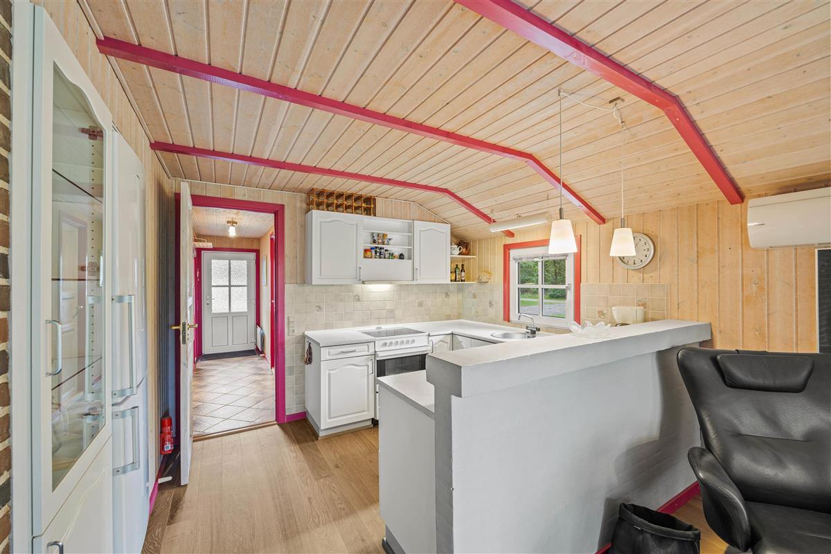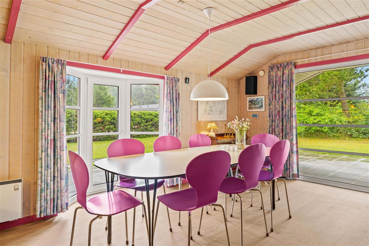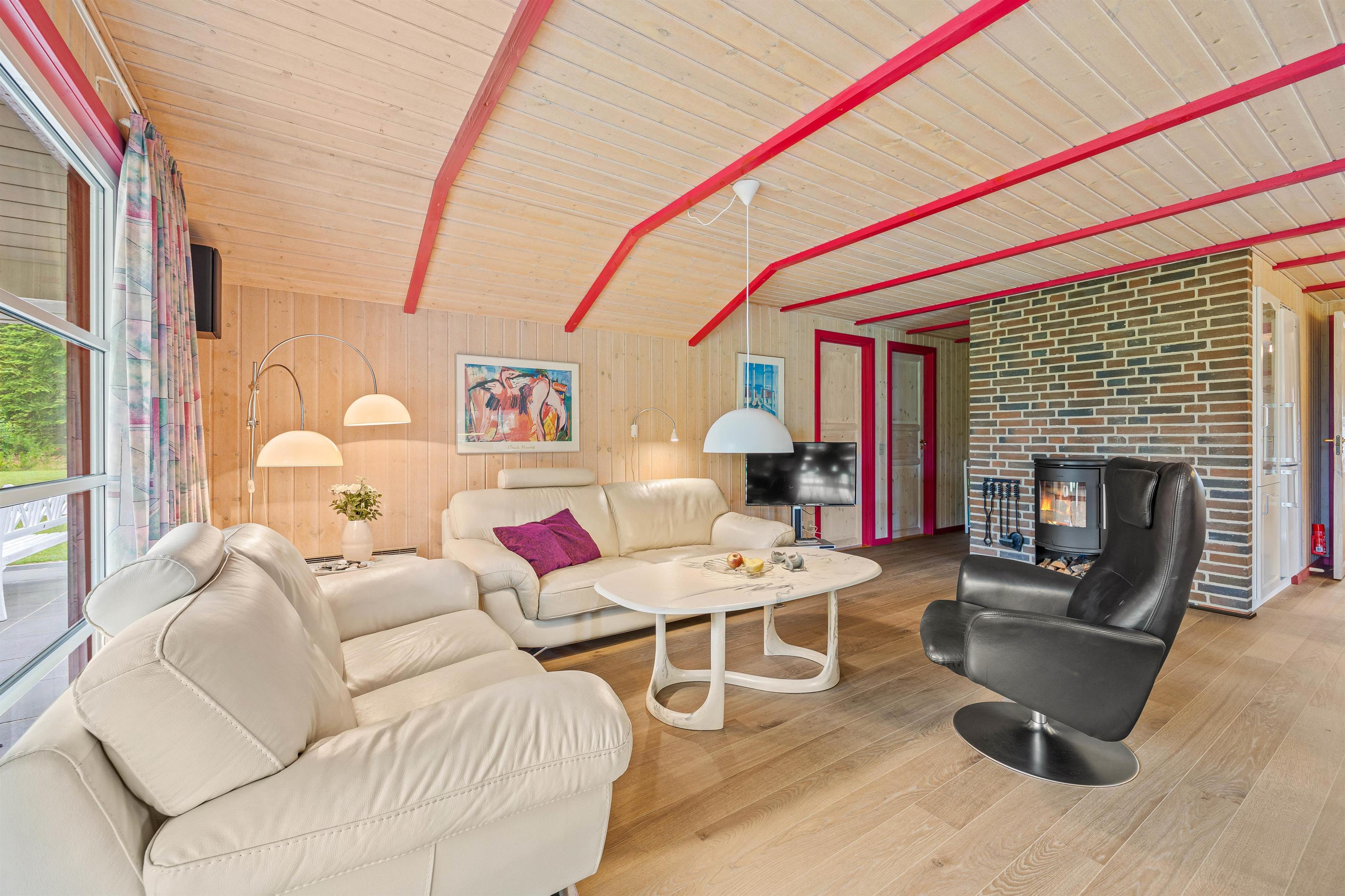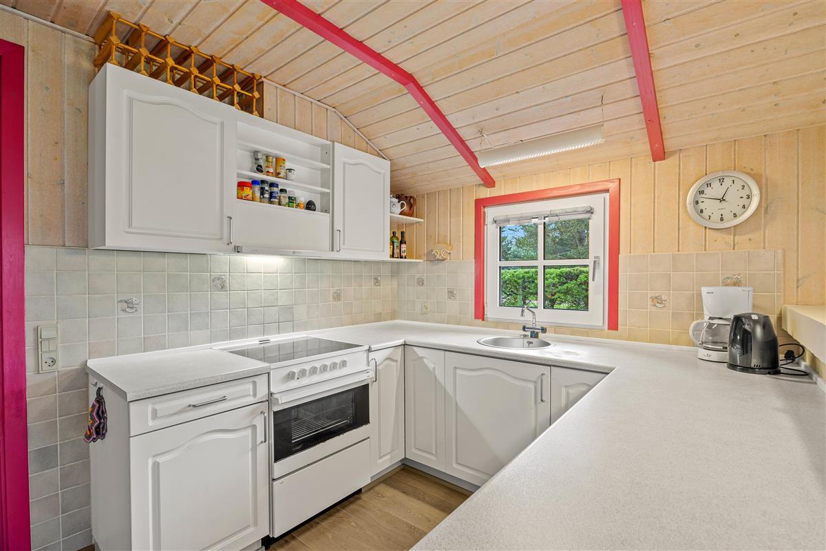 This cosy holiday home at Fyrrekrogen 25 sits on an attractive plot surrounded by tall pine trees, offering complete privacy. The bright, personally furnished interior provides plenty of space for the whole family.