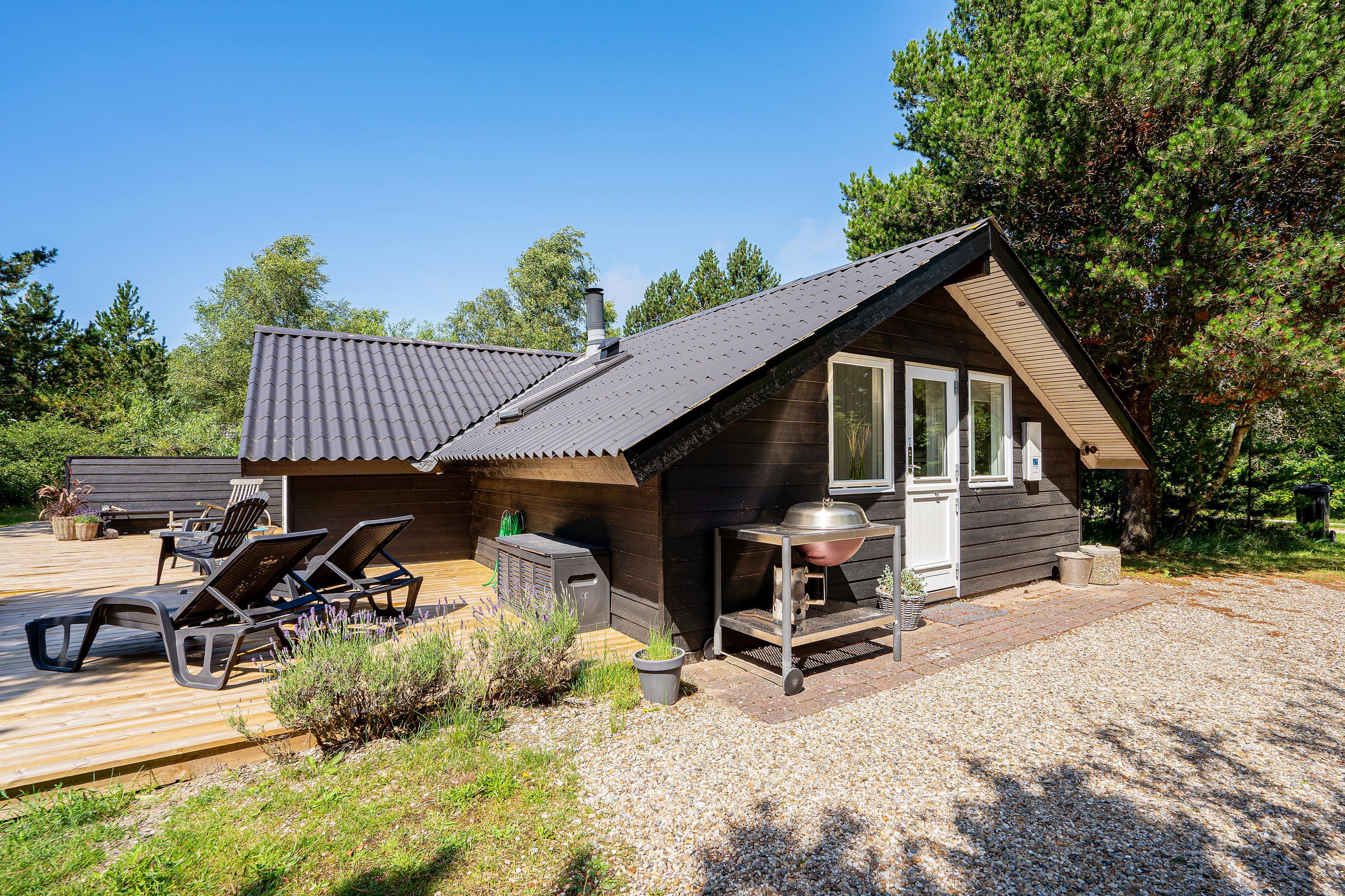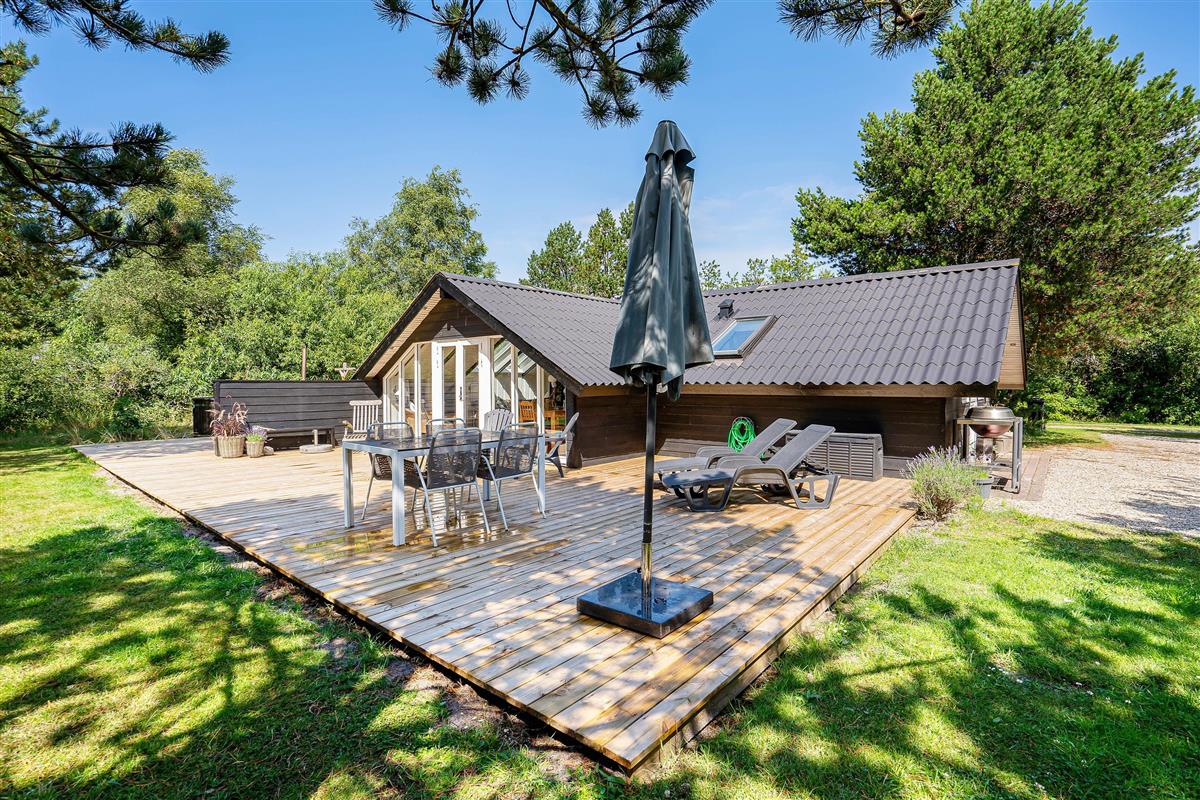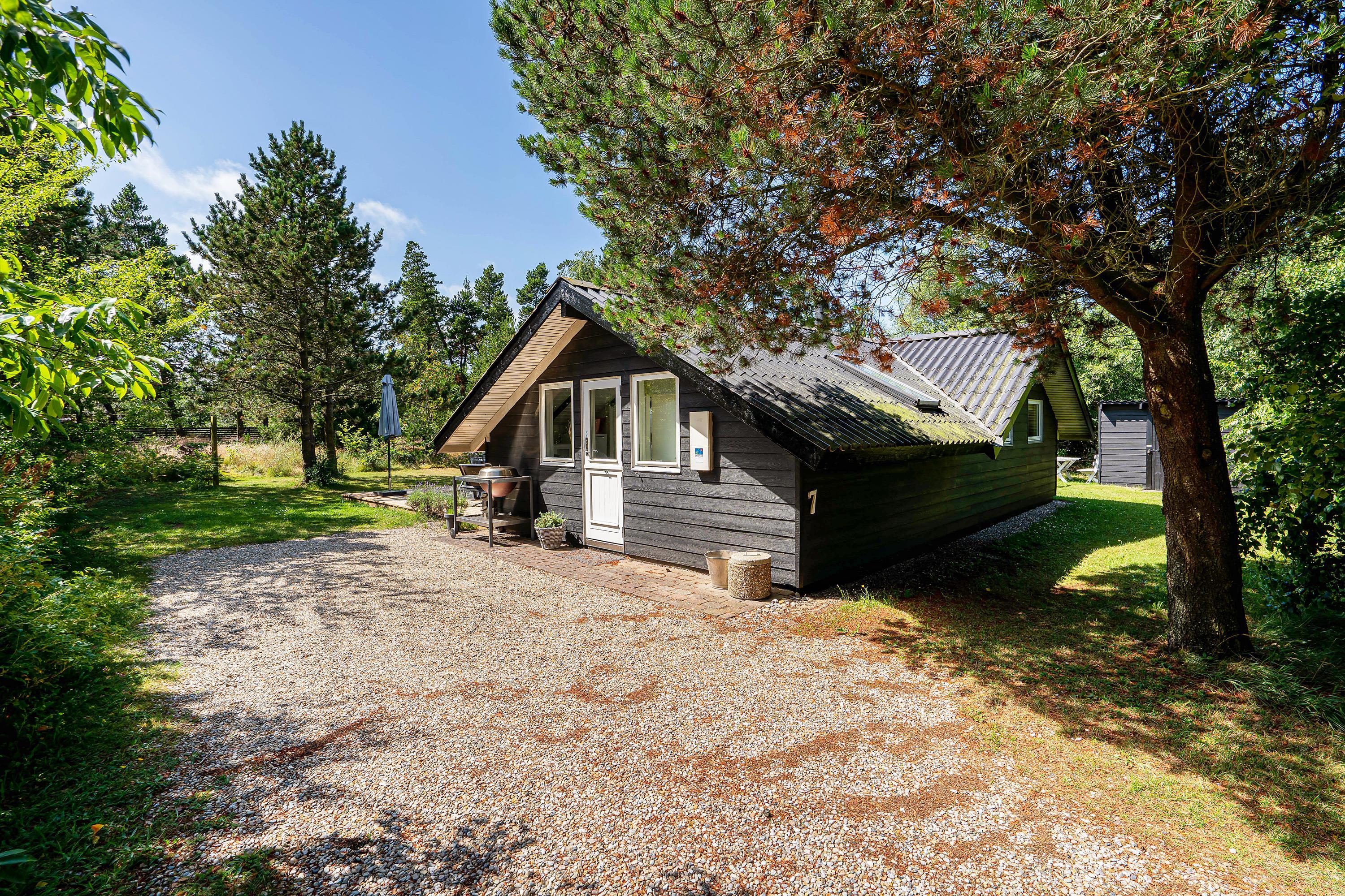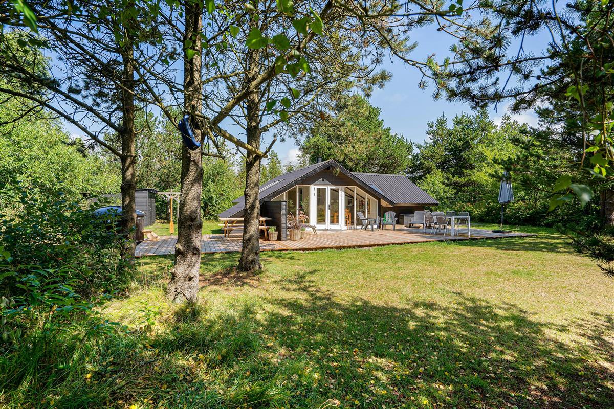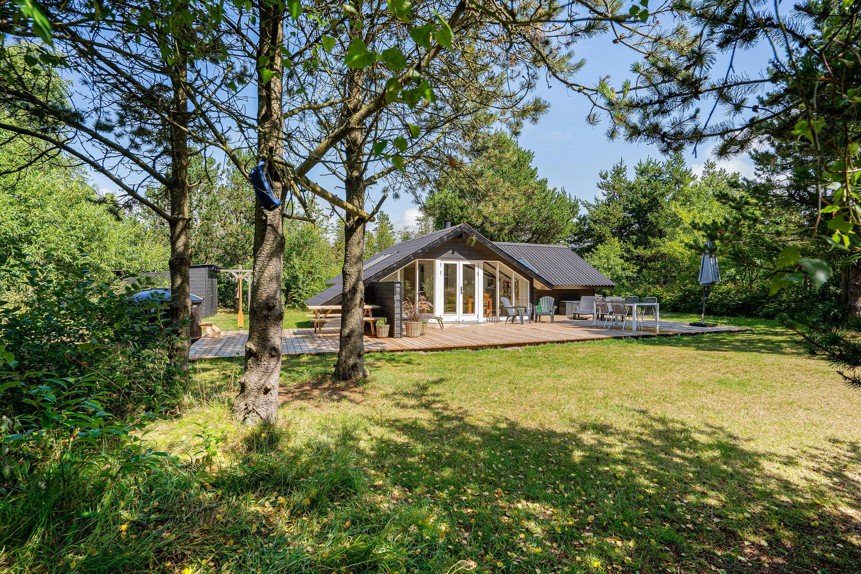 This beautiful holiday home is situated on a large meadow plot at Gravensbjergvej 7 in Houstrup, surrounded by tall trees. Here you can enjoy a classic Danish summer house holiday in an idyllic setting on the Danish west coast. Your four-legged family members are also warmly welcome.
