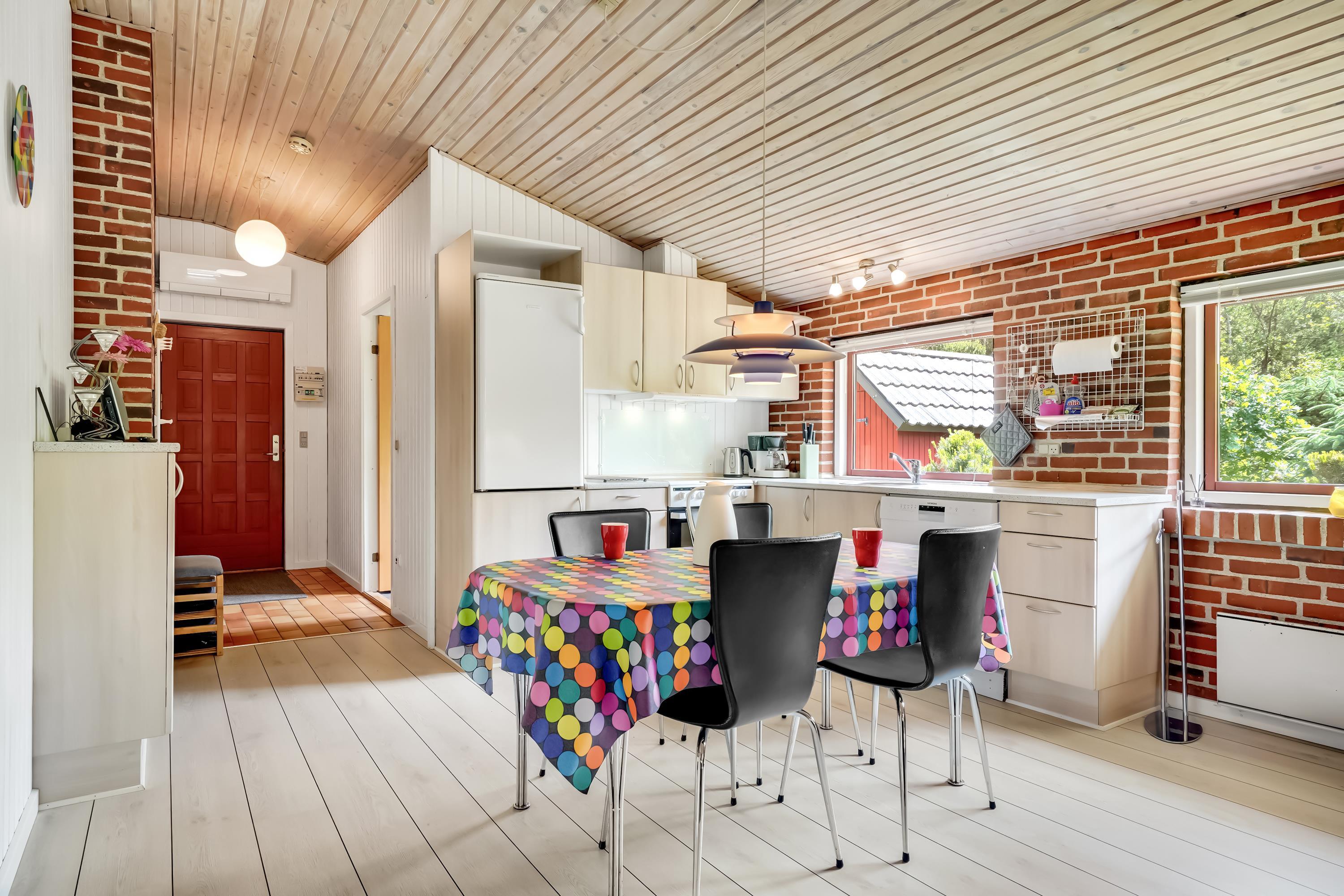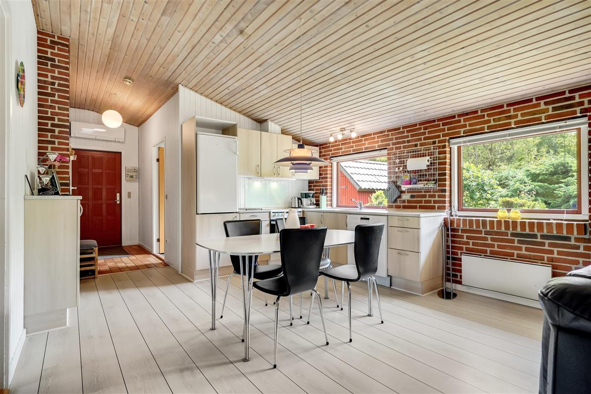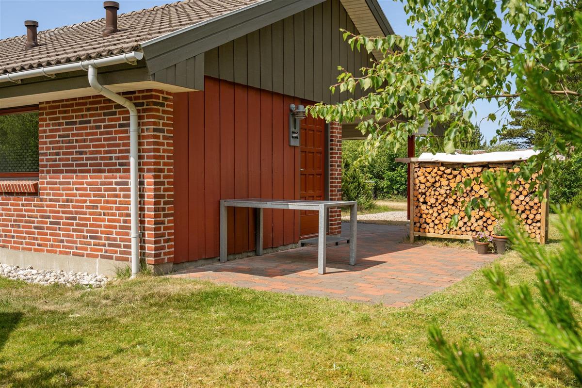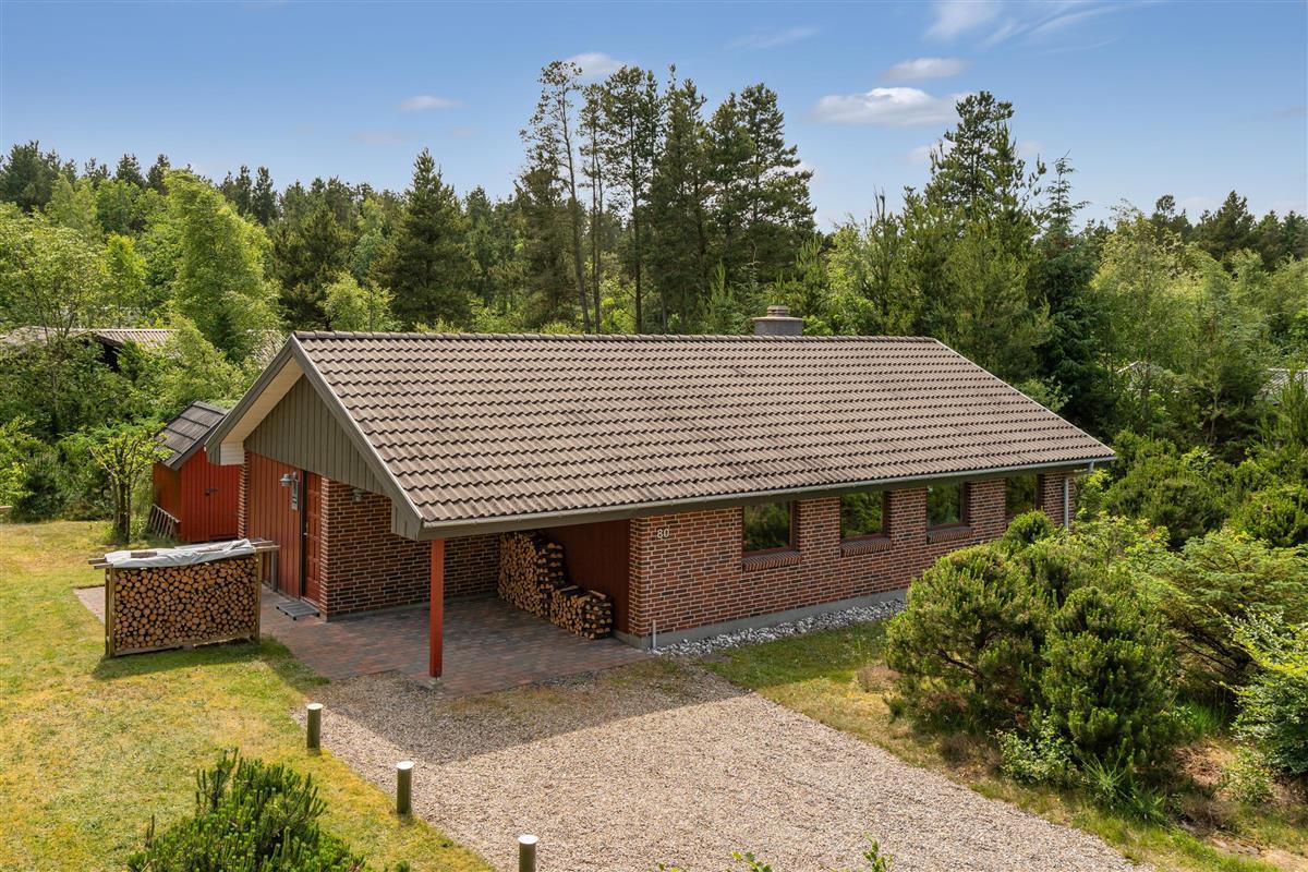 Am Ende einer Straße in malerischer Natur können Sie das Haus Skovvang 80 buchen, das direkten Zugang zum Blåbjerg Plantage bietet, wo Sie lange Spaziergänge oder Radtouren genießen können. Bringen Sie Ihren Hund mit, es gibt genug zu schnüffeln. Das Haus verfügt über 2 Schlafzimmer mit jeweils Doppel- und Einzelbetten. Ein modernes Badezimmer mit Fußbodenheizung und Sauna. Ein offen gestalteter Küchen- und Wohnbereich mit Kamin, Wärmepumpe und Fernseher. Es gibt einen Vorratsraum zur Aufbewahrung sowie Zugang zu einem Schuppen, eventuell für Ihre mitgebrachten Fahrräder. Das Grundstück ist mit abwechslungsreicher Bepflanzung gestaltet und bietet viele Möglichkeiten, egal ob Sie Schutz, Sonne oder Schatten suchen. Die Terrassen sind sowohl überdacht als auch offen.