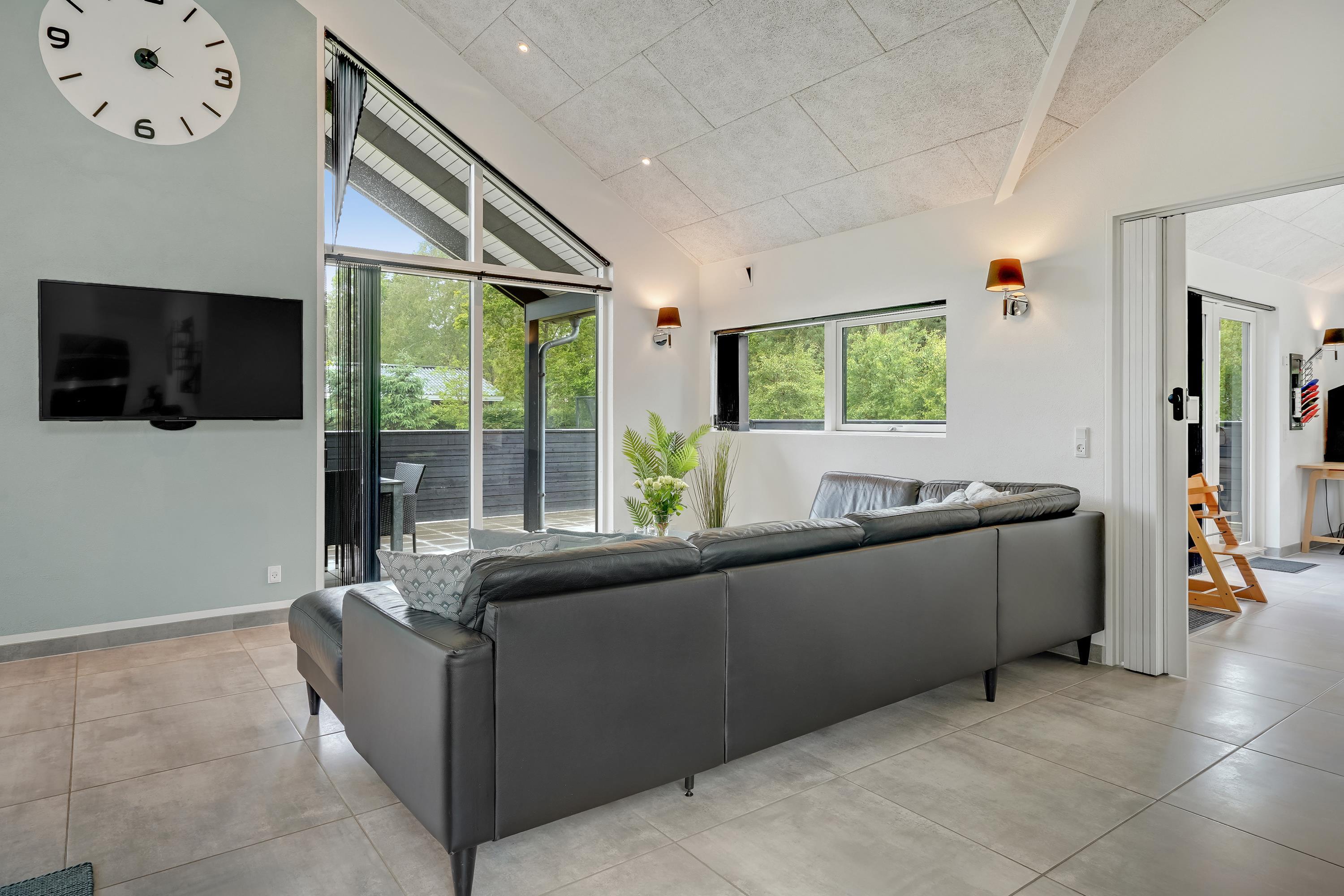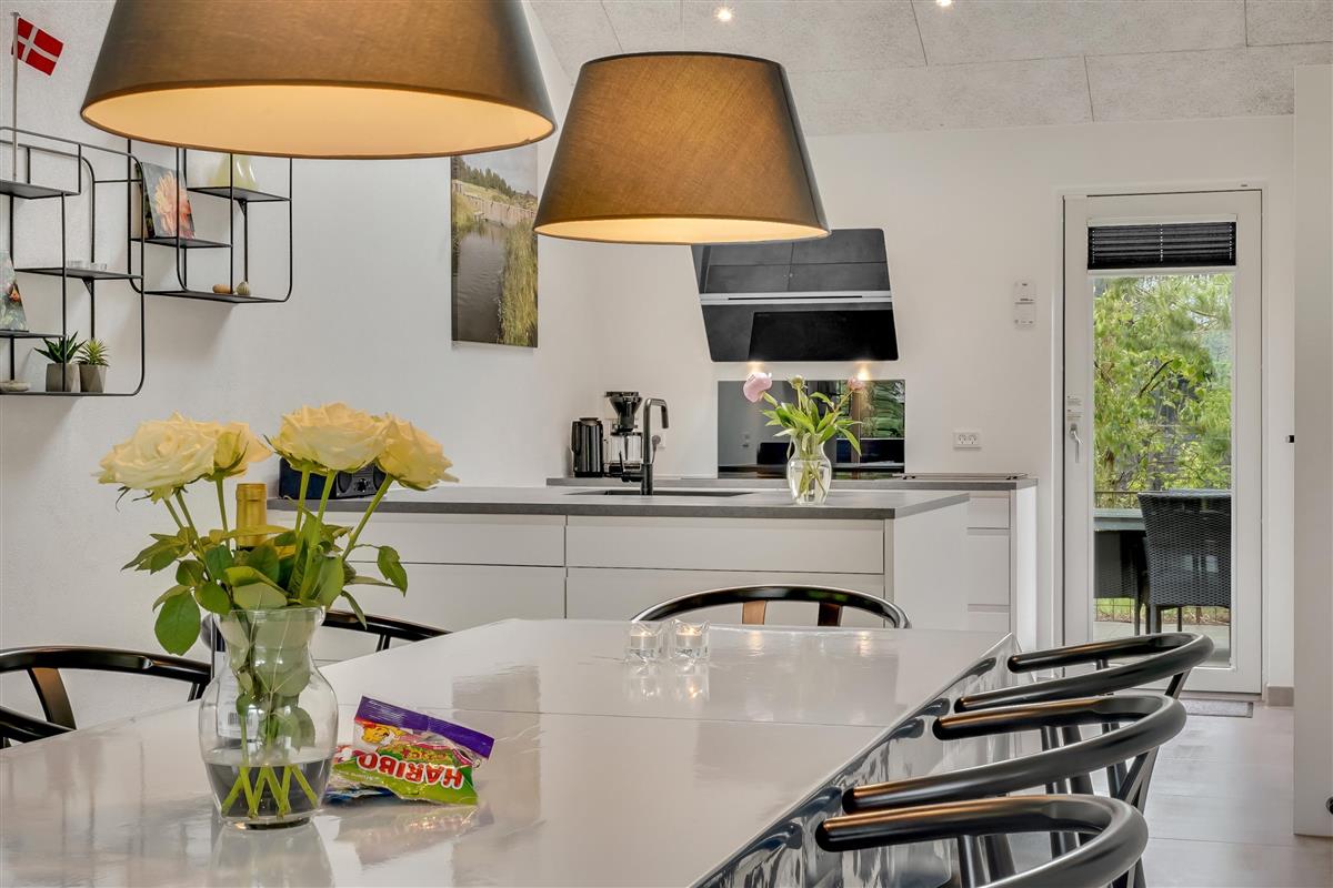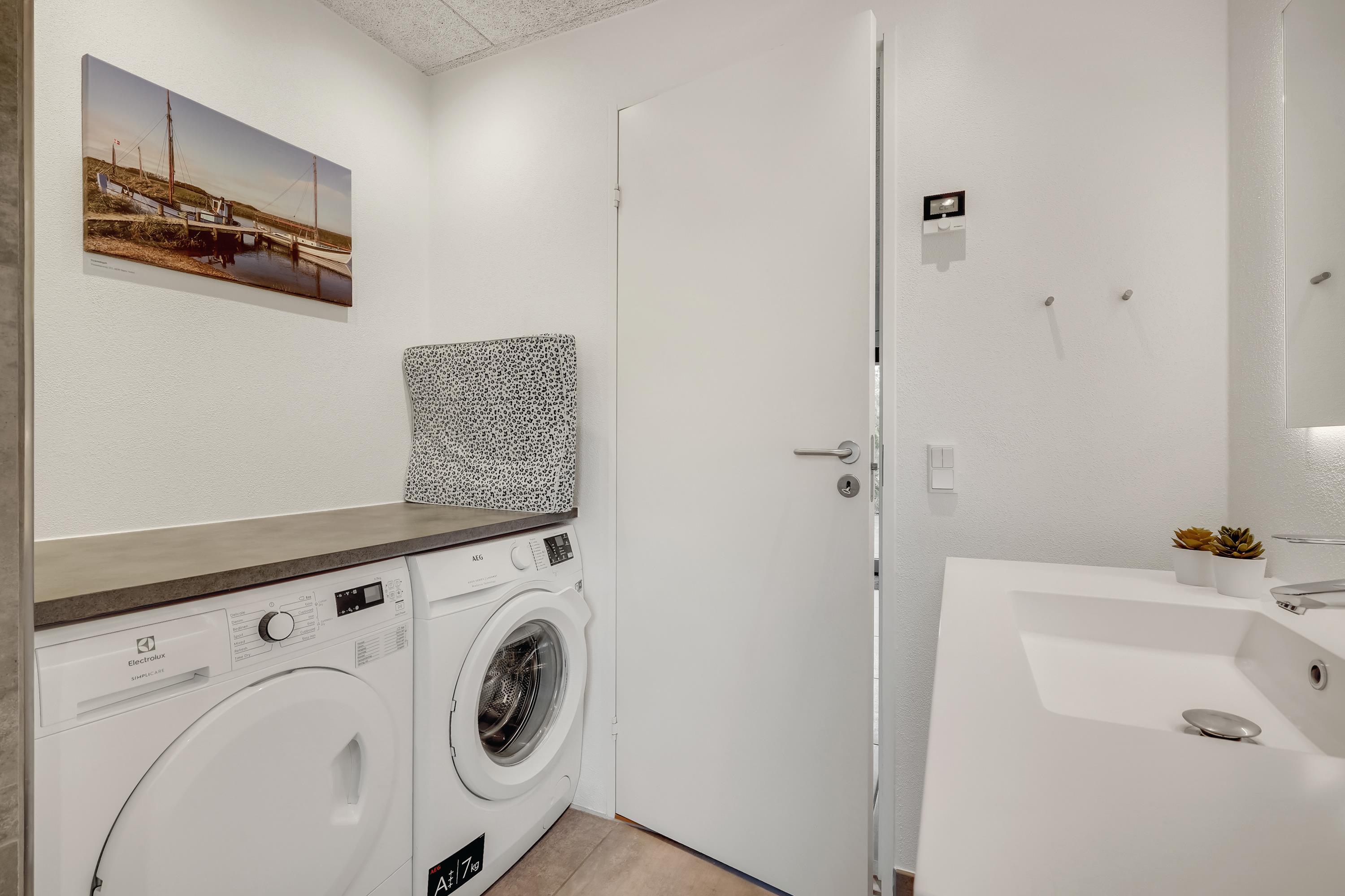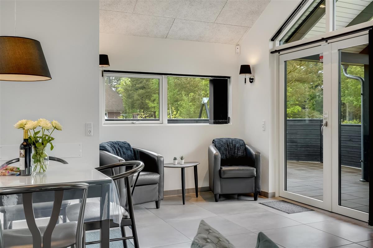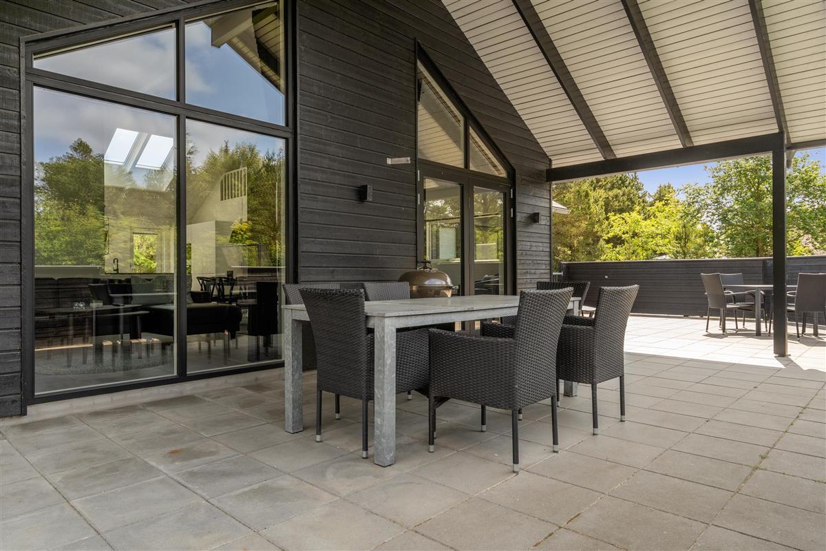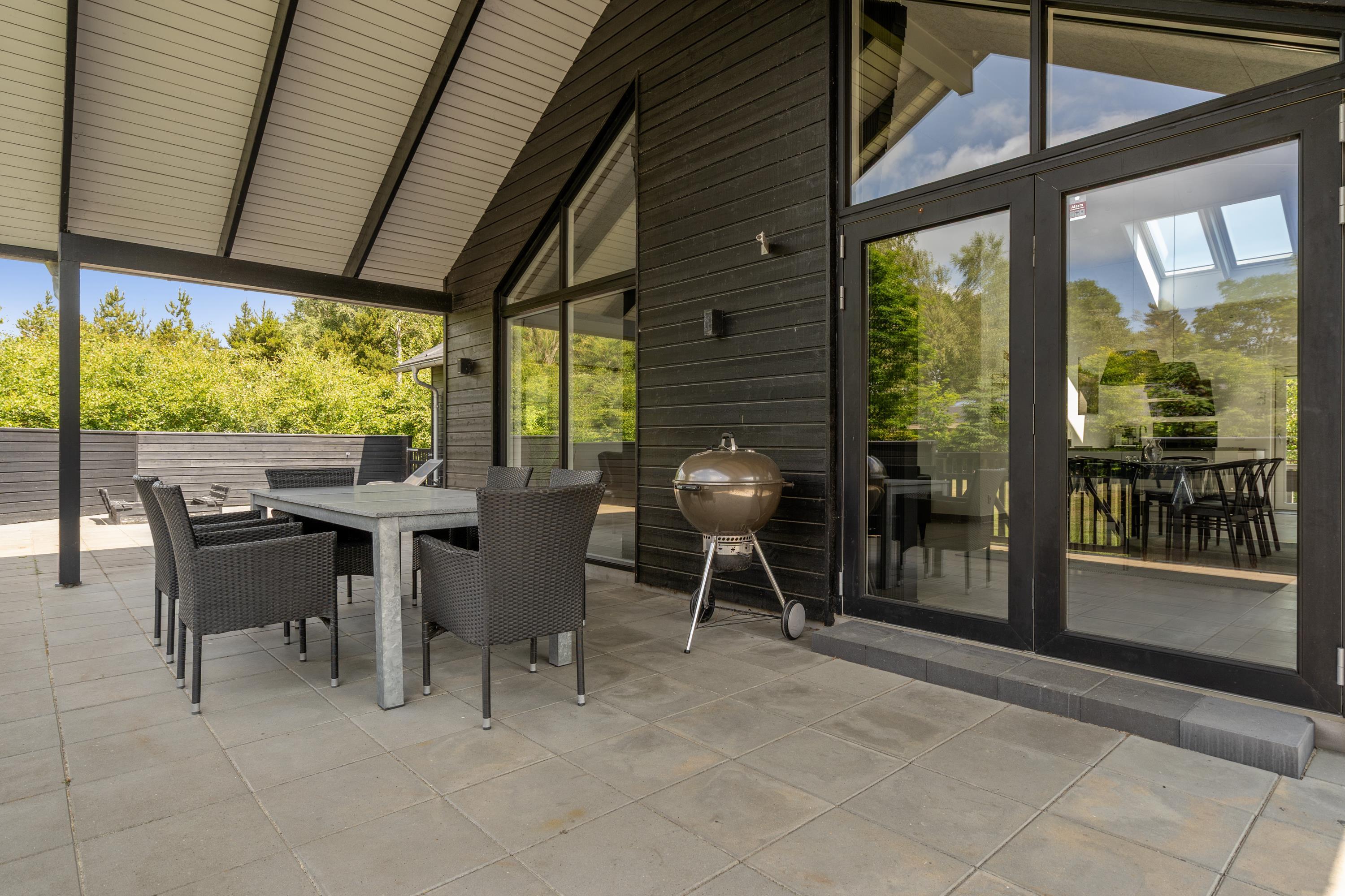 Die große eingezäunte Terrasse von etwa 70 m² hat drei Ausgänge, was es ermöglicht, Kinder und Hunde sicher zu halten. Ein Teil der Terrasse (ca. 20 m²) ist überdacht und trägt dazu bei, die Sommersaison zu verlängern. Auf dem schönen Grundstück gibt es ein Fußballtor, eine Sandkiste, eine Petanque-Bahn, Schaukeln und ein Trampolin, die zum Spielen und Aktivsein einladen. Das Haus wird ausschließlich an Familien und nicht an Gruppen vermietet. Es gibt auch einen separaten und abschließbaren Schuppen für die Mieter mit einem zusätzlichen Kühlschrank. Dieses Haus ist wirklich durchdacht! Freier Eintritt zum Schwimm & Play. Kostenloser Zugang zum Golf in Outrup sowie Speedwayrennen ebenfalls in Outrup.