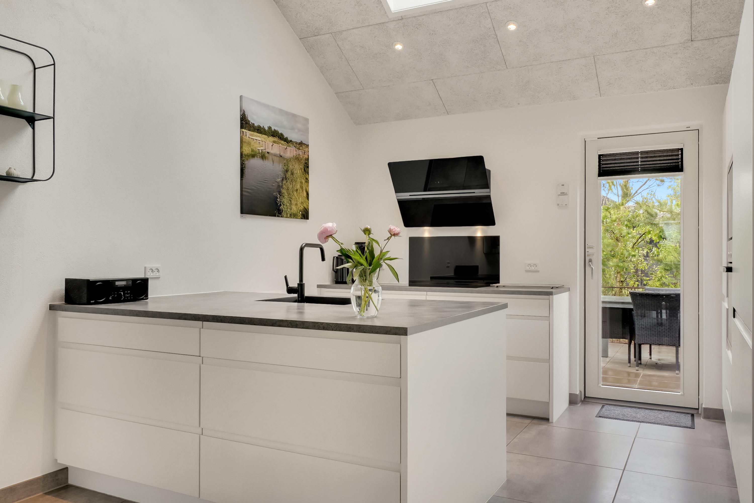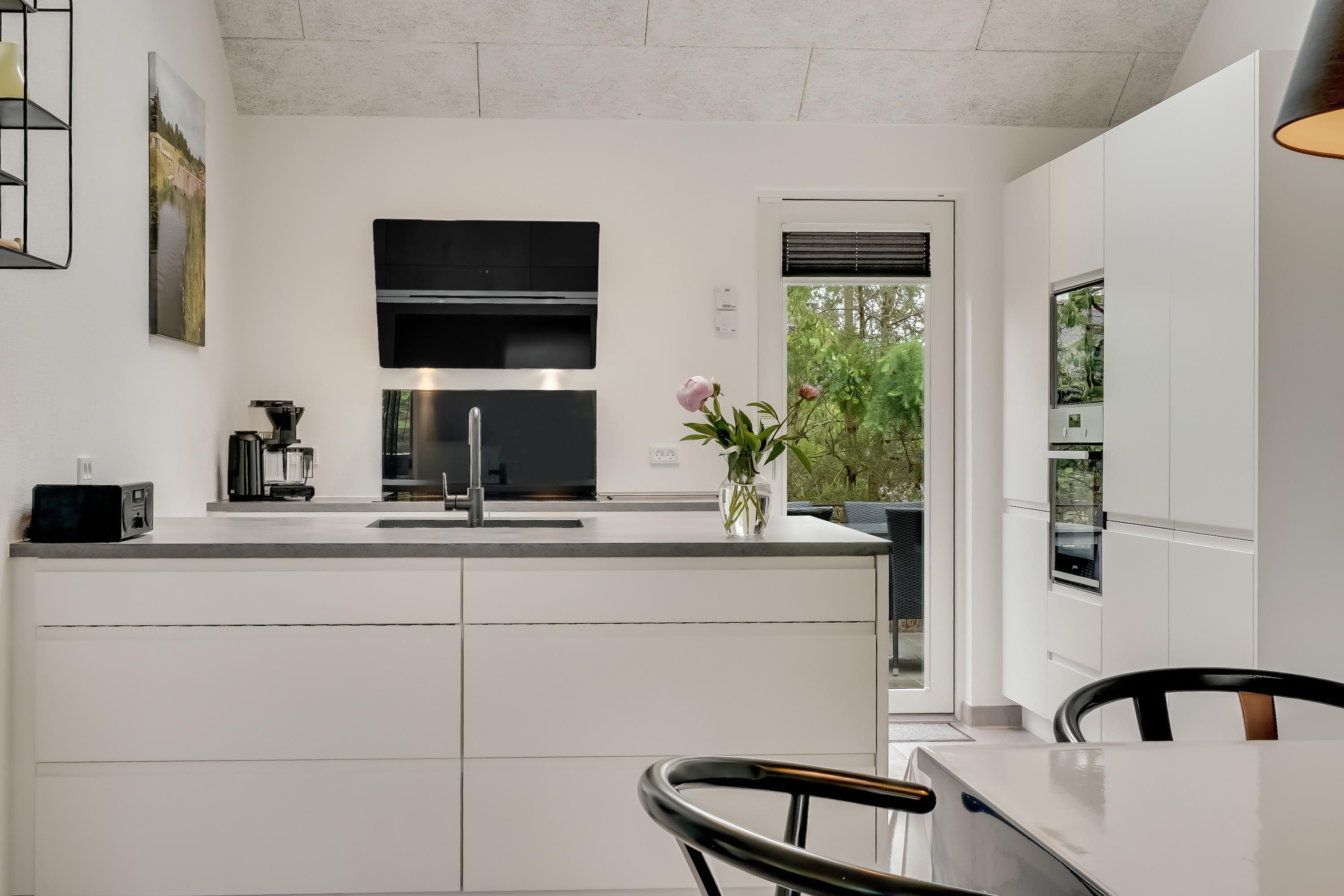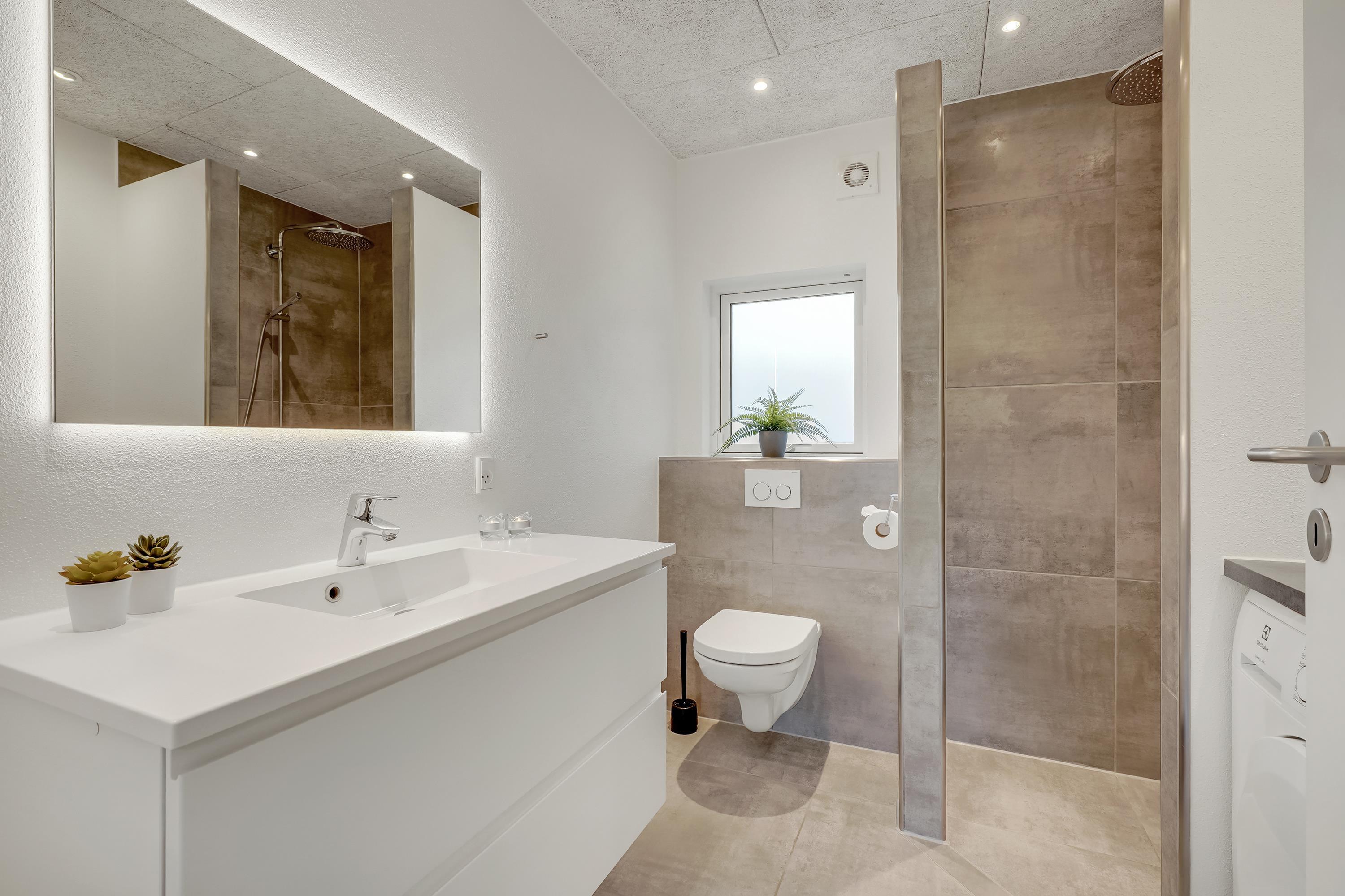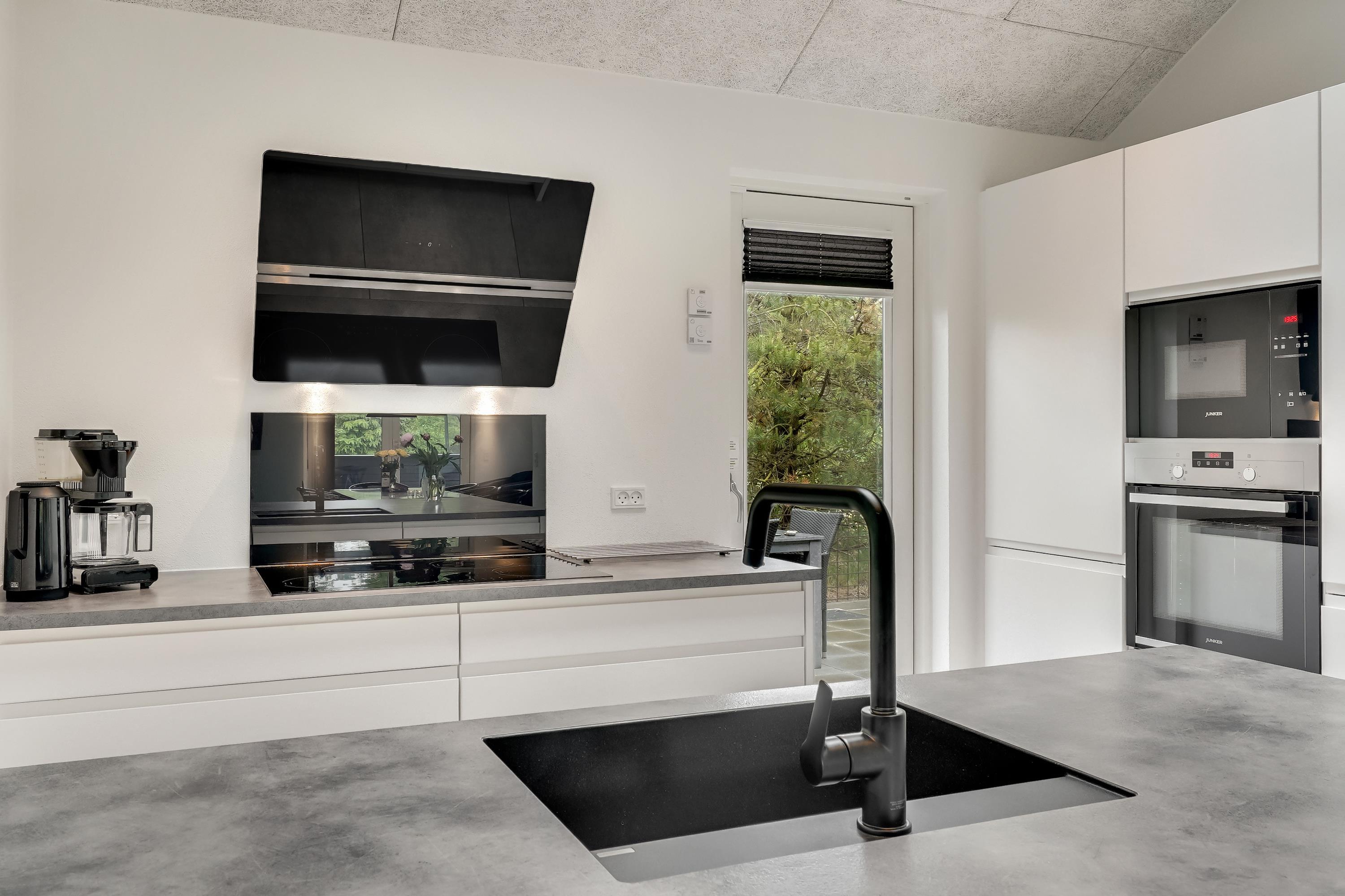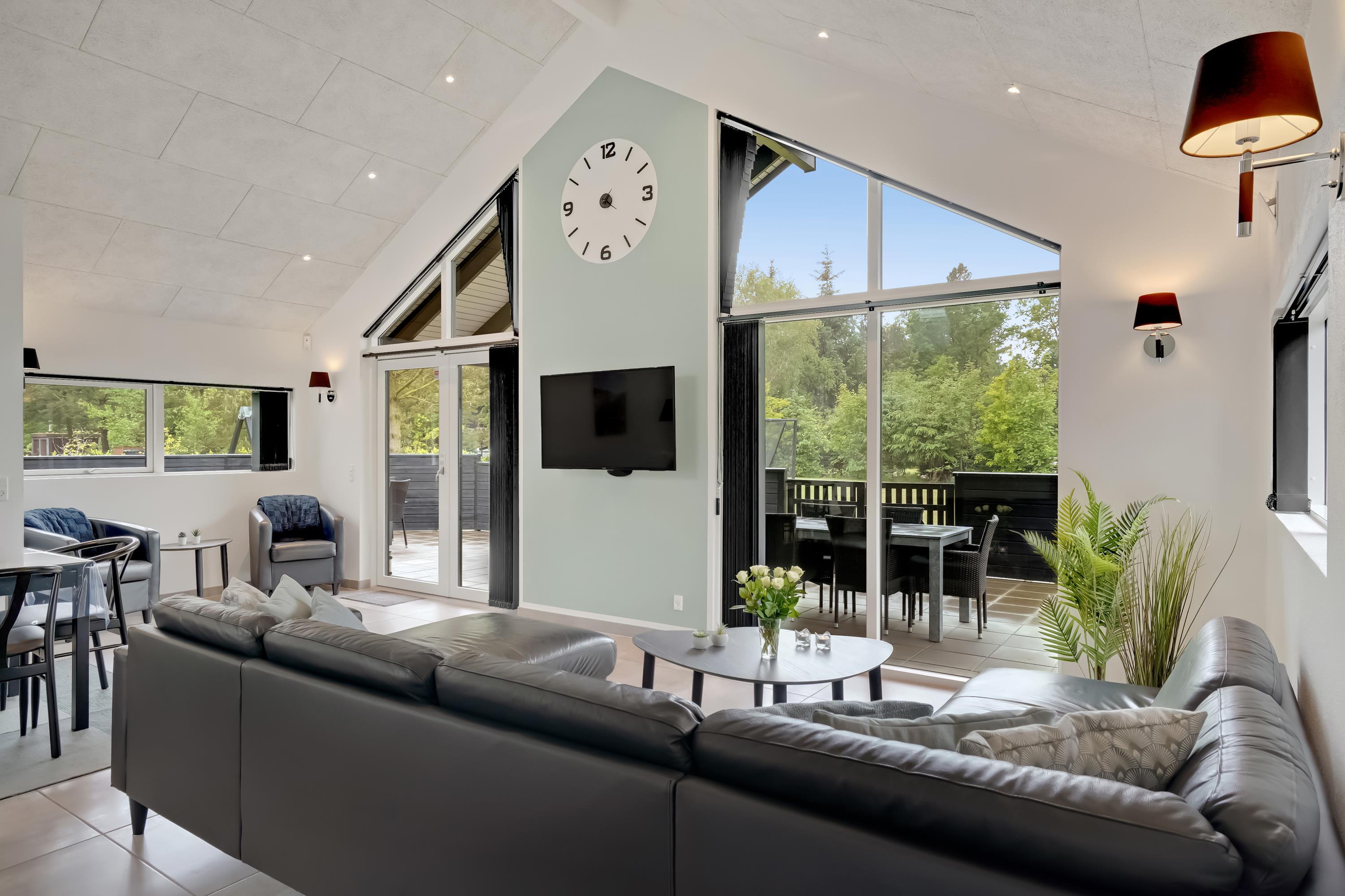 Die große eingezäunte Terrasse von etwa 70 m² hat drei Ausgänge, was es ermöglicht, Kinder und Hunde sicher zu halten. Ein Teil der Terrasse (ca. 20 m²) ist überdacht und trägt dazu bei, die Sommersaison zu verlängern. Auf dem schönen Grundstück gibt es ein Fußballtor, eine Sandkiste, eine Petanque-Bahn, Schaukeln und ein Trampolin, die zum Spielen und Aktivsein einladen. Das Haus wird ausschließlich an Familien und nicht an Gruppen vermietet. Es gibt auch einen separaten und abschließbaren Schuppen für die Mieter mit einem zusätzlichen Kühlschrank. Dieses Haus ist wirklich durchdacht! Freier Eintritt zum Schwimm & Play. Kostenloser Zugang zum Golf in Outrup sowie Speedwayrennen ebenfalls in Outrup.