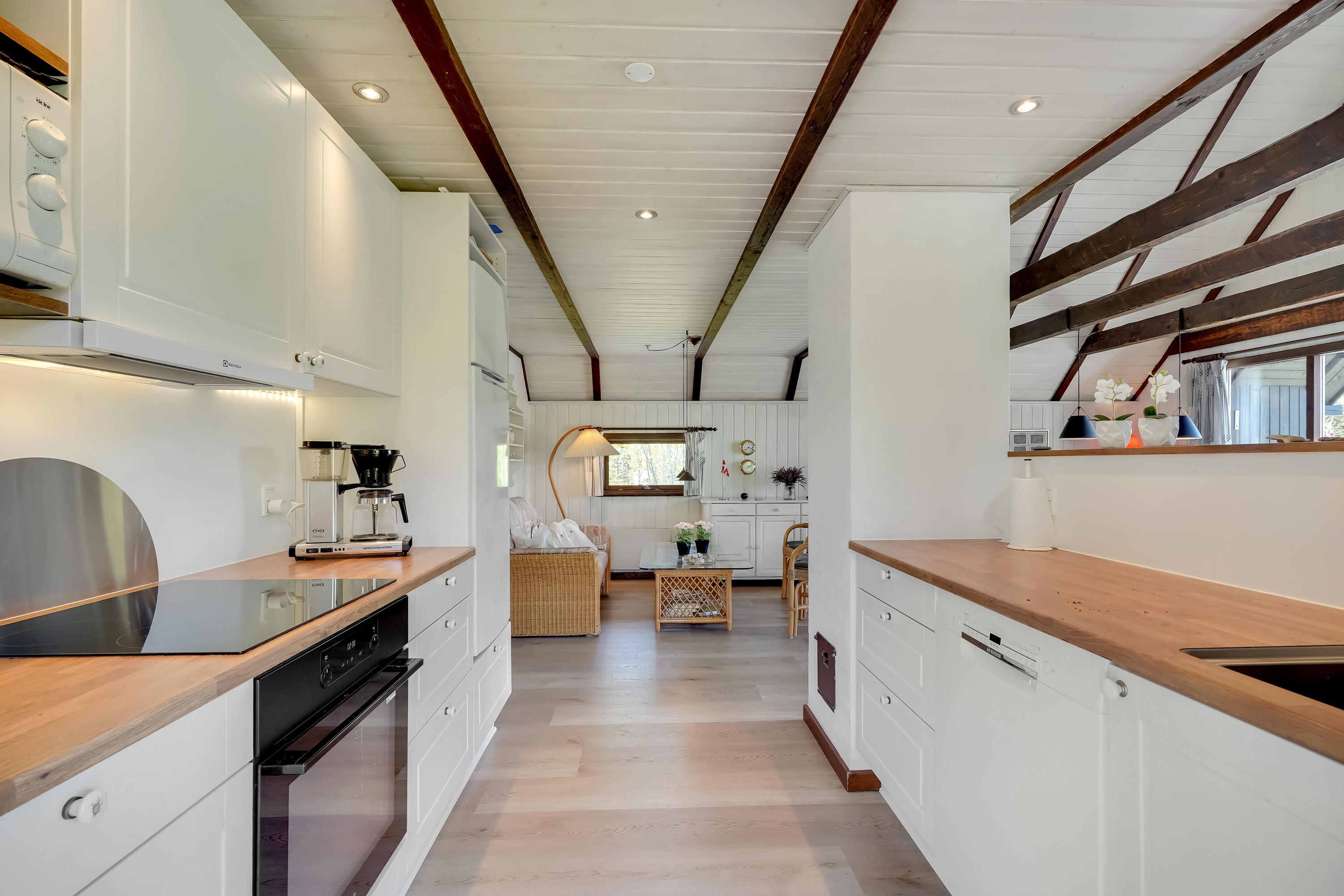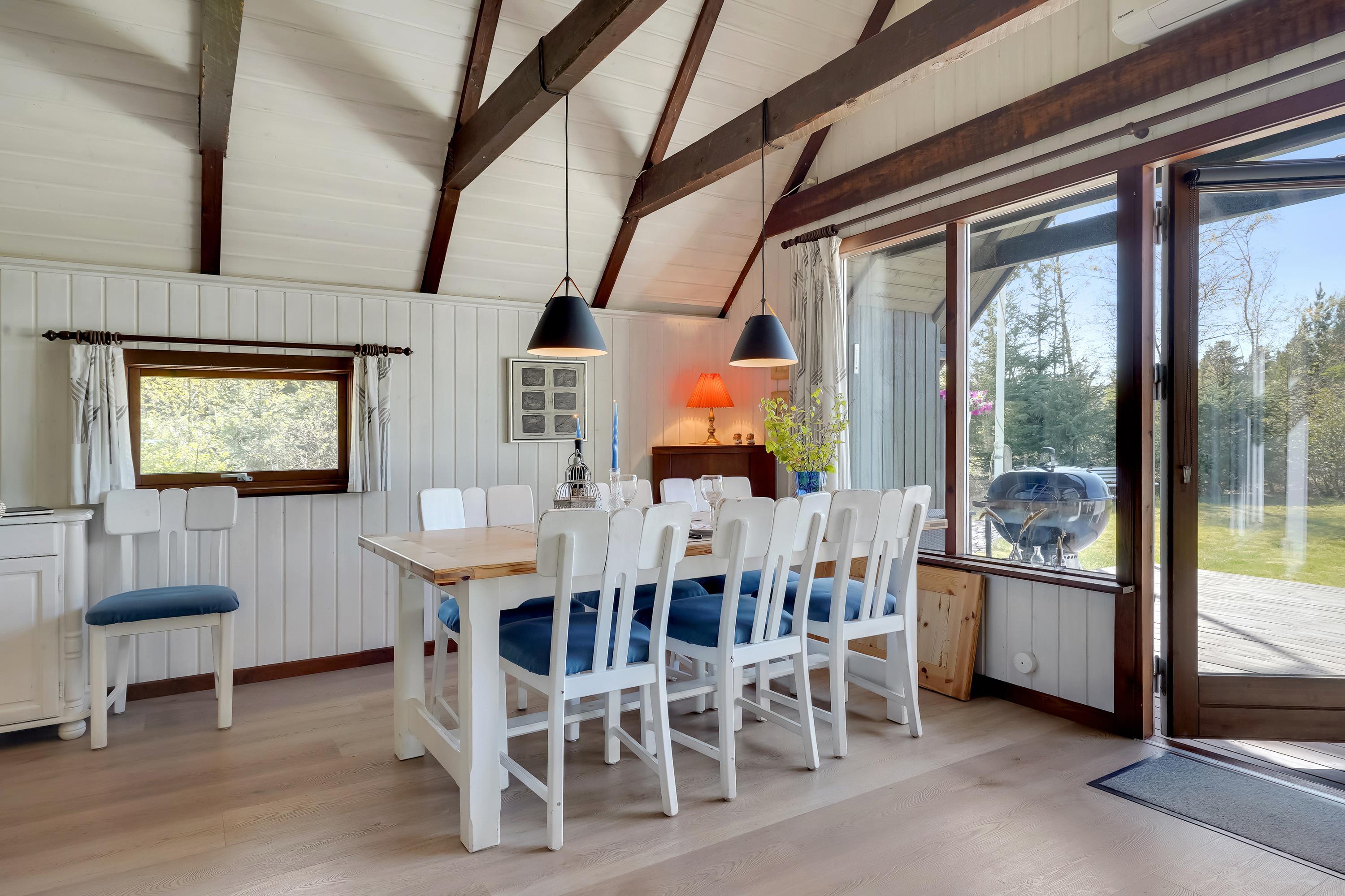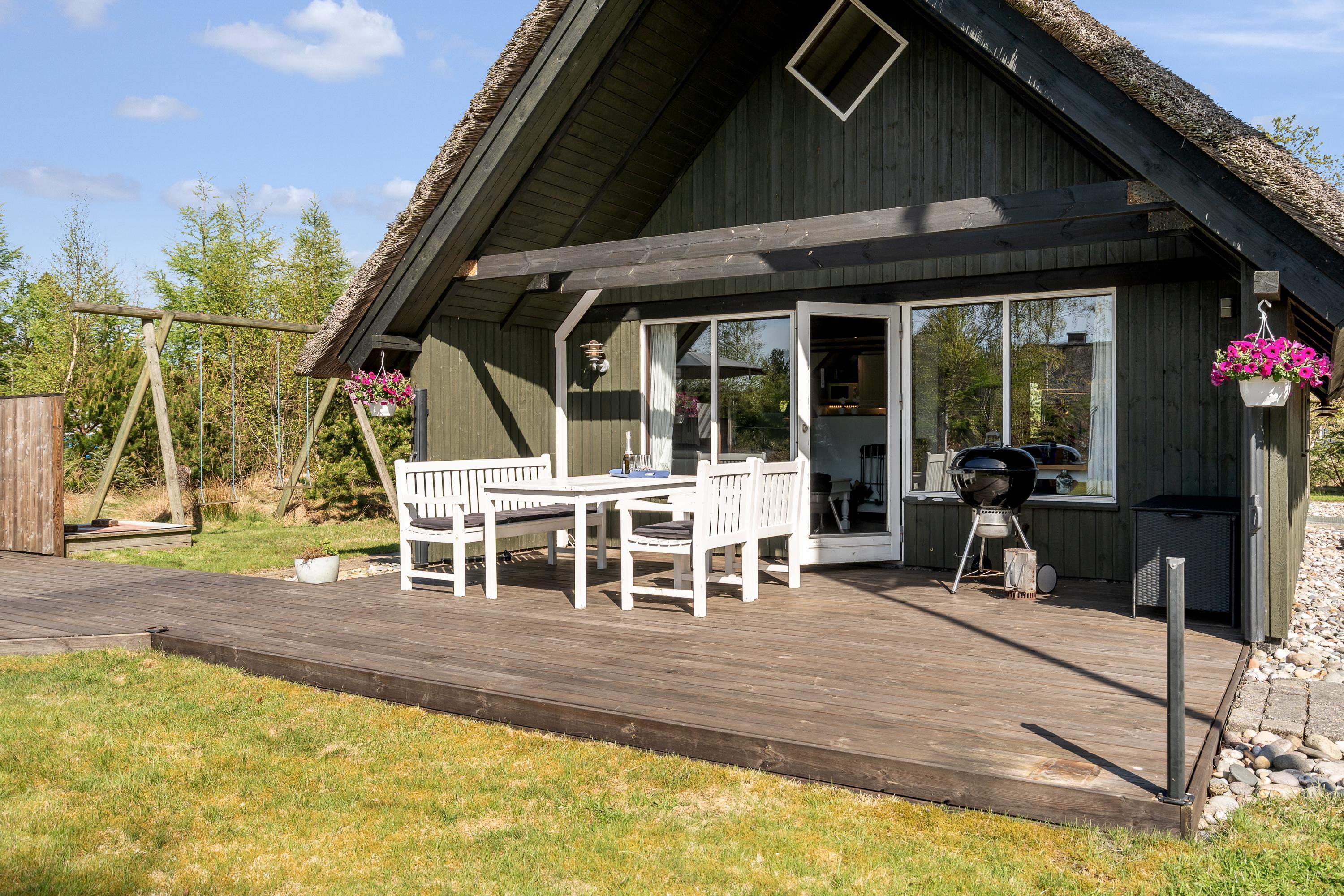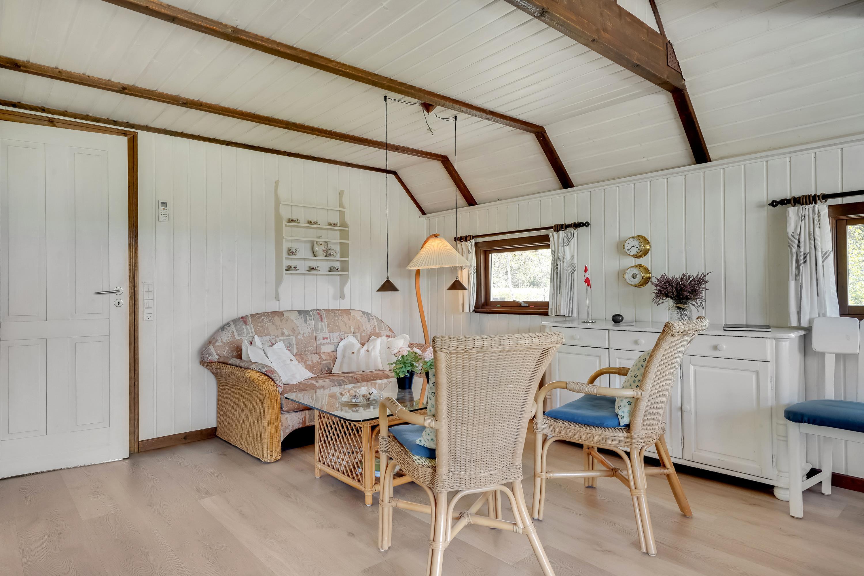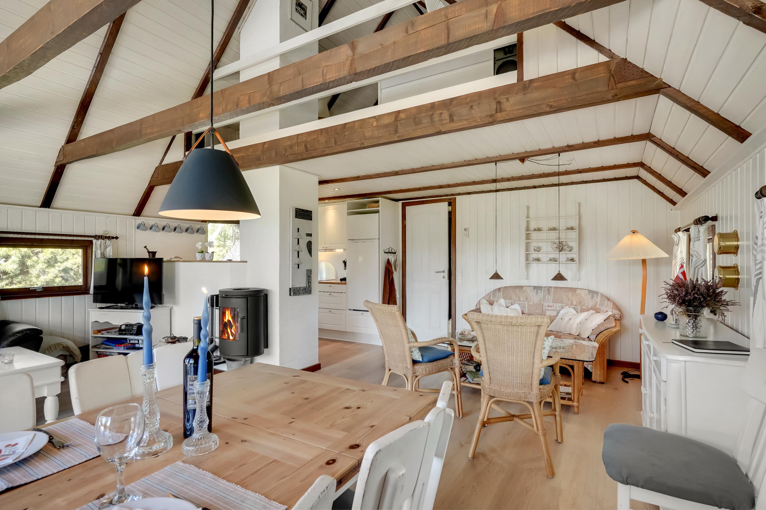 In dem Søndervang 6, mit 3 Terrassen, von denen eine überdacht ist, findet man immer Windschutz oder Schatten vor der Sonne. Sie finden 3 Schlafzimmer, 2 davon mit Doppelbett, und im ersten Stock befindet sich das letzte Schlafzimmer. Die Küche aus dem Jahr 2021 ist gut ausgestattet und verfügt über eine Mikrowelle und Geschirrspüler sowie einen Gefrierschrank mit ca. 50 Litern. Das Wohnzimmer ist gemütlich mit sichtbaren Balken und hohen Decken. Ein Kaminofen und eine Wärmepumpe sorgen sowohl für Gemütlichkeit als auch für eine angenehme Temperatur. Das äußerst schöne Badezimmer aus dem Jahr 2022 verfügt selbstverständlich über Fußbodenheizung. Das Haus ist persönlich und sehr gut gepflegt. Sie sind herzlich eingeladen, Ihren vierbeinigen Freund mitzubringen. Kostenloser Zugang zum Golf in Outrup sowie Speedwayrennen ebenfalls in Outrup. Ein Haus, in dem Neues und Altes harmonisch zusammenkommen. Sie werden ganz sicher wiederkommen.