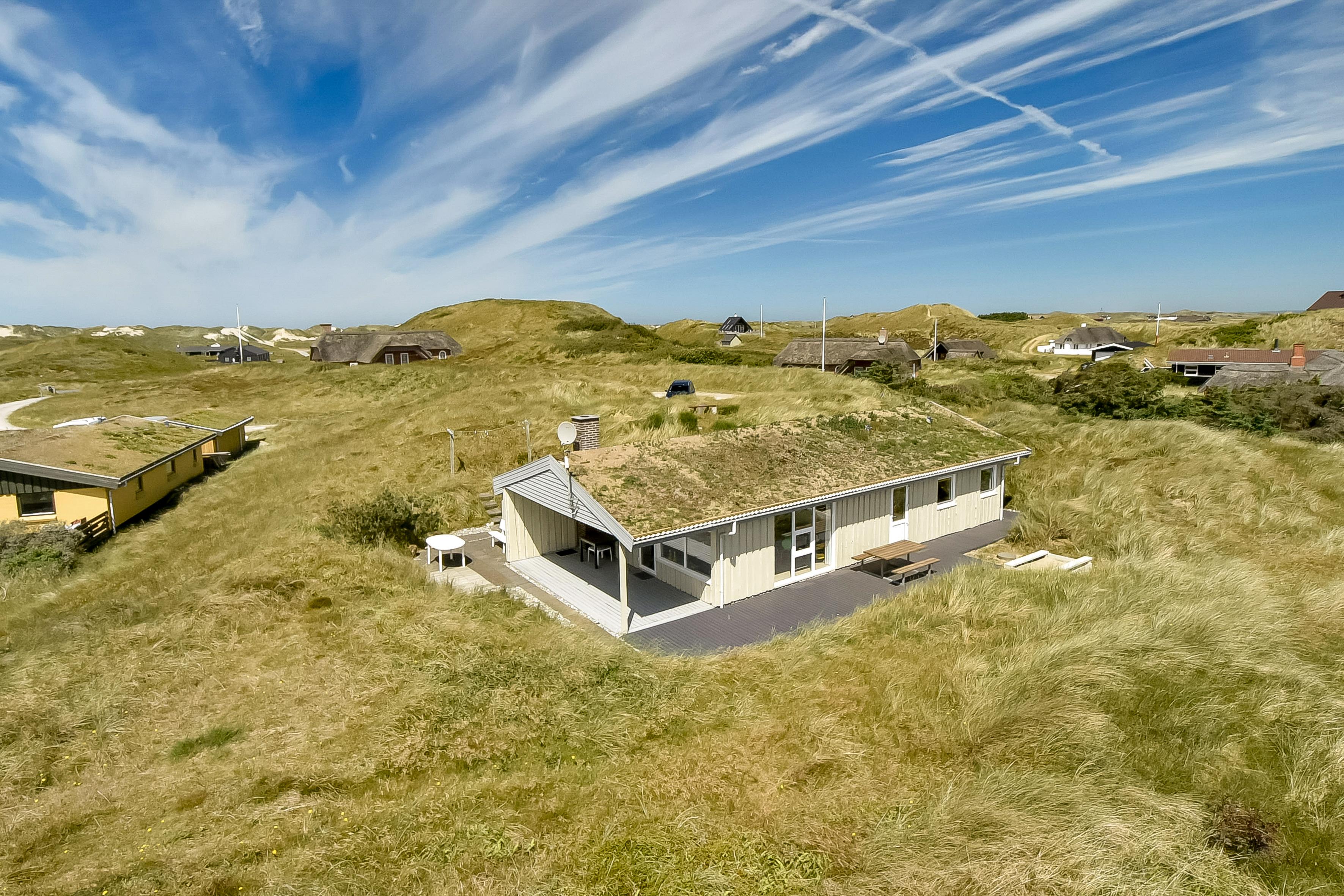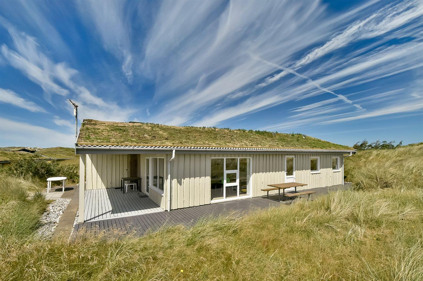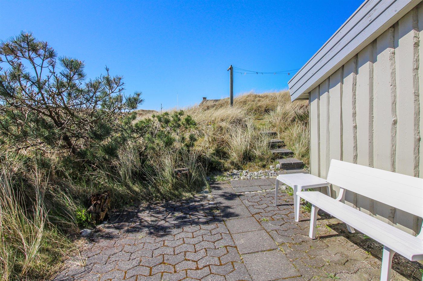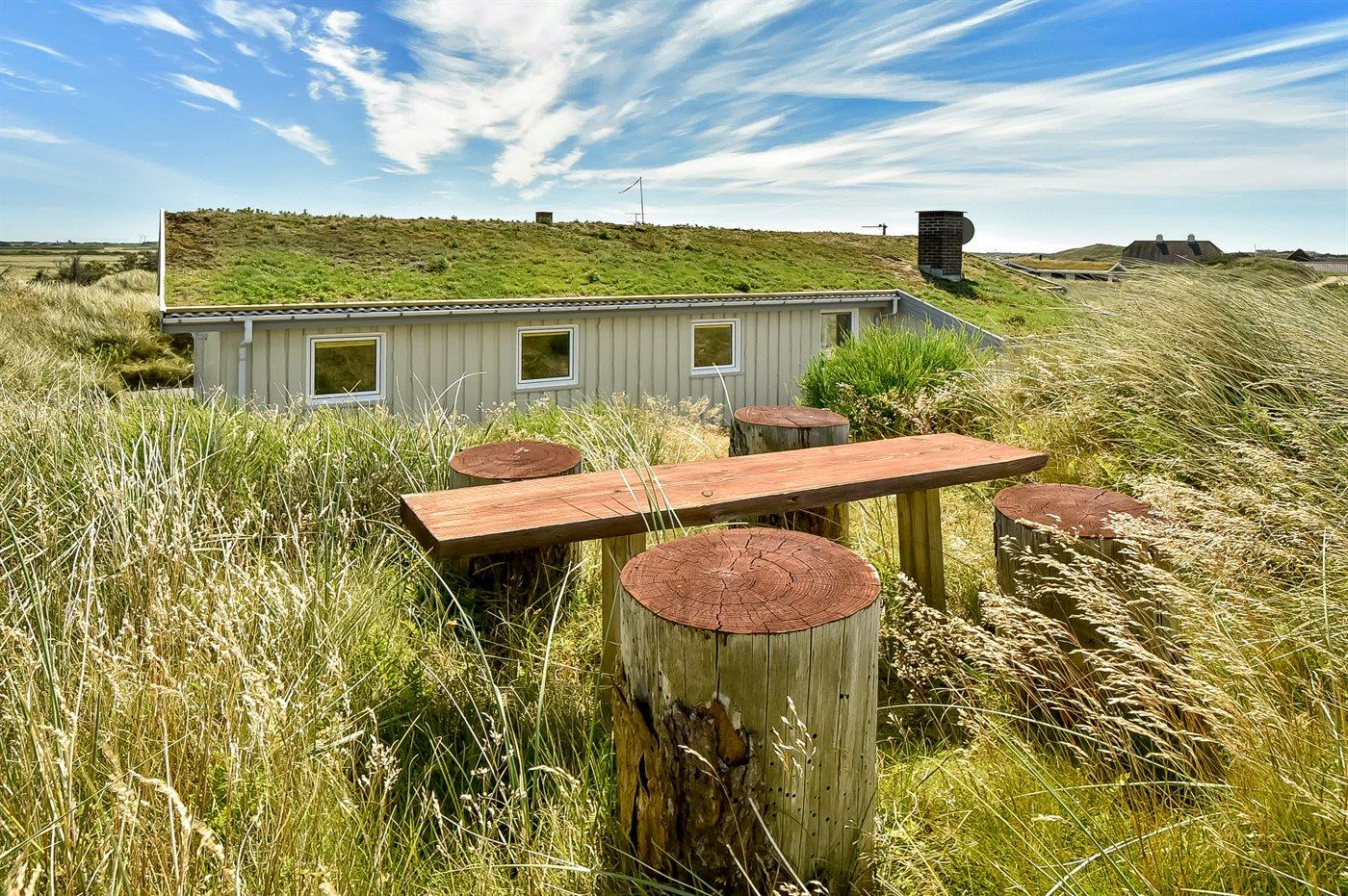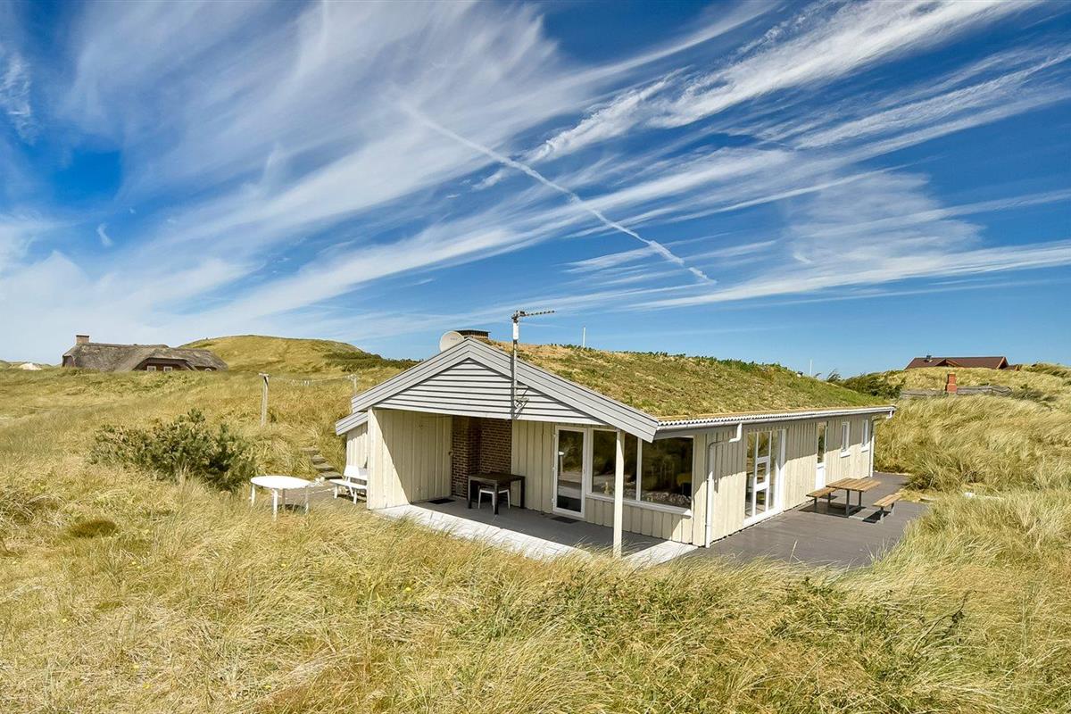 De vakantiewoning is gelegen op een 2300 m² groot Duingrond. Afstand tot de zee 250 m. Afstand tot de fjord 3000 m. Dichtstbijzijnde winkel 1500 m. Bij de vakantiewoning hoort 40 m² terras. Daarnaast is er een 10 m² groot overdekt terras. Gereedschapsruimte. Zandbak. Parkeerplaats bij het huis.