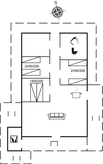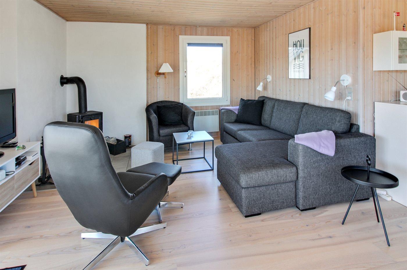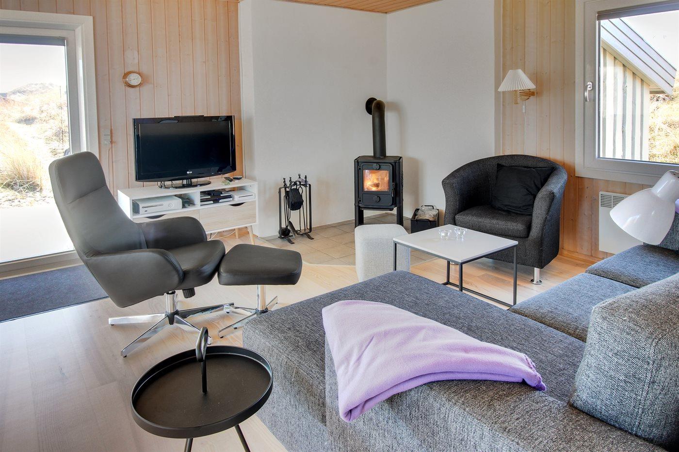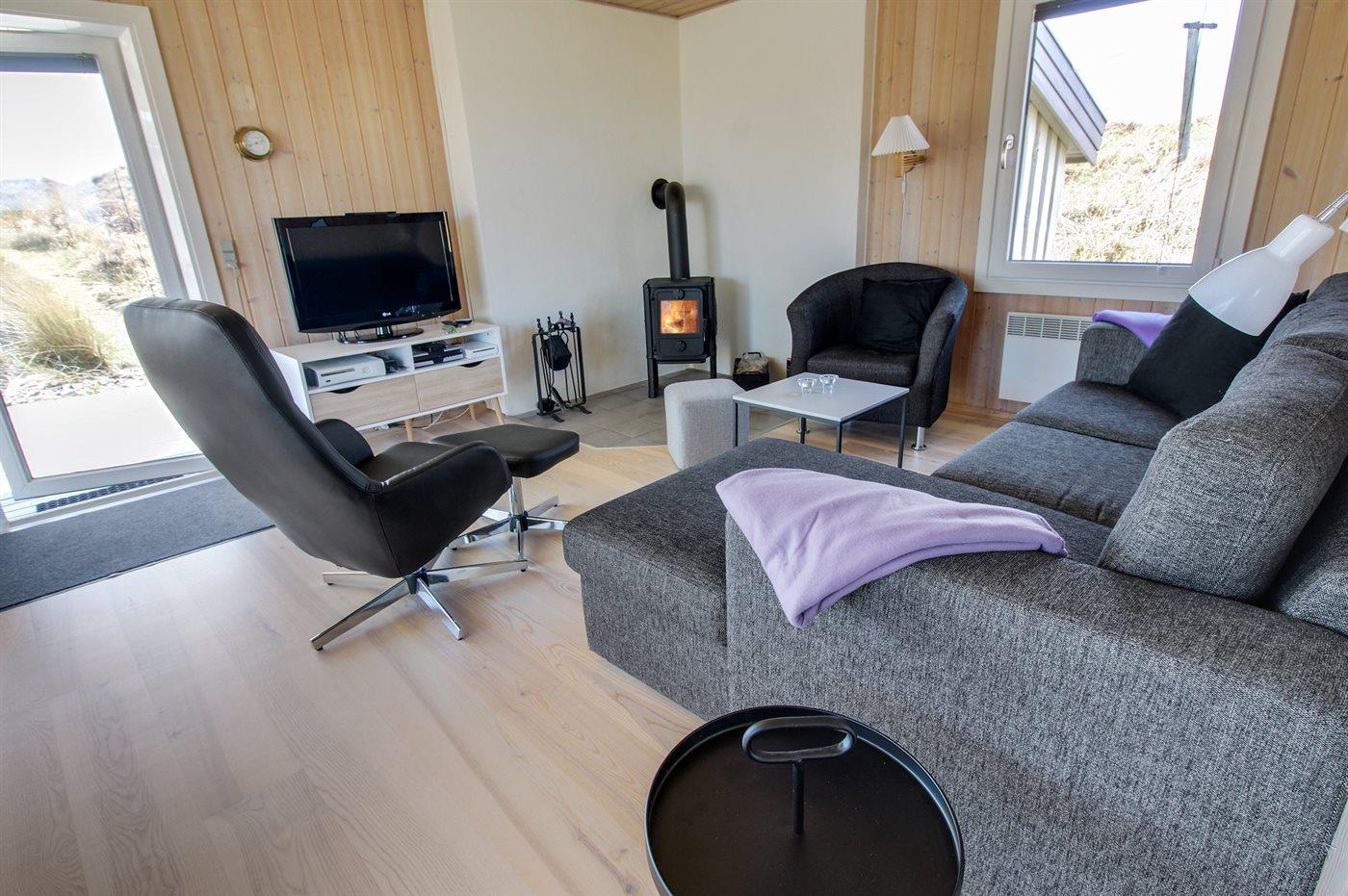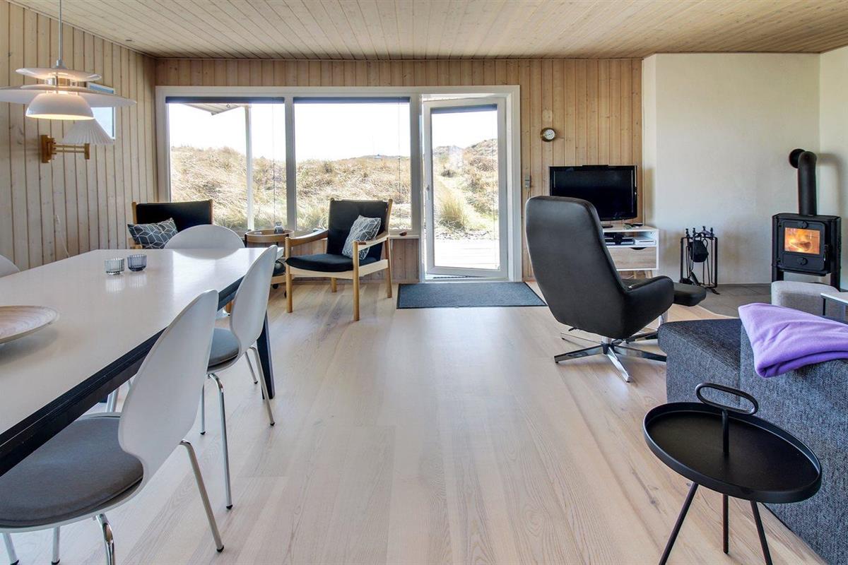 De vakantiewoning is gelegen op een 2300 m² groot Duingrond. Afstand tot de zee 250 m. Afstand tot de fjord 3000 m. Dichtstbijzijnde winkel 1500 m. Bij de vakantiewoning hoort 40 m² terras. Daarnaast is er een 10 m² groot overdekt terras. Gereedschapsruimte. Zandbak. Parkeerplaats bij het huis.