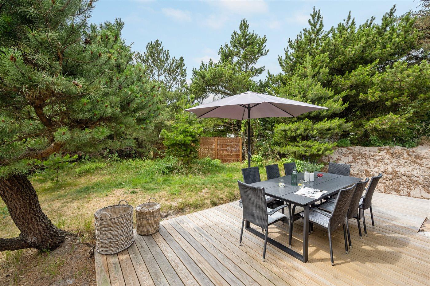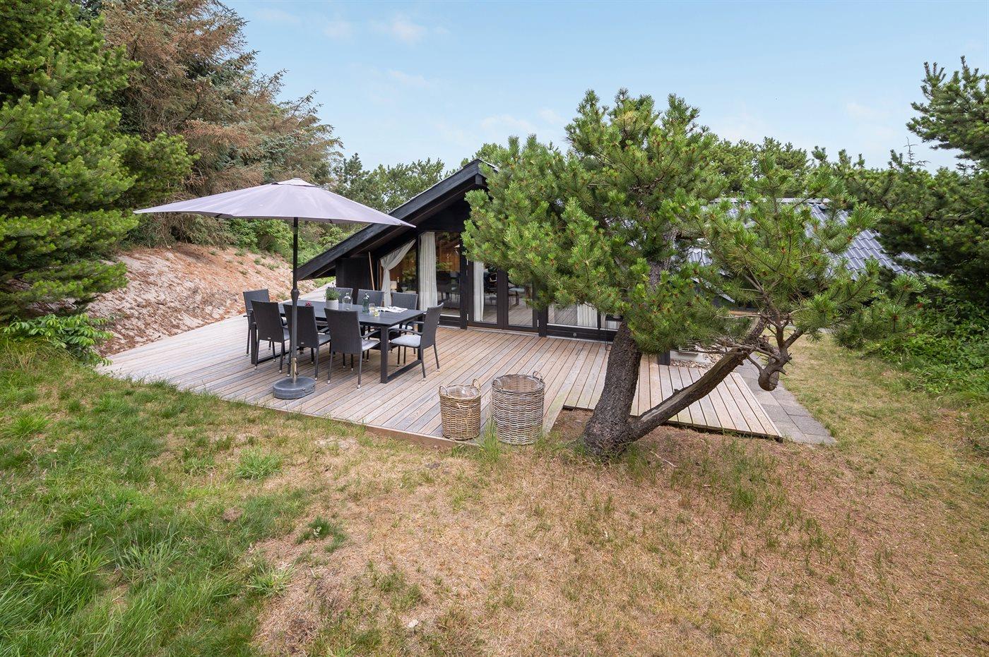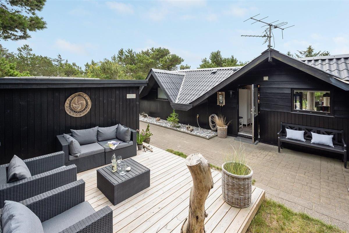 De vakantiewoning is gelegen op een 1400 m² groot natuural grond. Afstand tot de zee 400 m. Dichtstbijzijnde winkel 50 m. Bij de vakantiewoning hoort 40 m² terras. Gereedschapsruimte. Schommel. Carport ter beschikking. Parkeerplaats bij het huis.