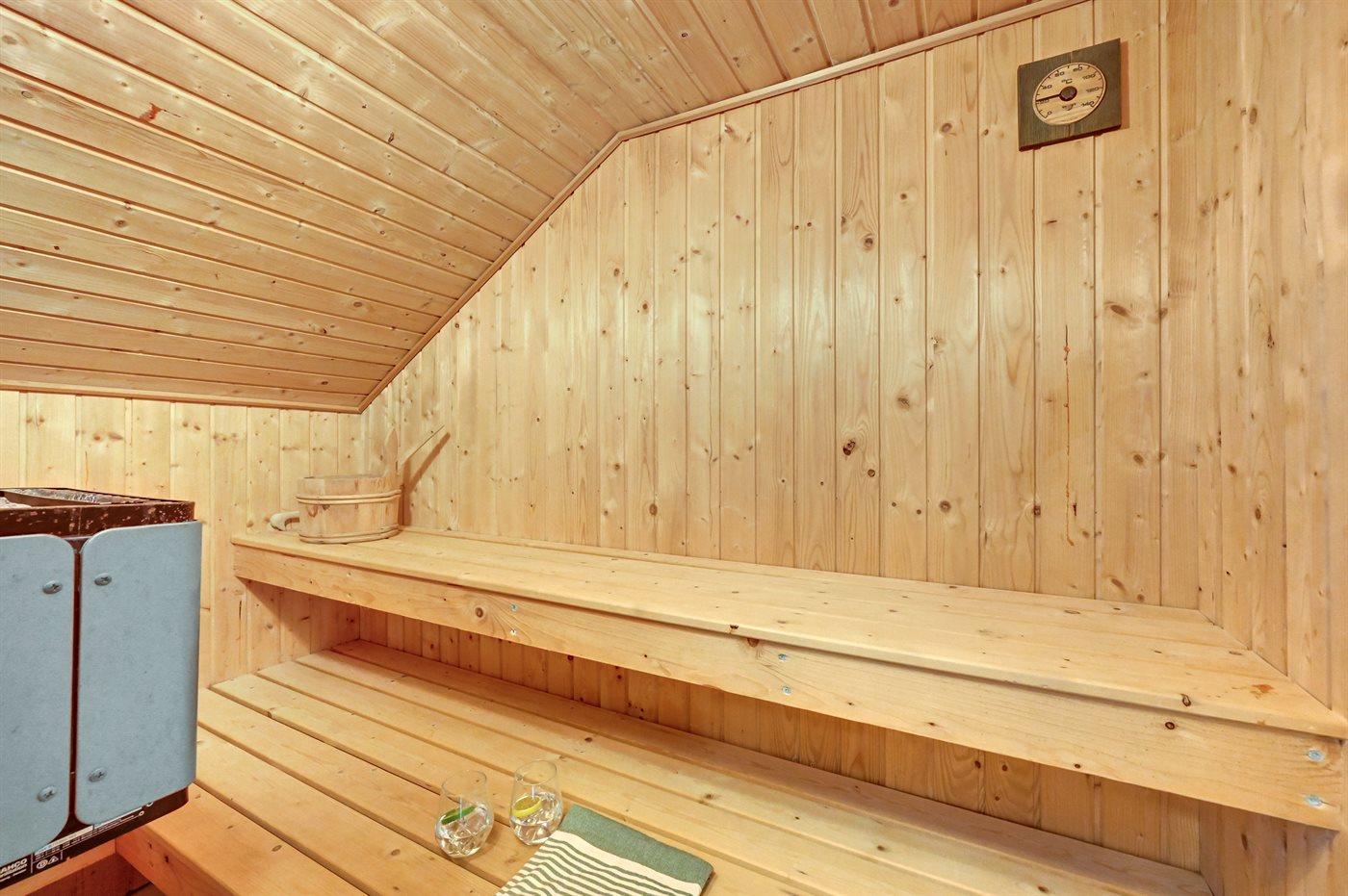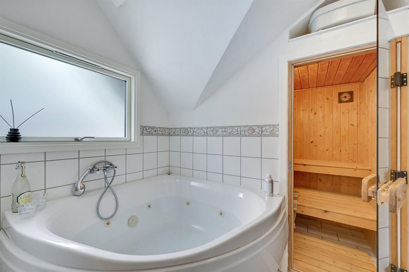 Er is 1 badkamer met douche en 2 toiletten, waarvan 1 gastentoilet. Er is vloerverwarming in 1 badkamer. De sauna biedt de gelegenheid tot ontspanning.