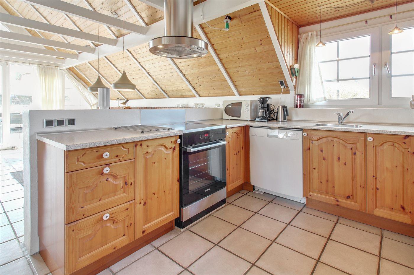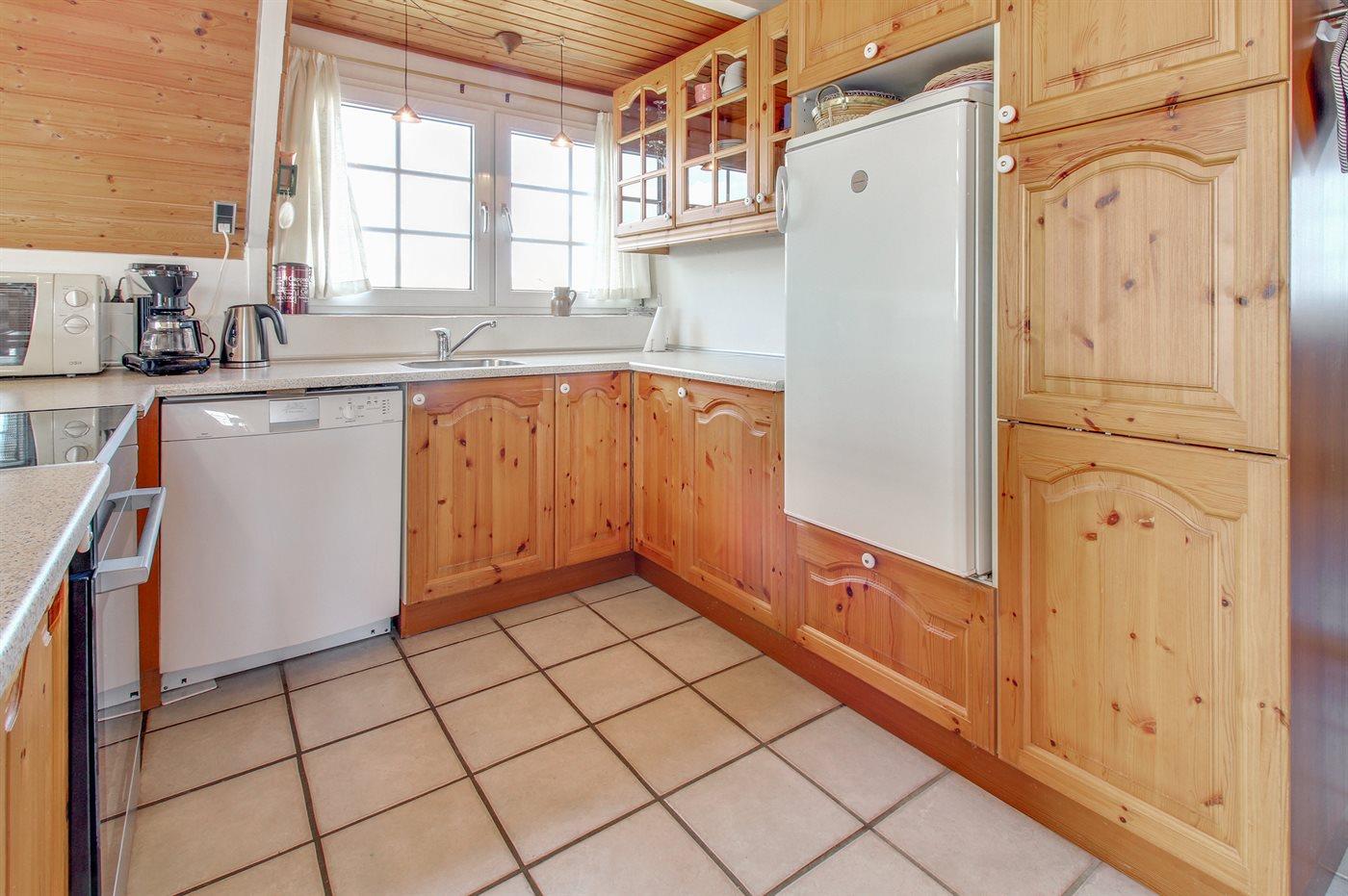 De keuken is uitgerust met koelkast Er is 4 inductiekookplaten, bakoven, magnetron en vaatwasser.