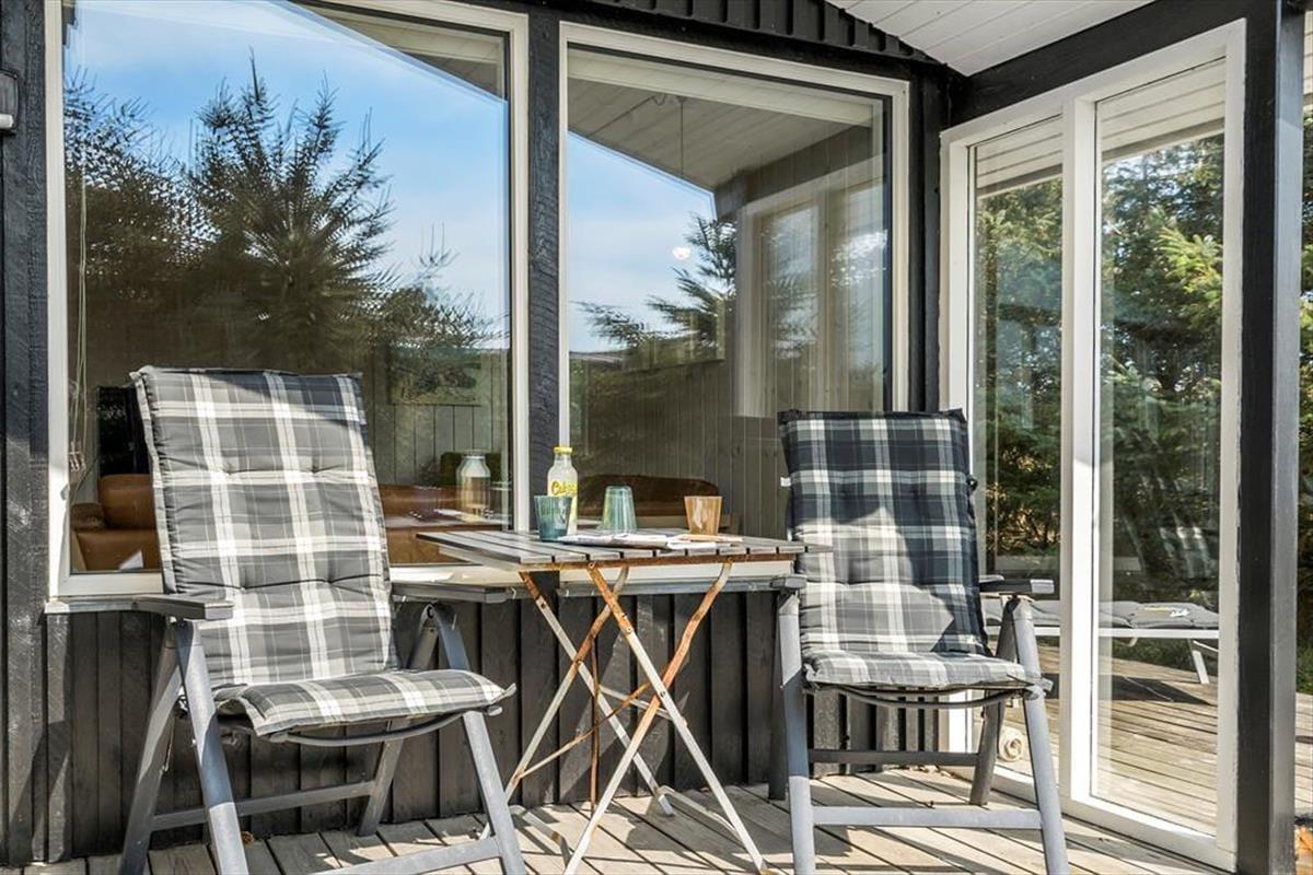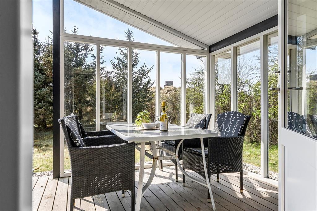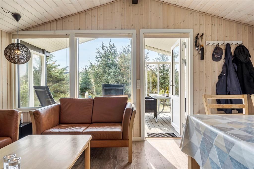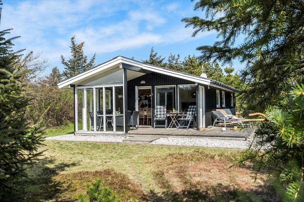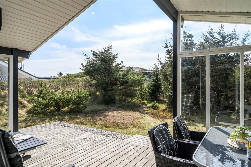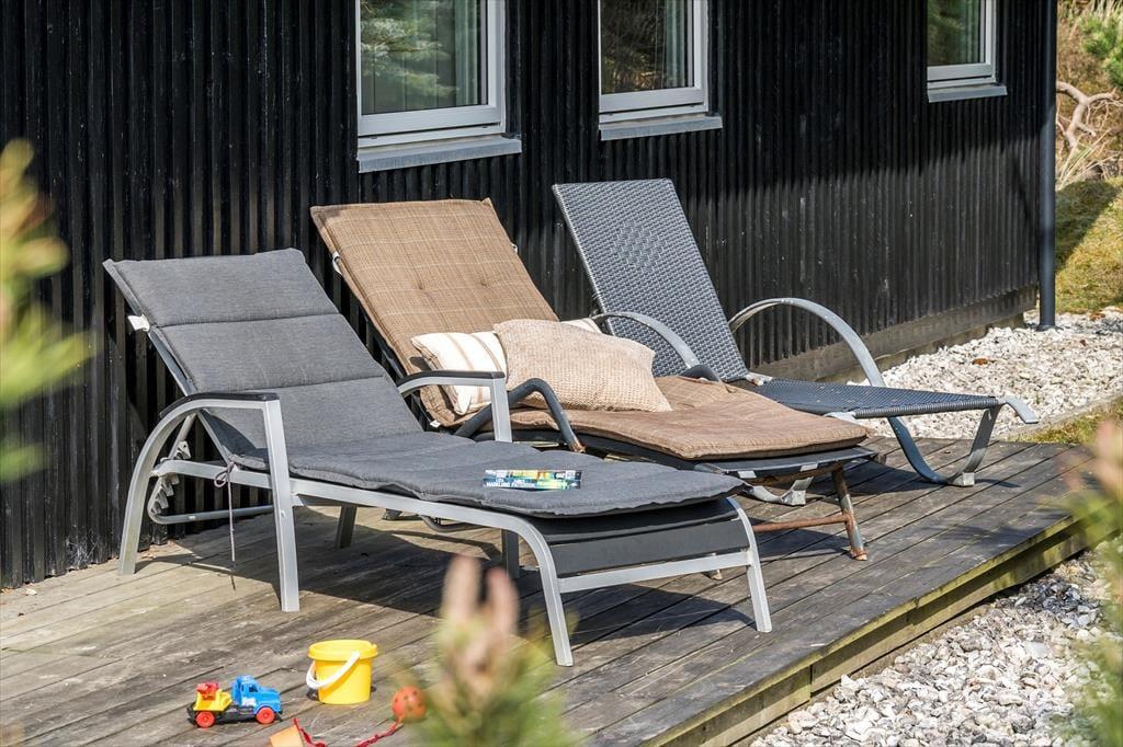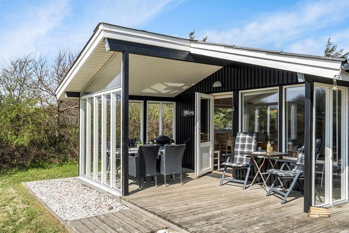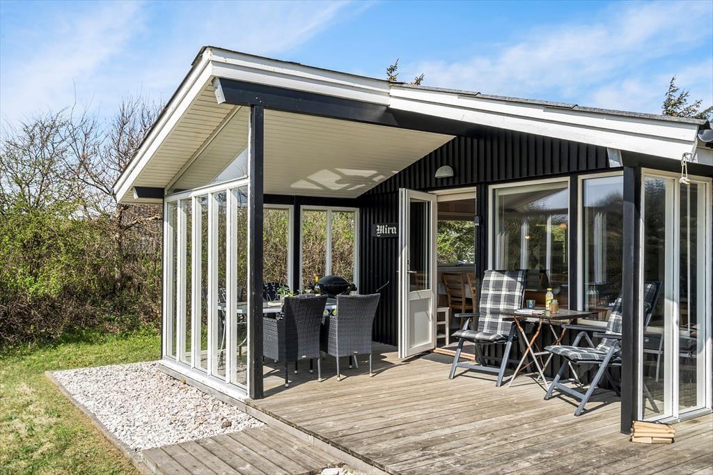 Rund um das Ferienhaus erstreckt sich die Terrasse als zusätzlicher Wohnraum unter freiem Himmel. Sowohl die überdachten als auch die offenen Bereiche bieten die Möglichkeit, bei jedem Wetter das Draußen sein zu genießen – ob du nun Schatten oder warme Sonnenstrahlen bevorzugen. Starte deinen Tag mit einem erquickenden Kaffee und dem Flüstern des Windes in den Baumwipfeln oder lass die Kinder auf dem Rasen spielen, während du mit einem guten Buch die ruhige und friedliche Umgebung auf dich wirken lassen kannst Am Abend ist es schön, den Grill anzünden, sich um das Essen zu versammeln und zu beobachten, wie der Himmel sich goldenen Farben färbt. Das Naturgrundstück ist von Bäumen umgeben, die einerseits vor dem Wind schützen und andererseits für echte Privatsphäre sorgen – eine wahre Oase mitten in der Natur.